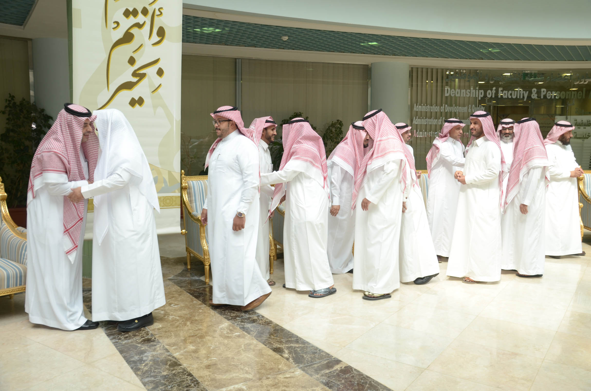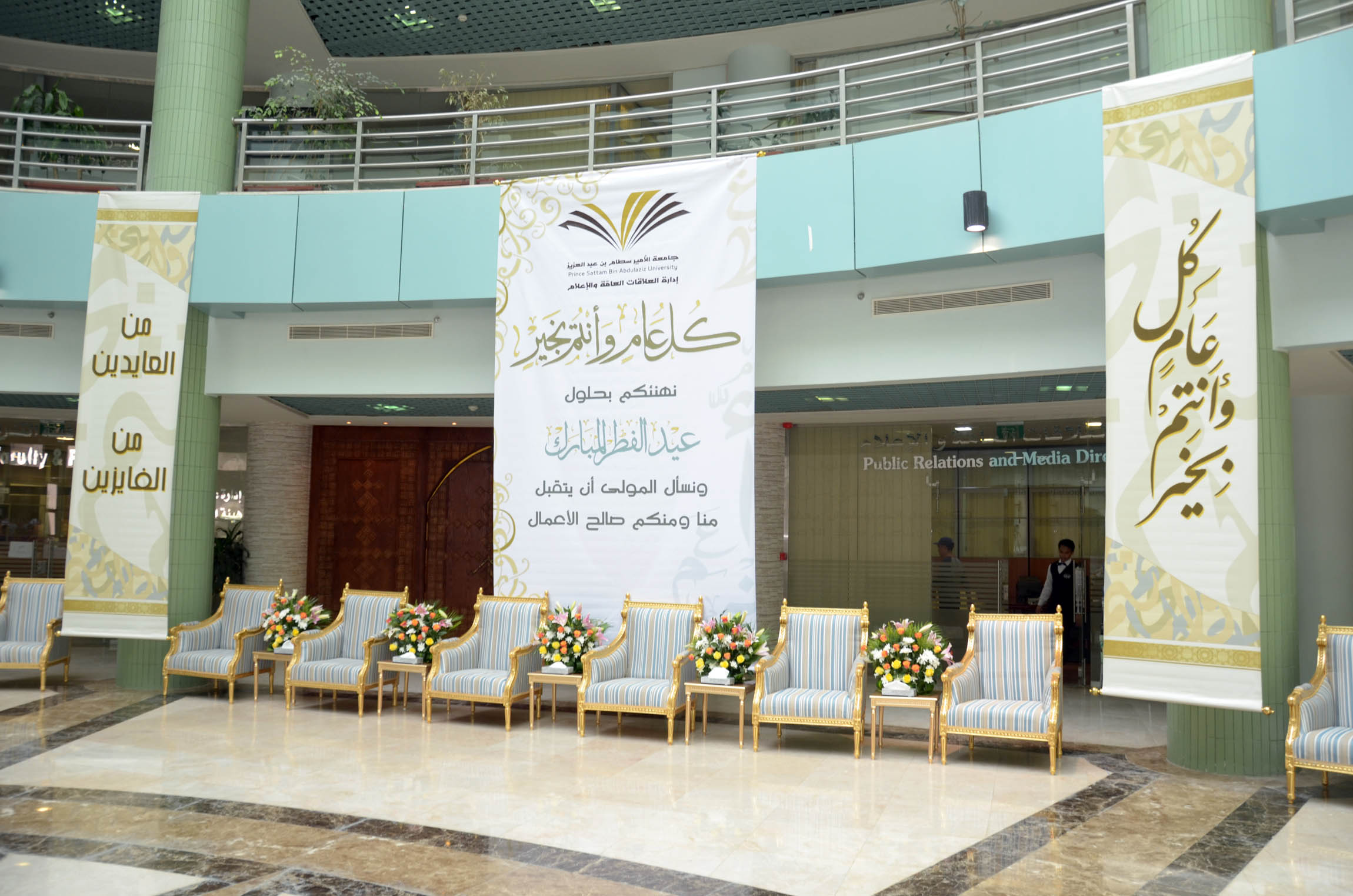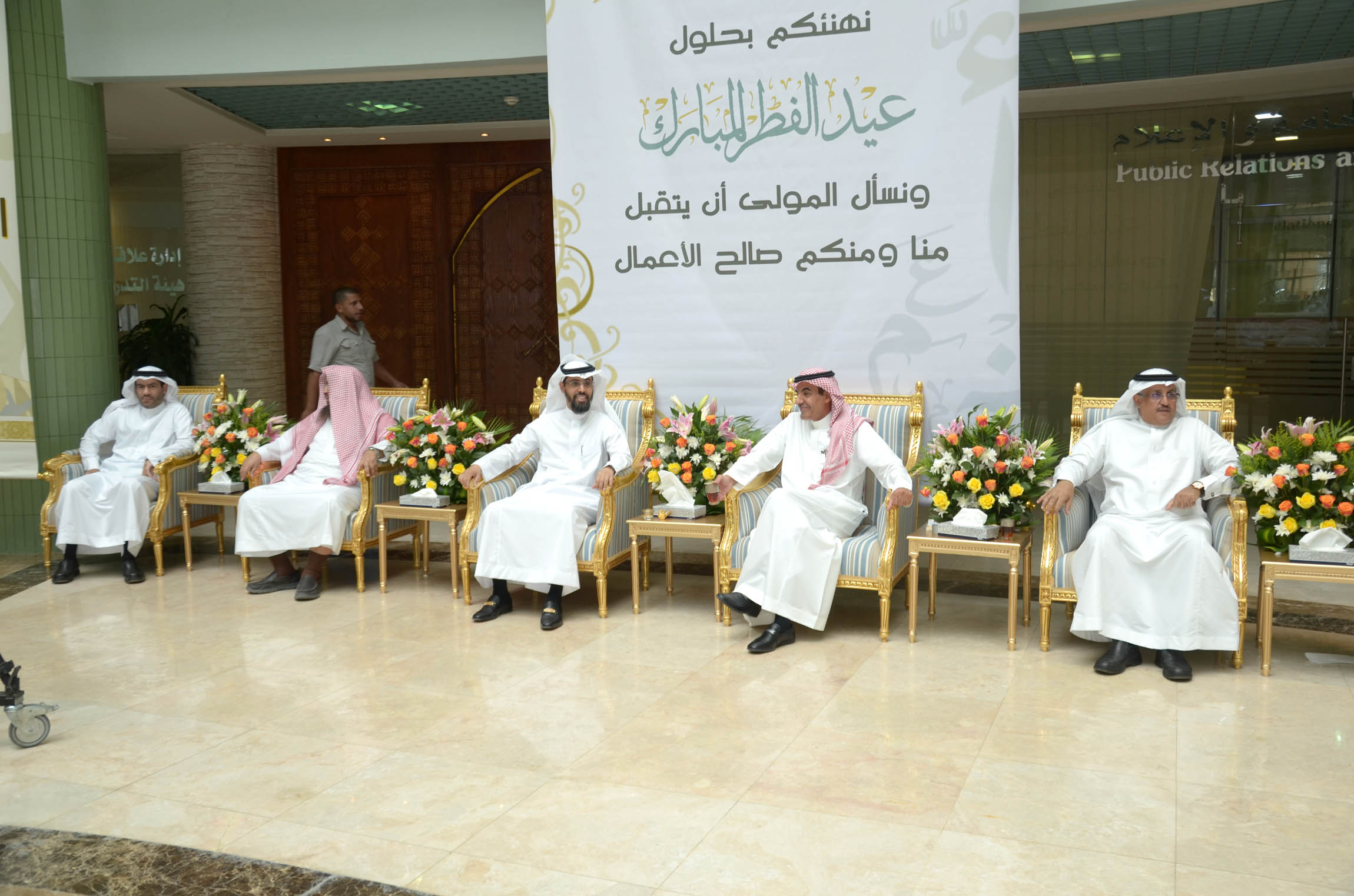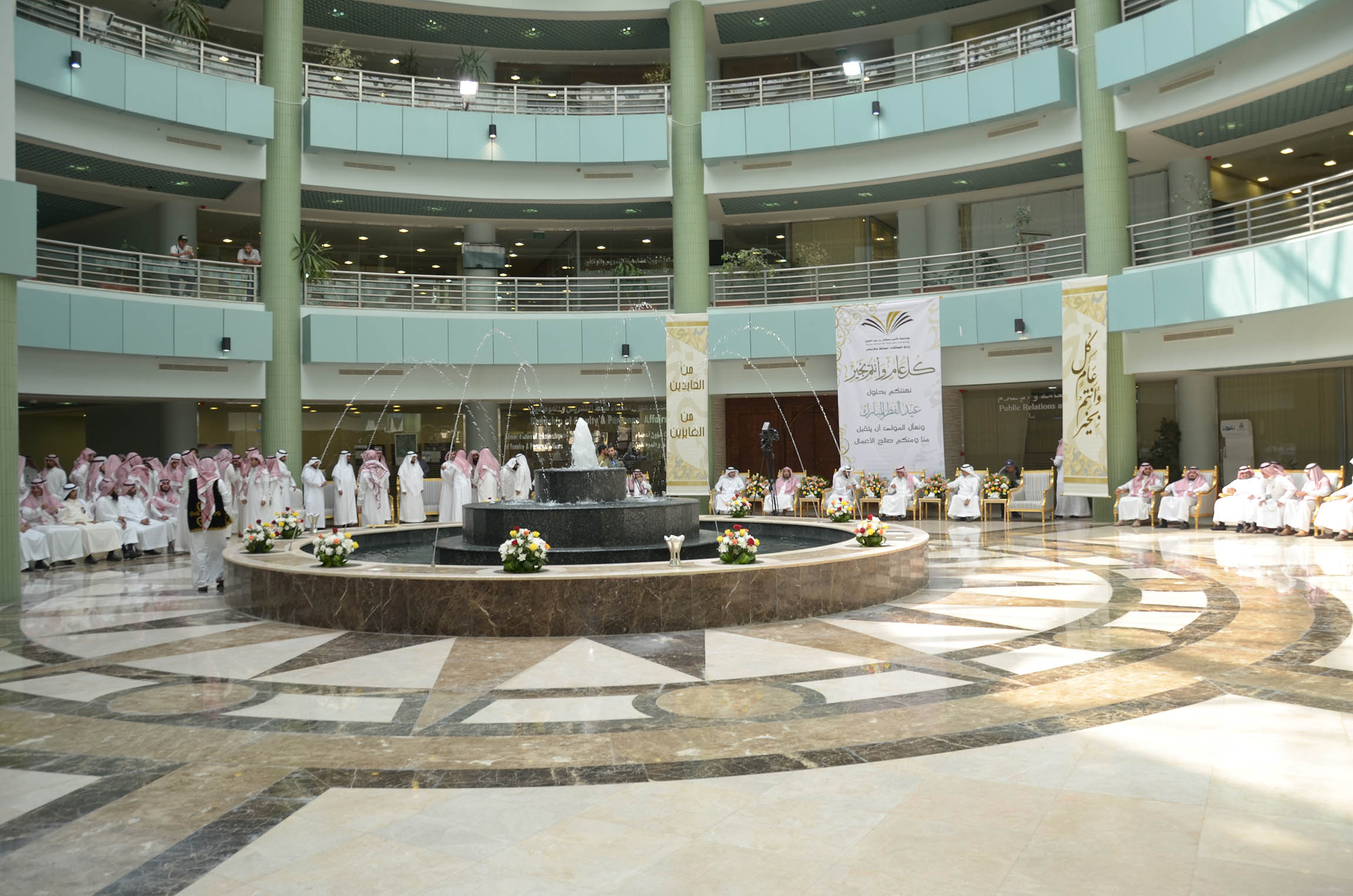 نظمت إدارة العلاقات العامة والإعلام بالجامعة احتفالاً بعيد الفطر المبارك بالمدينة الجامعية صباح اليوم الاثنين السادس من شهر شوال, وذلك بحضور معالي مدير الجامعة الدكتور عبد الرحمن العاصمي ووكلاء الجامعة وعمداء الكليات والعمادات المساندة وأعضاء هيئة التدريس وموظفي الجامعة وقدم الدكتور العاصمي التهاني لكافة منسوبي الجامعة بهذه المناسبة السعيدة وذكر أن الجامعة تحرص على إقامة هذا الحفل كل عام لتعزيز العلاقات الاجتماعية بين موظفيها وحتى يتسنى كذلك لكافة الموظفين تبادل التهاني بهذه المناسبة المباركة
