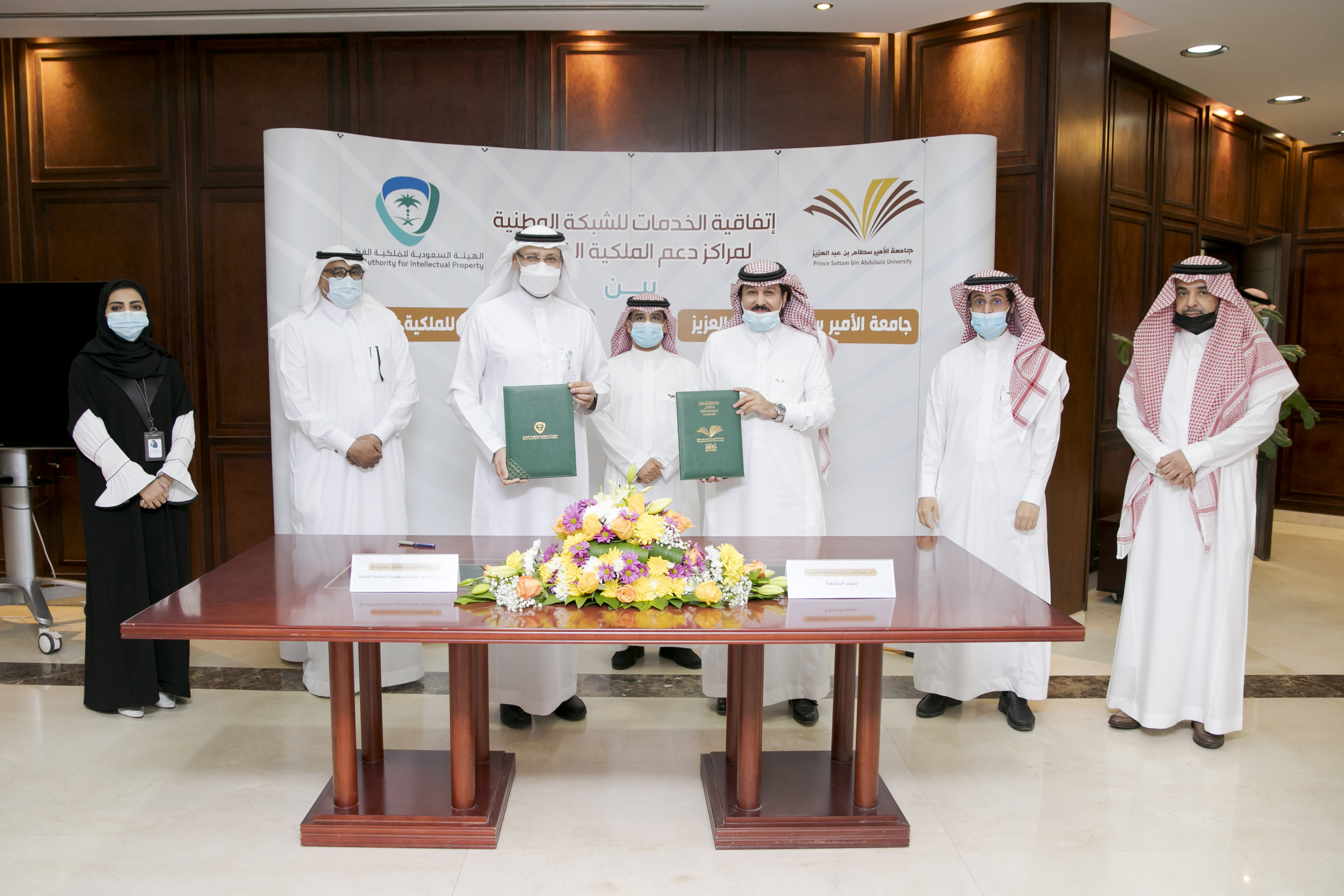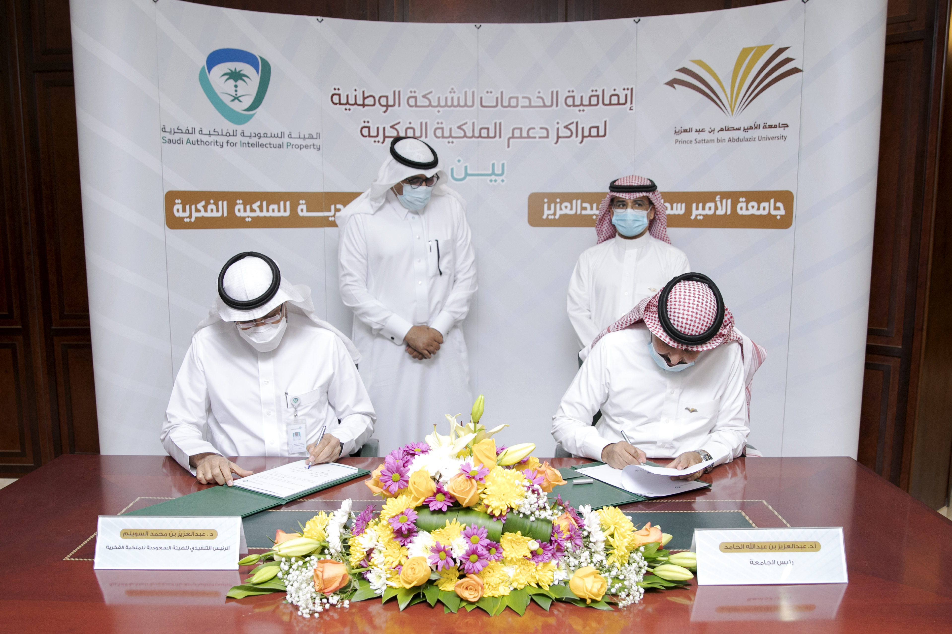 وقعت جامعة الأمير سطام بالخرج والهيئة السعودية للملكية الفكرية اليوم الخميس 1 / 4 / 2021 م في محافظة الخرج اتفاقية تعاون بشأن انضمام الجامعة للشبكة الوطنية للملكية الفكرية، وقع الاتفاقية ممثلًا عن الجامعة معالي الرئيس الأستاذ الدكتور عبدالعزيز بن عبدالله الحامد ومن جانب الهيئة د . عبدالعزيز بن محمد السويلم الرئيس التنفيذي للهيئة السعودية للملكية الفكرية