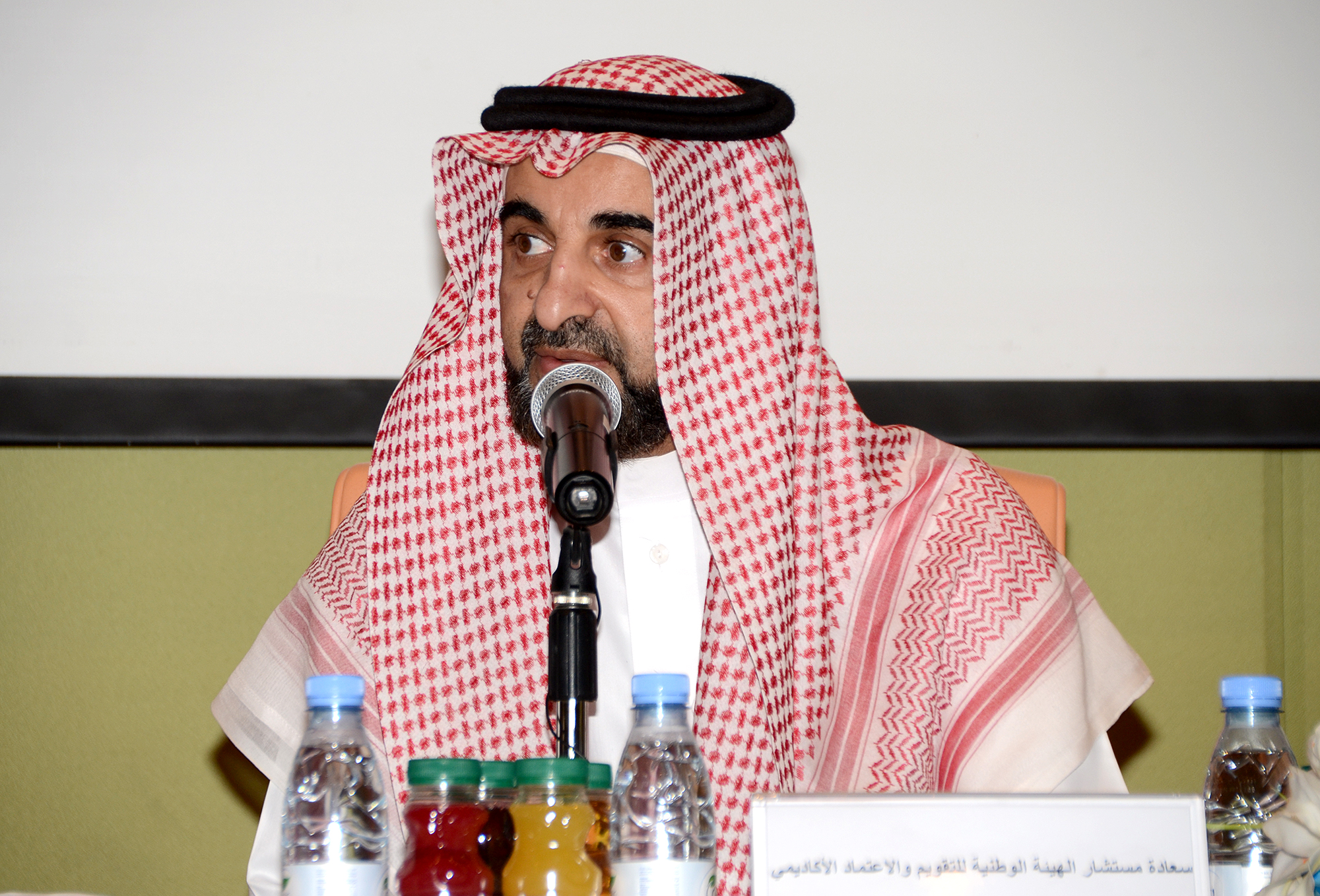قدّم الورشة سعادة الدكتور صالح بن علي الغامدي، والدكتورة حنان العليان مستشارا الهيئة الوطنية للتقويم والاعتماد الأكاديمي، اللّذيْن بيّنا أهداف الزيارة وضوابطها وإجراءاتها وأهميتها لعملية الاعتماد المؤسسي وانعكاساها على تطوير العملية التعليمية بالجامعة مُشيرَيْن إلى أن هذه الخطوة تأتي كخطوة أخيرة مهمة من خطوات برنامج المشروع التطويري للتحقق من مدى جاهزية الجامعة للتقدم بطلب للتأهيل للاعتماد المؤسسي.
