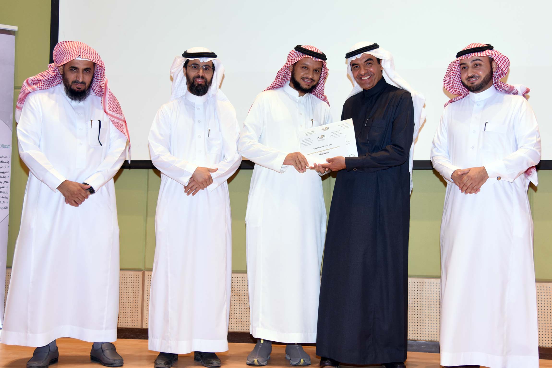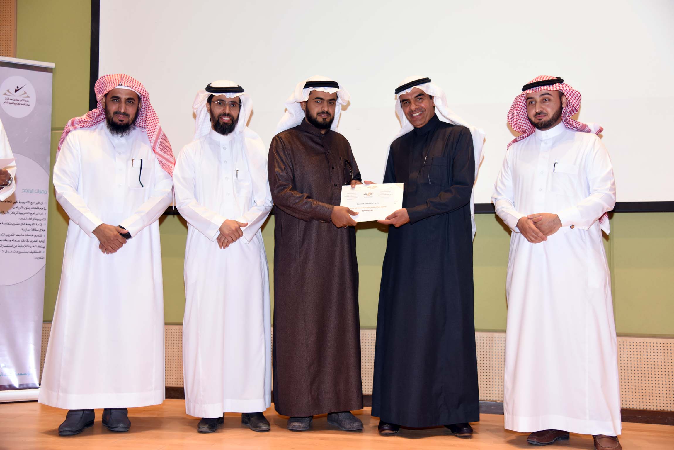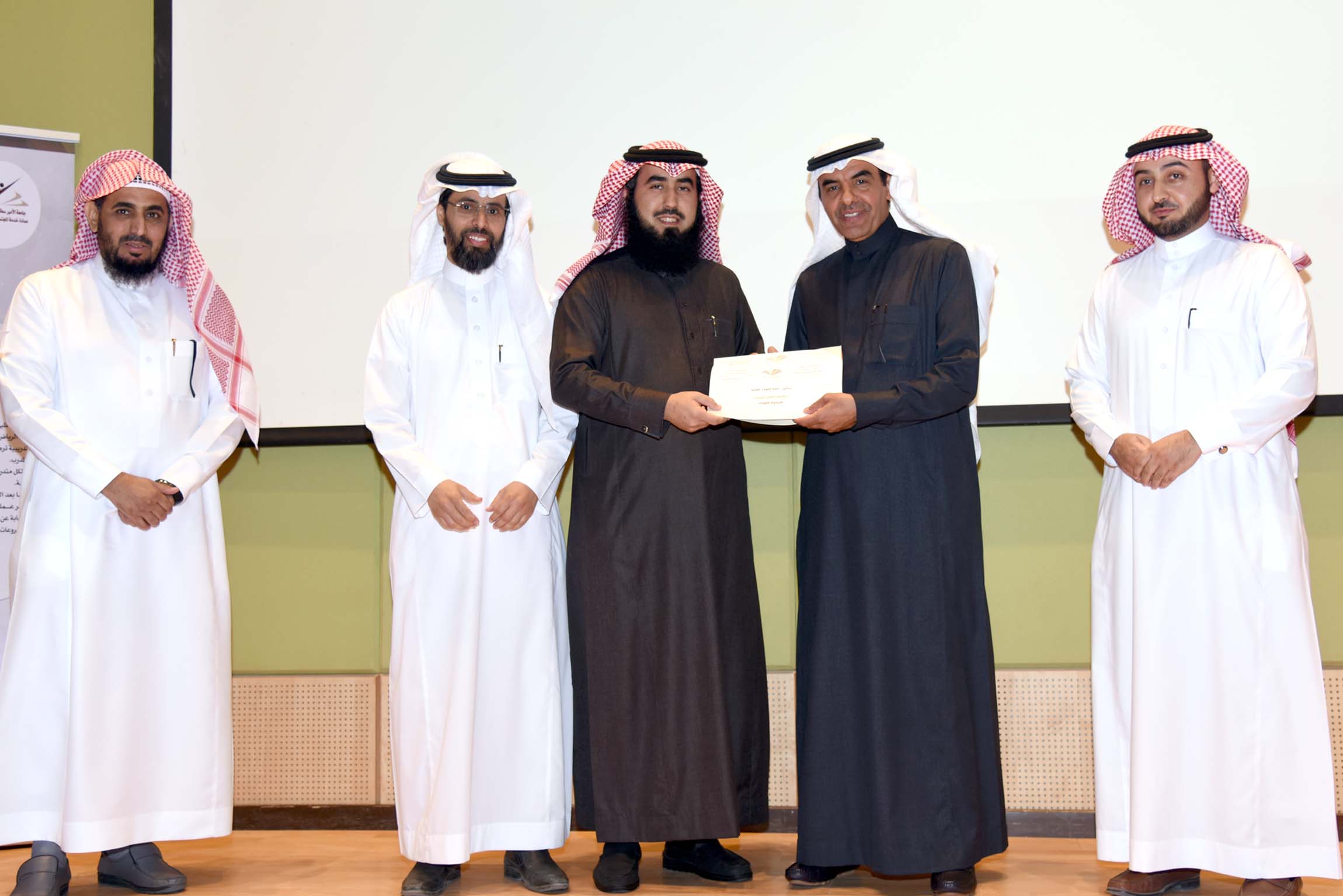 وفي ختام الحفل سلم معالي مدير الجامعة جوائز لأصحاب المشاريع الفائزة، ودرعاً تقديرياً لمؤسسة عبد اللطيف العيسى الخيرية.