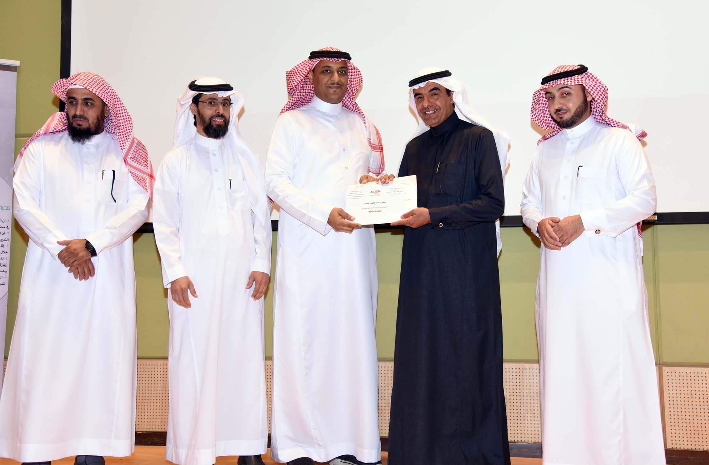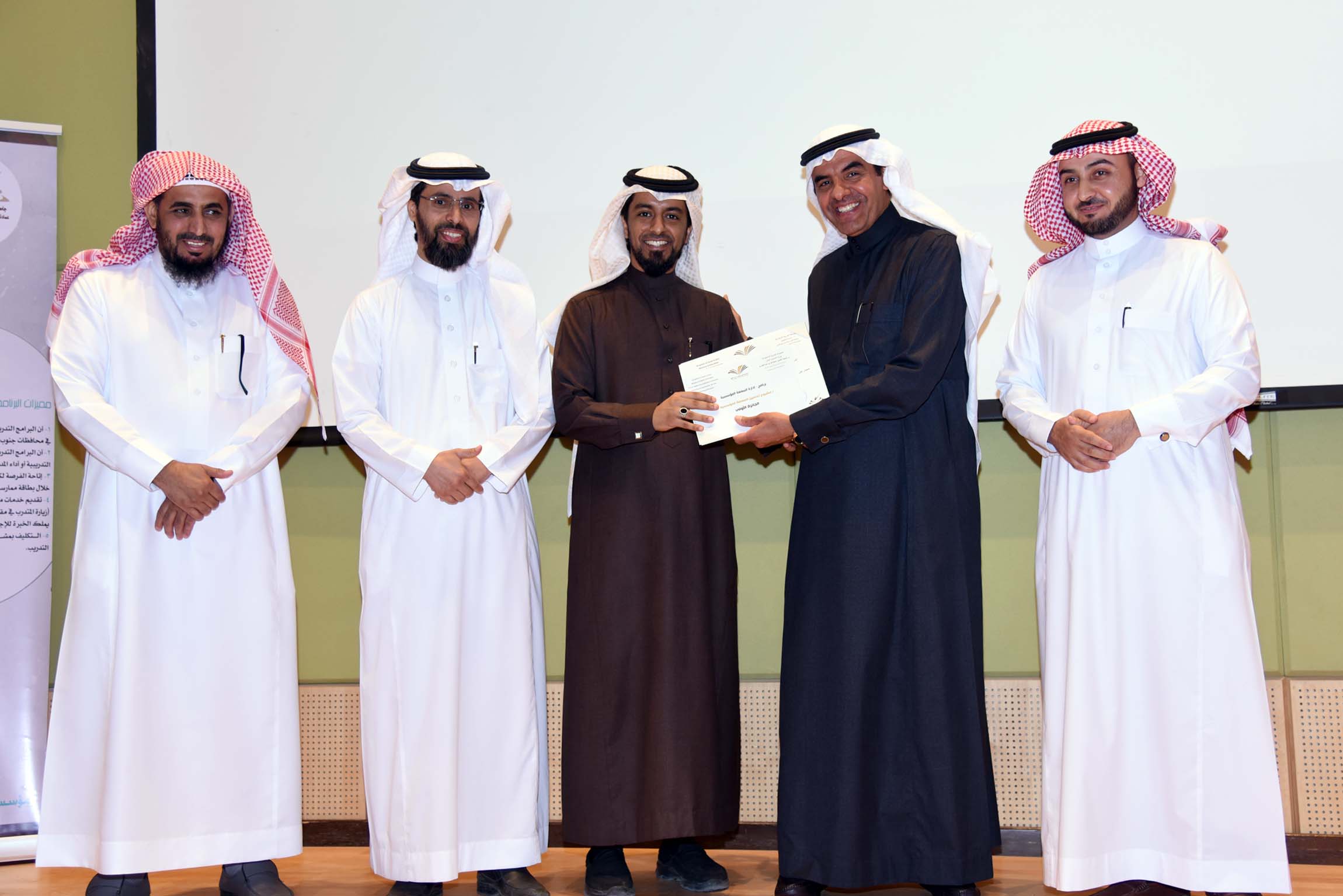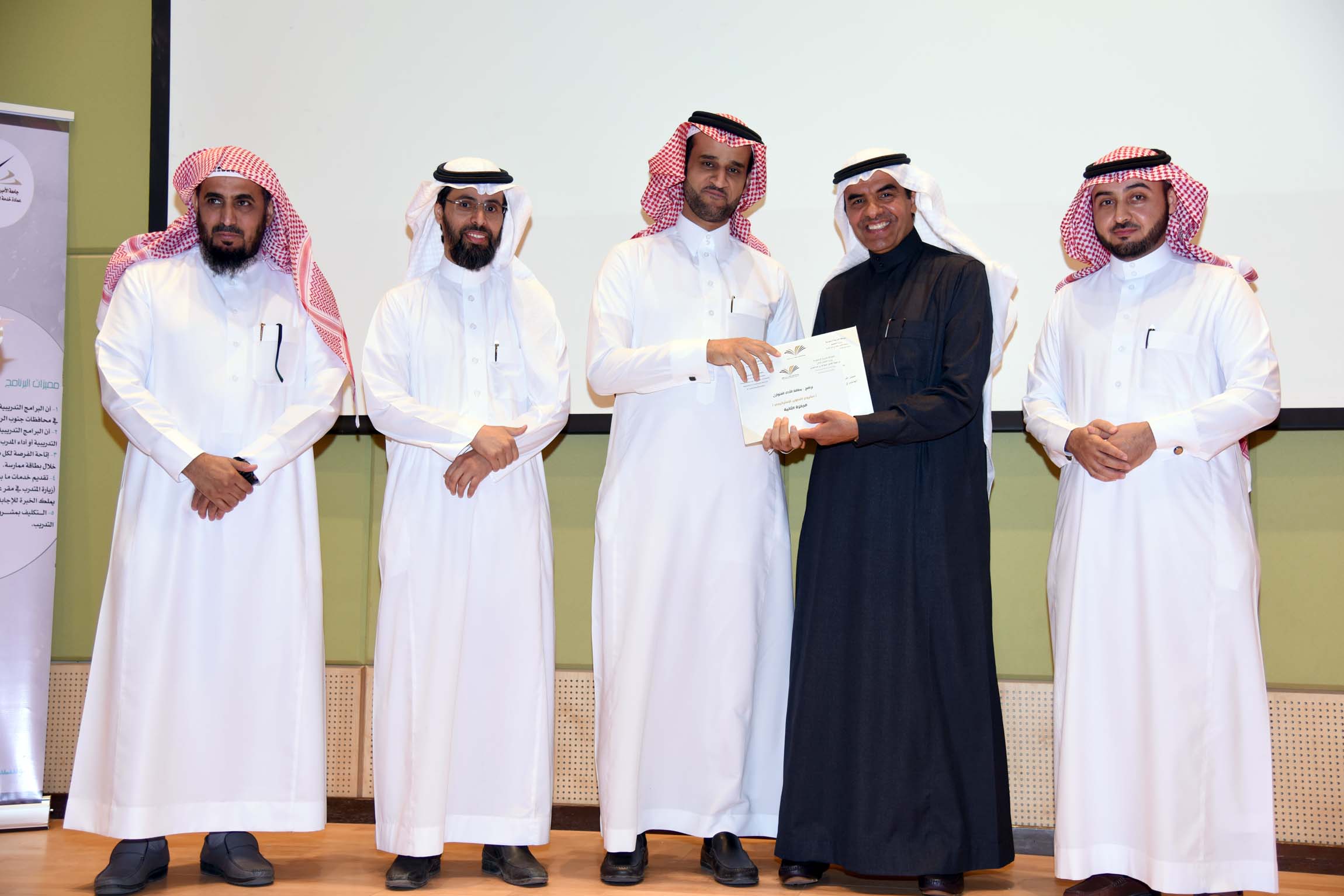 وفي ختام الحفل سلم معالي مدير الجامعة جوائز لأصحاب المشاريع الفائزة، ودرعاً تقديرياً لمؤسسة عبد اللطيف العيسى الخيرية.