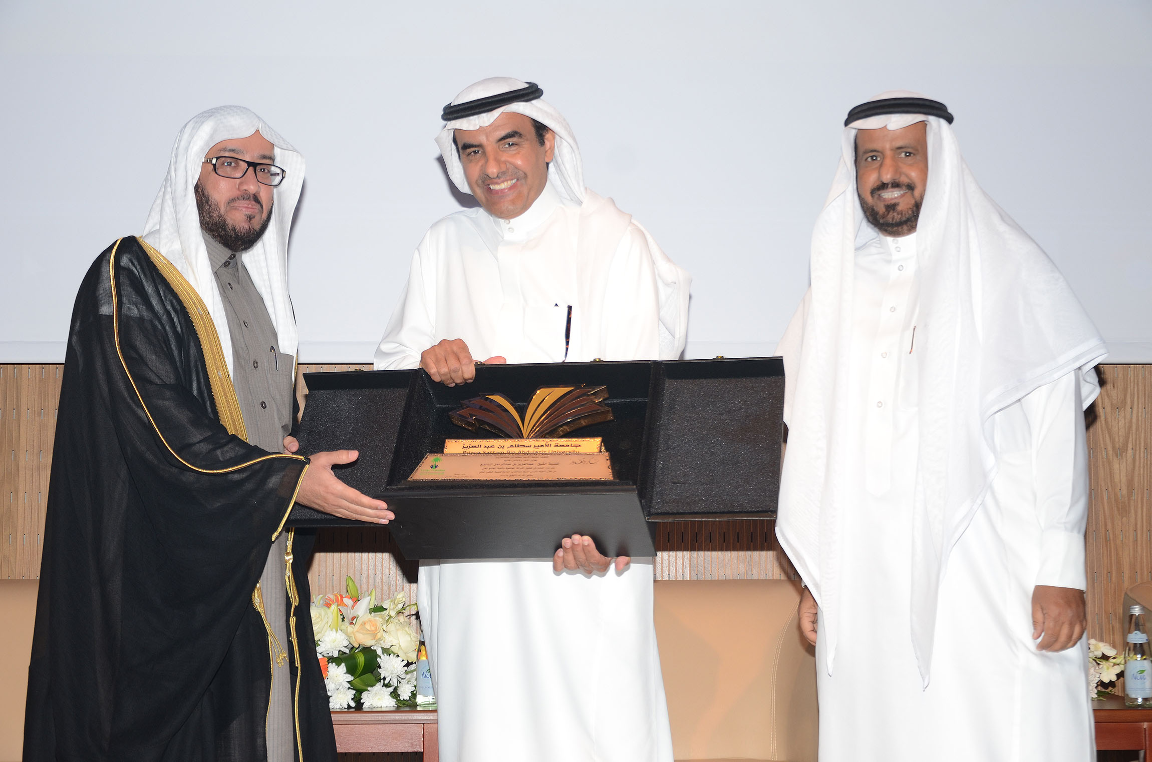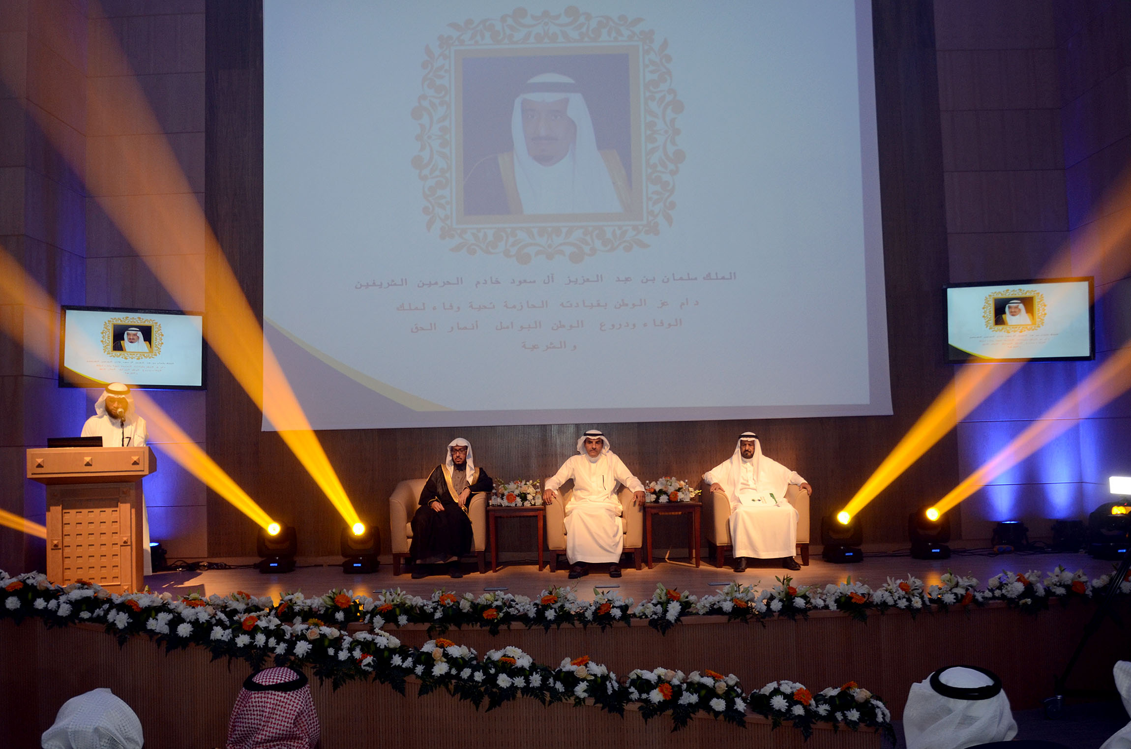 وفي كلمة لفضيلة الشيخ عبدالعزيز الداعج ممول الكرسي، أشار إلى أن المجتمع السعودي يشهد في الفترة الحالية قفزات تنموية متميزة استطاع من خلالها تحقيق الكثير من الإنجازات، وذلك بفضل الله أولاً، ثم بفضل الجهود المبذولة من قبل حكومة خادم الحرمين الشريفين وولي عهده الأمين الداعمة لكل عمل يرفع من شأن هذا الوطن المعطاء، مشيرًا إلى أن أهم الأدوار التي تقوم بها الجامعة هو الإسهام في تنمية المجتمع المحلي بالشراكة مع مؤسسات المجتمع المحلي المختلفة، مضيفًا أن الكرسي يهدف إلى دراسة واقع المرأة وإمكانية تفعيل دورها في الحياة الاقتصادية بما لا يتعارض مع الشريعة الغراء وتقاليد مجتمعنا المحافظ من خلال طرح موضوع عمل المرأة عن بعد.
