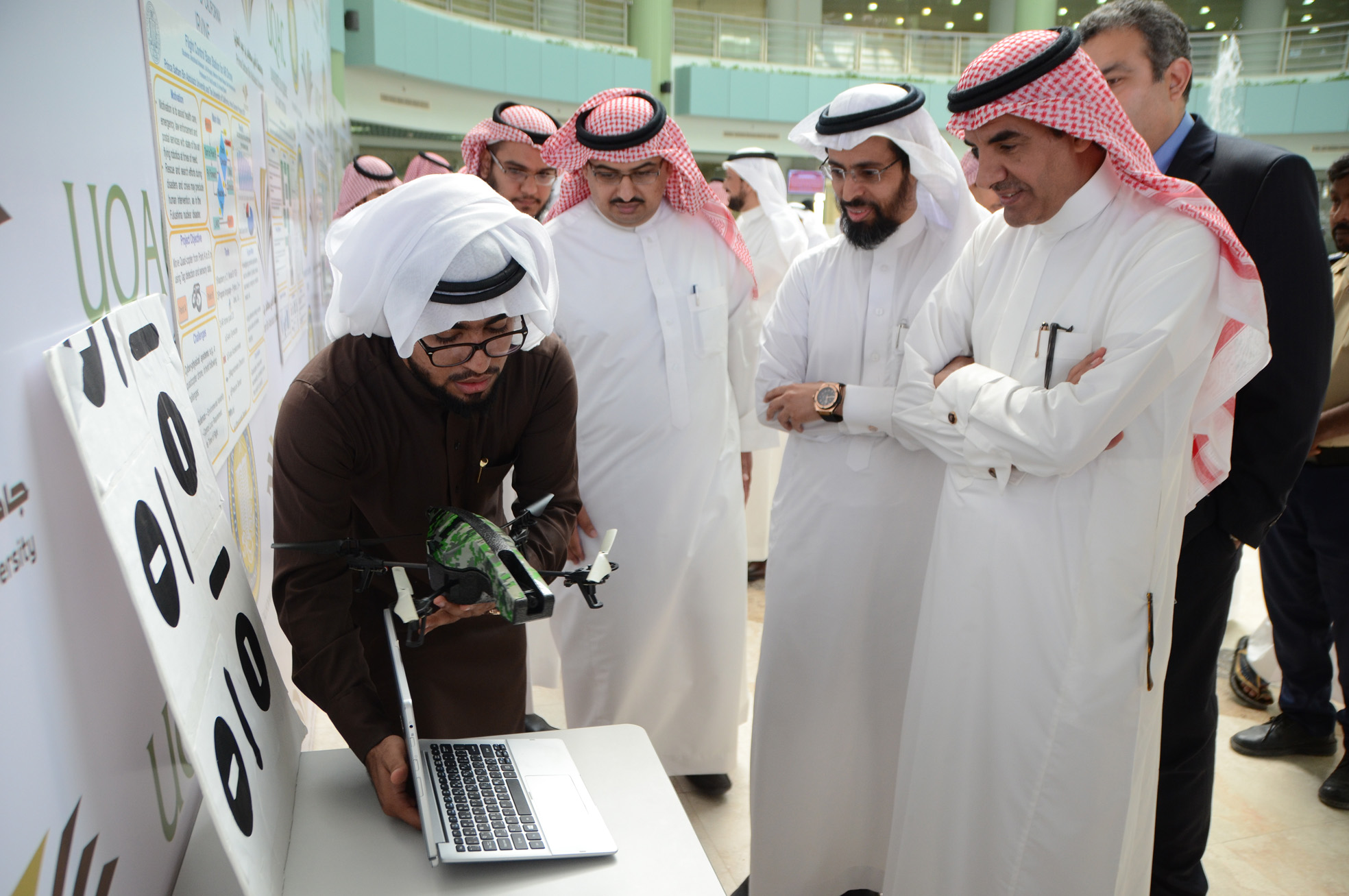 تلا الحفل الخطابي افتتاح المعرض المصاحب لأعمال الطلاب خلال الصيف الماضي واستمع معاليه إلى شرح مفصل عن المشاريع الطلابية التي تم تنفيذها في جامعة كاليفورنيا إرفاين وجامعة كيبك الكندية وأشرف عليها نخبة من أساتذة الجامعتين حيث أمضى ثلاثون طالبًا من كليتي الهندسة وهندسة وعلوم الحاسب عشرة أسابيع اشتملت على دراسة مكثفة للغة الإنجليزية وعلى برامج تدريبية وبحثيه.