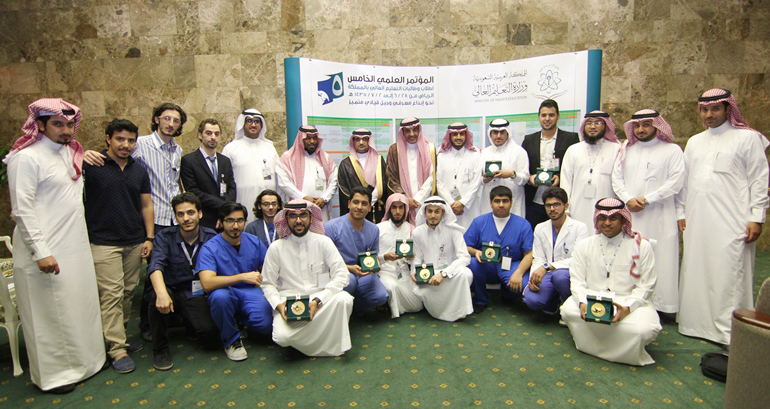 عمر آل عبدالله - عمادة شؤون الطلاب : حصد أبناء جامعة سلمان بن عبدالعزيز المشاركين في المؤتمر العلمي الخامس لطلاب وطالبات التعليم العالي عشر جوائز، وذلك في ختام فعاليات المؤتمر مساء يوم الأربعاء 1435/6/29هـ في مدينة الرياض ، بحضور وزير التعليم العالي الدكتور خالد العنقري.