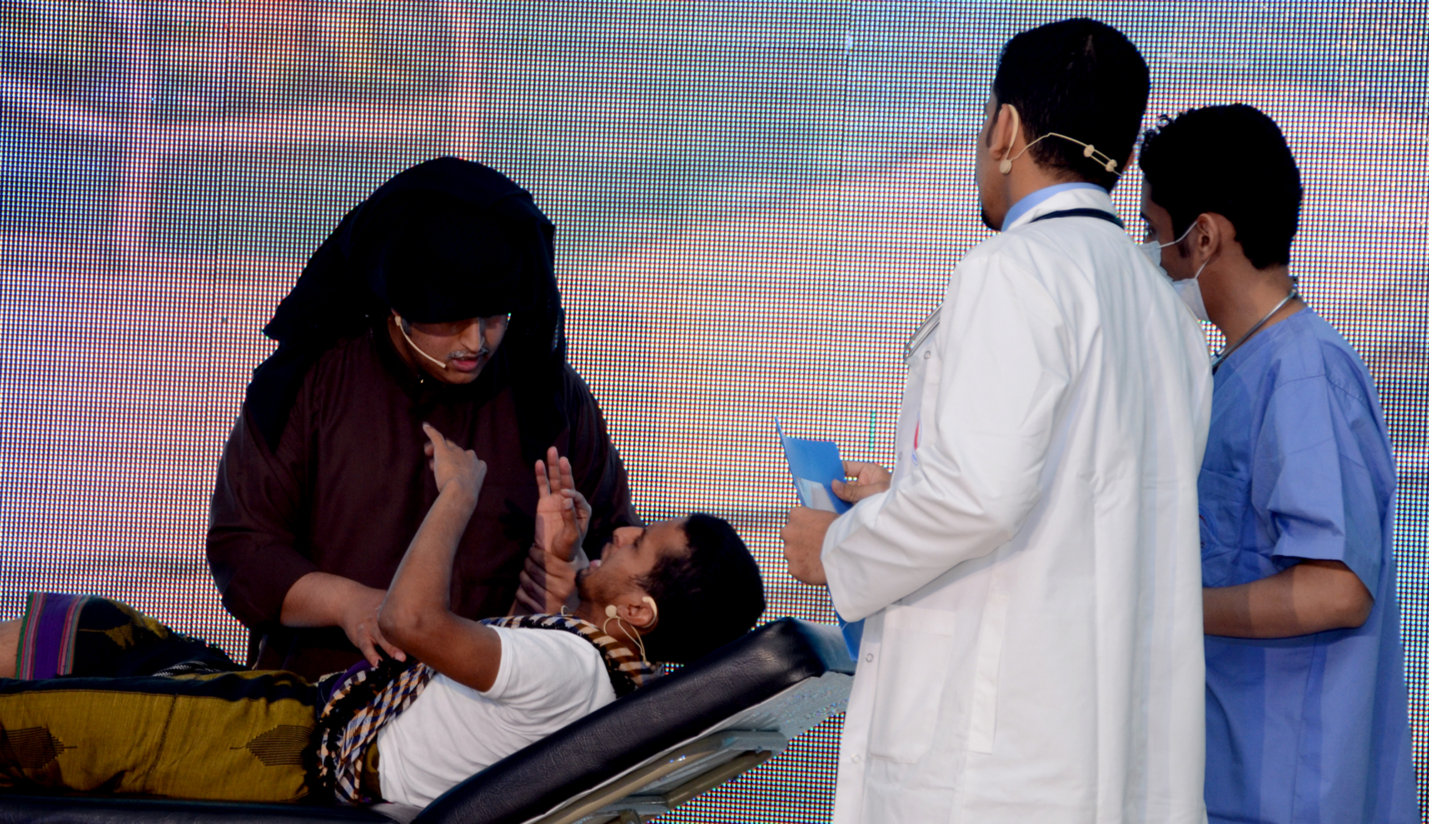 ثم قدم نخبة من منشدي الجامعة أوبريت إنشادي بعنوان (موطن الأمن) ، تلاه مسرحية بعنوان (أنفلونزا المكرونة) والتي تحكي وضع الطالب الجامعي والصعاب التي تواجهه، حيث أبرزها الطلاب بطابع كوميدي مميز .