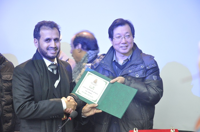 وفي اليوم التالي توجه وفد الجامعة مع وفود الجامعات الأخرى المشاركة لزيارة جامعة (جنخوا) وكان في استقبال الوفود رئيس الجامعة ومساعده حيث رحبوا بالزوار كما قدموا نبذة تعريفية عن الجامعة وما تقدم وما تحتويه من أقسام وعدد الطلاب والبرامج المنفذة، ثم قاموا جولة تعريفية في مرافق الجامعة.