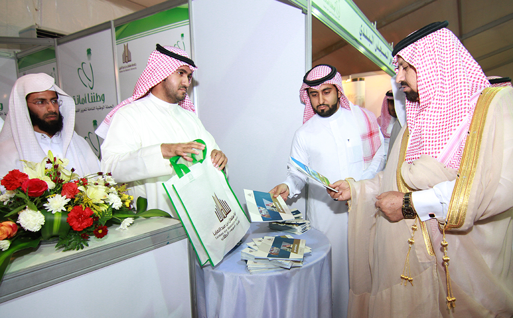 وتجول آل مجدوع على اركان المعرض و استمع لشرح عن محتوى ركن الجامعة من الاستاذ راشد العسكر اشتمل على المطبوعات والخدمات المقدمة وما انجزته الجامعة خلال الفترة المنصرمة والأعمال التي قامت بها تفعيلاً للحملة الوطنية الشاملة.