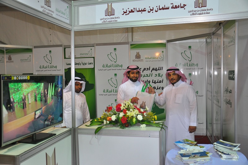 عمر آل عبدالله - عمادة شؤون الطلاب : شاركت جامعة سلمان بن عبدالعزيز في معرض (وطننا امانه) المصاحب لفعاليات مهرجان صيف الخرج 35 والذي تنظمه البلدية، وافتتحه محافظ محافظة الخرج الاستاذ شبيلي بن مجدوع ال مجدوع مساء يوم الخميس الماضي.