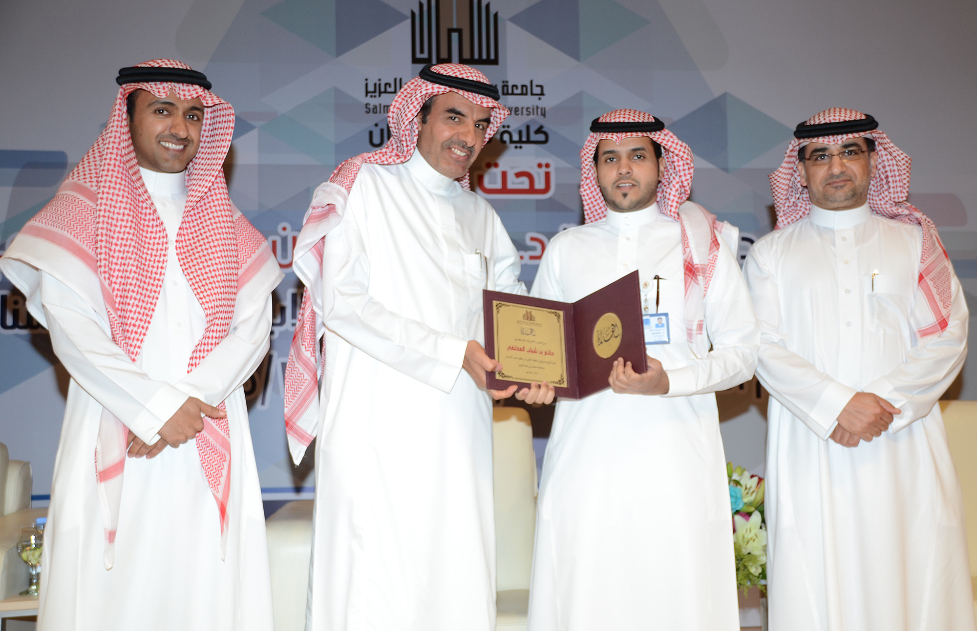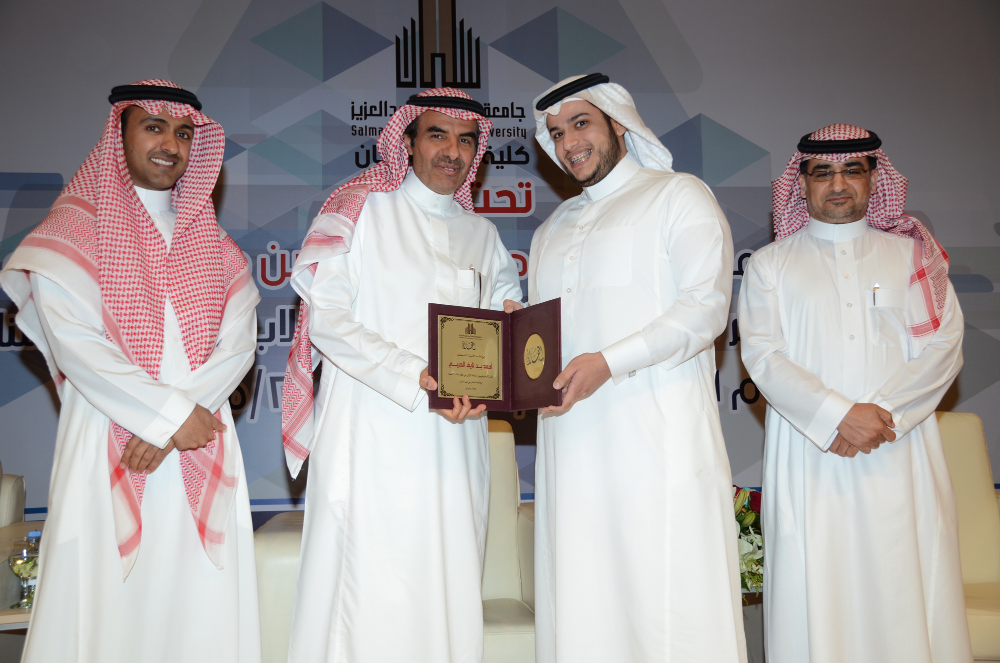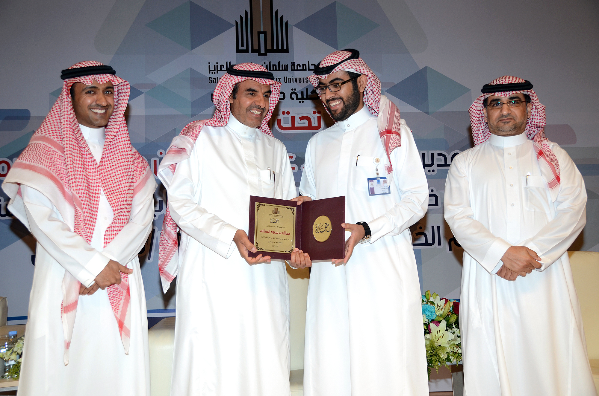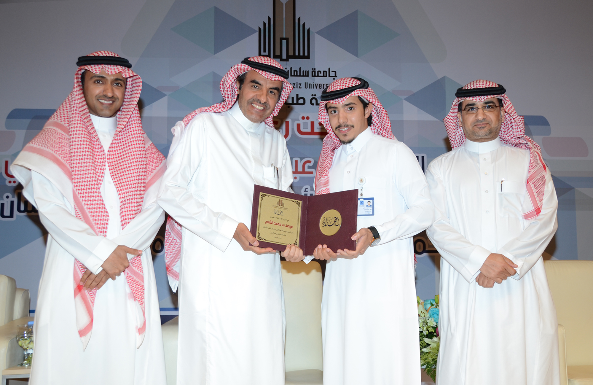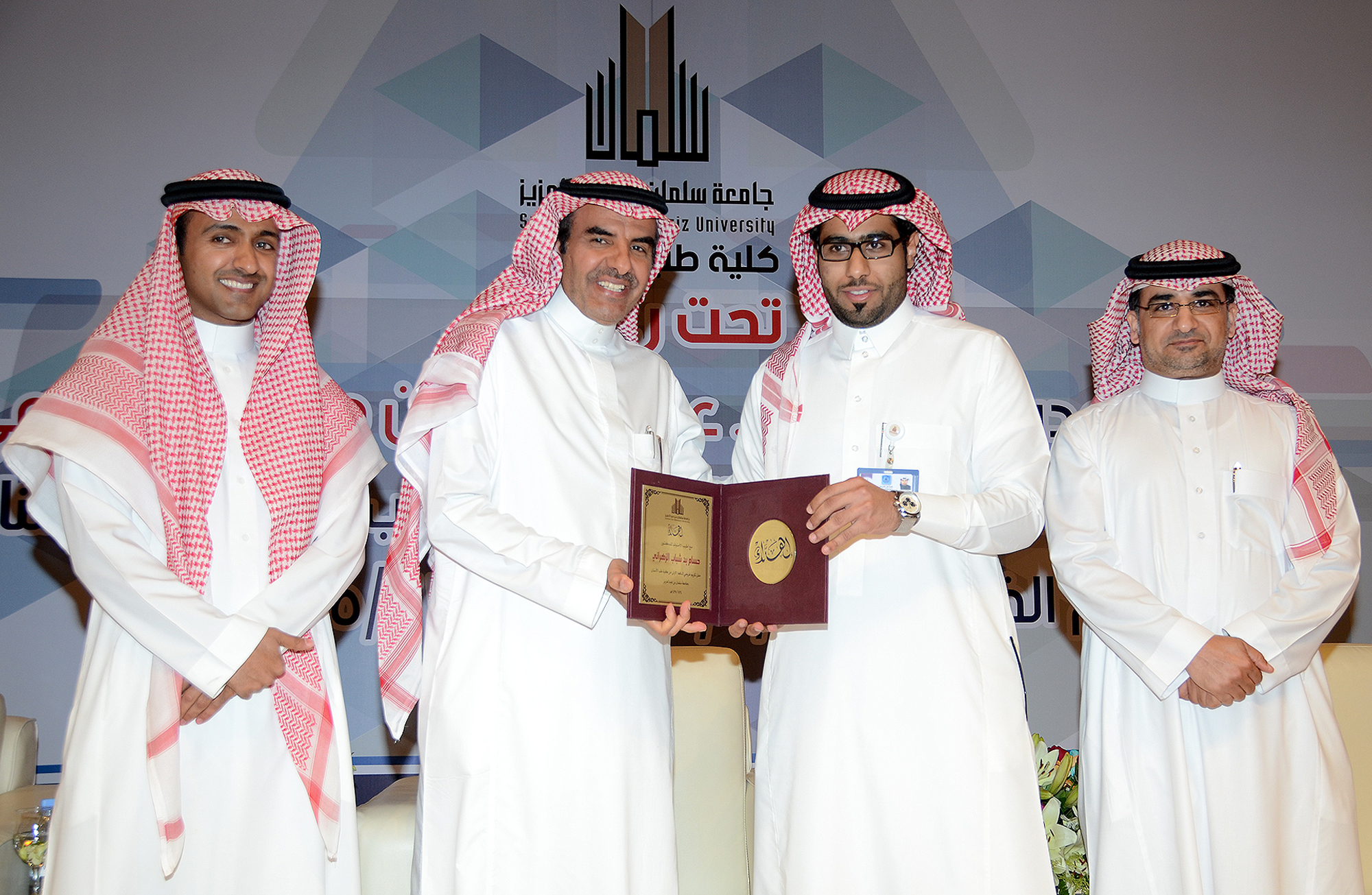 إدارة العلاقات العامة والإعلام رعى معالي مدير جامعة سلمان بن عبد العزيز الدكتور عبد الرحمن بن محمد العاصمي حفل تكريم خريجي الدفعة الأولى من طلاب كلية طب الأسنان، وحضر الحفل وكلاء الجامعة والعمداء وأعضاء هيئة التدريس والطلاب وأولياء أمور الطلاب الخريجين بمسرح المدينة الجامعية بالخرج، وبدأ الحفل بآيات من الذكر الحكيم تلتها كلمة الطلاب الخريجين ثم كلمة لعميد كلية طب الأسنان الدكتور نايف بن دايل بدأها في الترحيب بالضيوف واستعرض مراحل تأسيس الكلية وما يتوفر لدى الكلية من إمكانات كبيرة ساعدت على إيجاد بيئة تعليمية اكاديمية ساعدت على تجويد التعليم , وتزويد الطالب بالقدر الضروري من العلوم والمعارف والمهارات ,وذكر بن دايل أن هذا ما كان ليتم لولا توفيق الله ثم الدعم السخي الذي تتلقاه جميع الجامعات السعودية من حكومة خادم الحرمين - حفظه الله ورعاه – وقال: أننا وبدعم مباشر من معالي مدير الجمعة حرصنا كل الحرص على تجويد مخرجات الكلية من خلال توفير أعضاء هيئة التدريس المتميزين والمعامل المجهزة بتقنية عالية ونحن في هذا اليوم الذي نعده بداية ننطلق من خلالها لإعادة التقييم لعملية تطوير مستمرة لبرنامج البكالوريوس وبرنامج تدريب الامتياز ومن ثم فتح أبواب الدراسات العليا.
