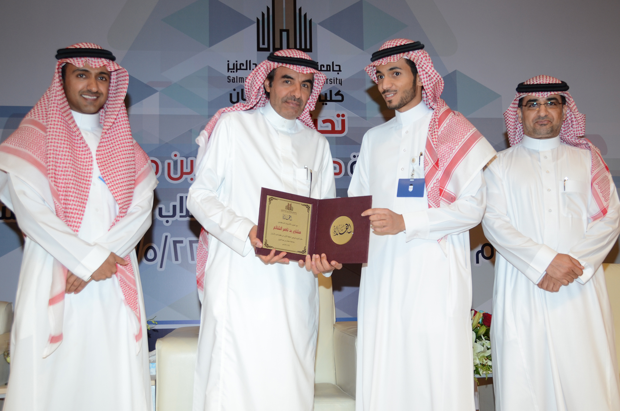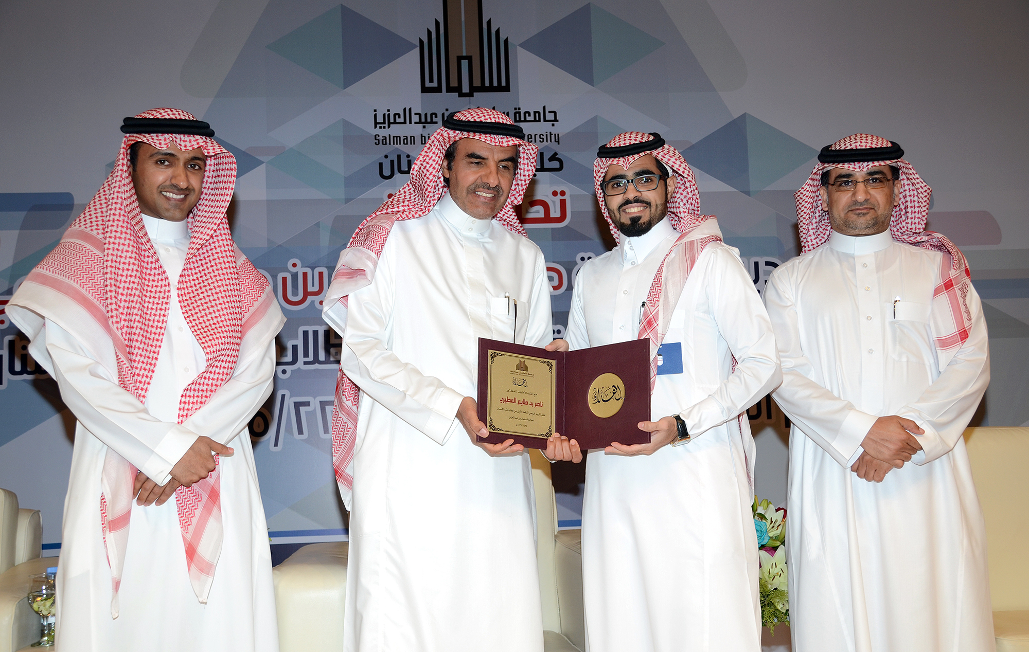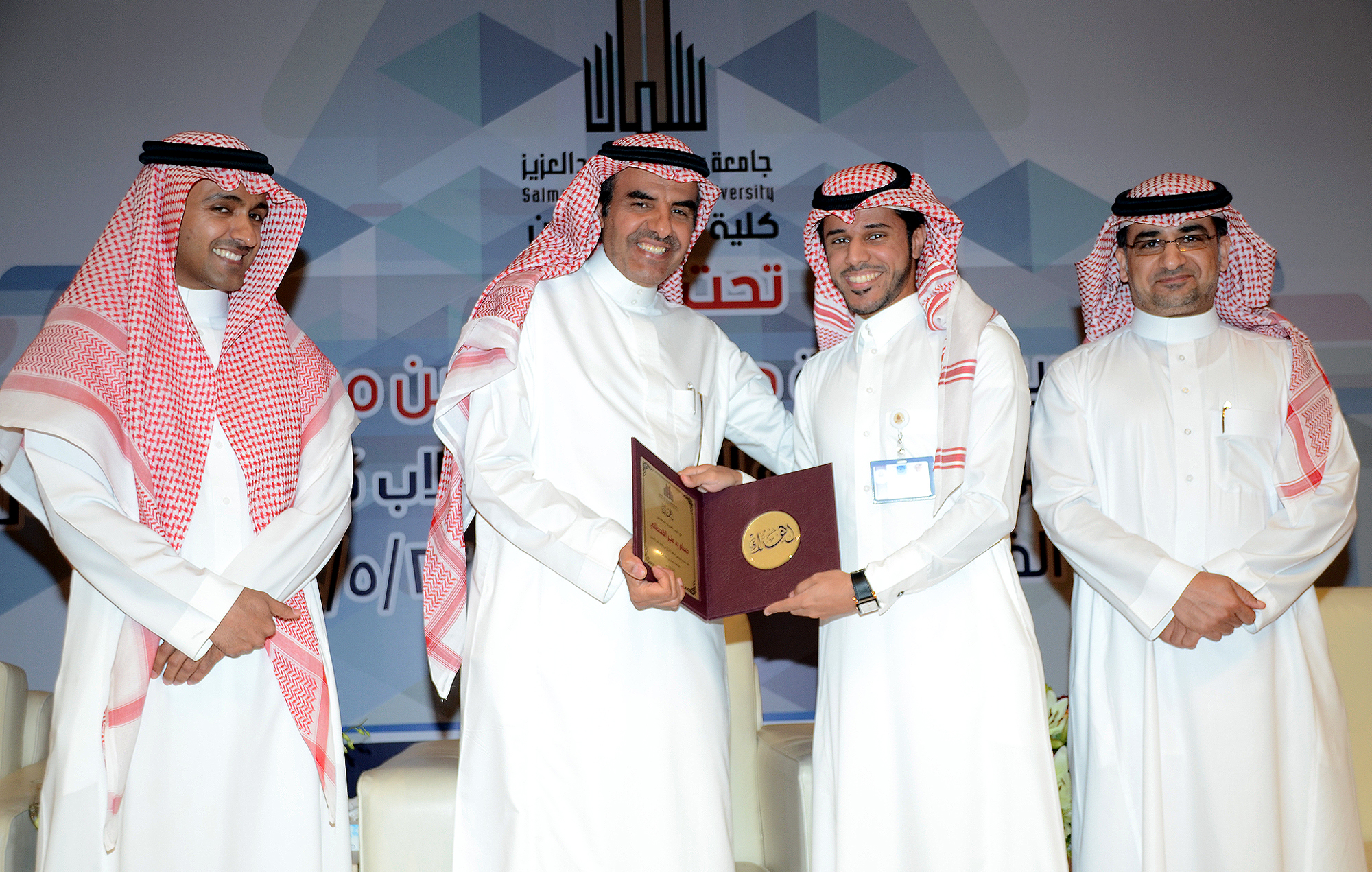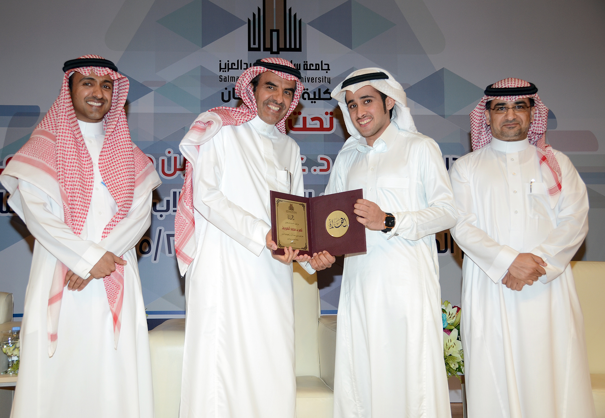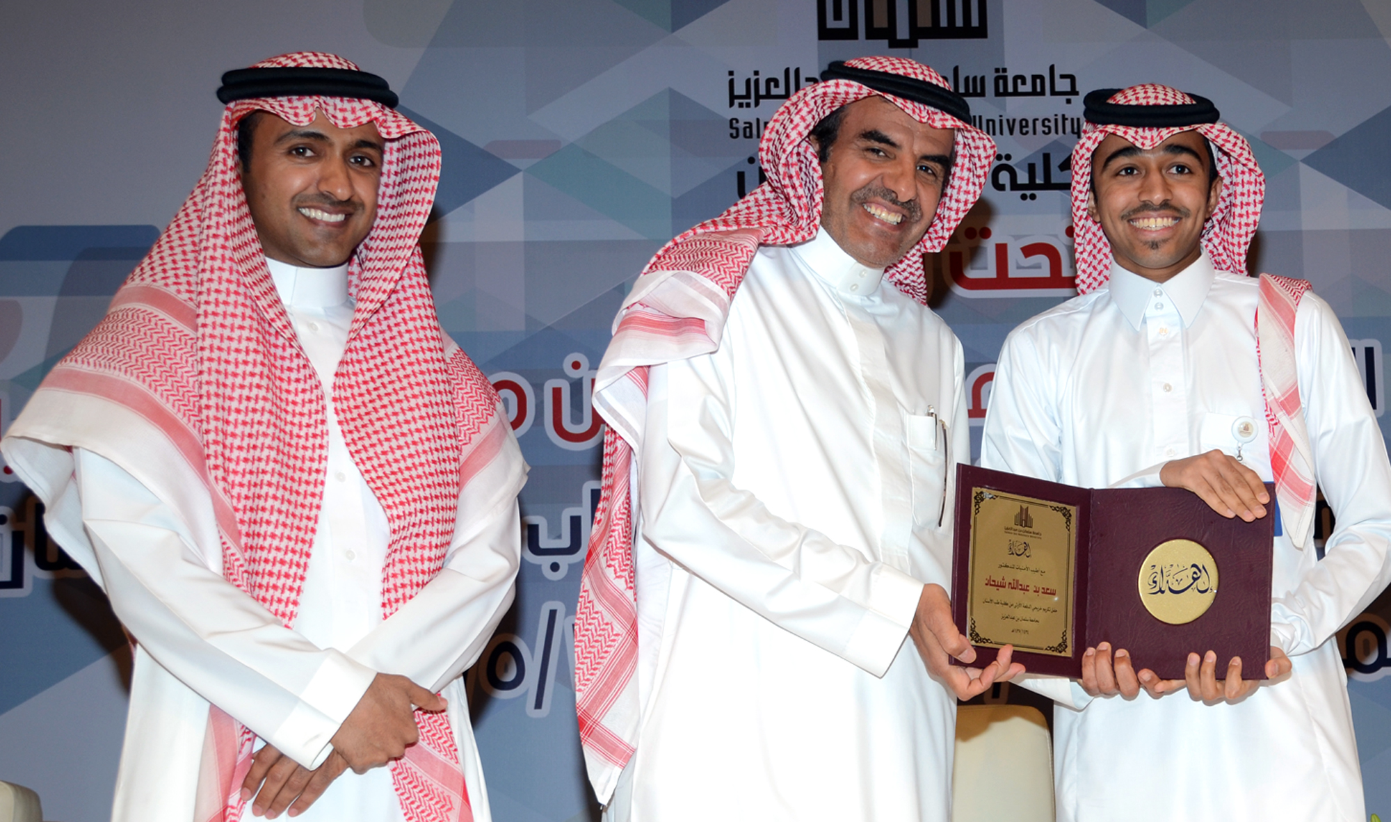 إدارة العلاقات العامة والإعلام رعى معالي مدير جامعة سلمان بن عبد العزيز الدكتور عبد الرحمن بن محمد العاصمي حفل تكريم خريجي الدفعة الأولى من طلاب كلية طب الأسنان، وحضر الحفل وكلاء الجامعة والعمداء وأعضاء هيئة التدريس والطلاب وأولياء أمور الطلاب الخريجين بمسرح المدينة الجامعية بالخرج، وبدأ الحفل بآيات من الذكر الحكيم تلتها كلمة الطلاب الخريجين ثم كلمة لعميد كلية طب الأسنان الدكتور نايف بن دايل بدأها في الترحيب بالضيوف واستعرض مراحل تأسيس الكلية وما يتوفر لدى الكلية من إمكانات كبيرة ساعدت على إيجاد بيئة تعليمية اكاديمية ساعدت على تجويد التعليم , وتزويد الطالب بالقدر الضروري من العلوم والمعارف والمهارات ,وذكر بن دايل أن هذا ما كان ليتم لولا توفيق الله ثم الدعم السخي الذي تتلقاه جميع الجامعات السعودية من حكومة خادم الحرمين - حفظه الله ورعاه – وقال: أننا وبدعم مباشر من معالي مدير الجمعة حرصنا كل الحرص على تجويد مخرجات الكلية من خلال توفير أعضاء هيئة التدريس المتميزين والمعامل المجهزة بتقنية عالية ونحن في هذا اليوم الذي نعده بداية ننطلق من خلالها لإعادة التقييم لعملية تطوير مستمرة لبرنامج البكالوريوس وبرنامج تدريب الامتياز ومن ثم فتح أبواب الدراسات العليا.