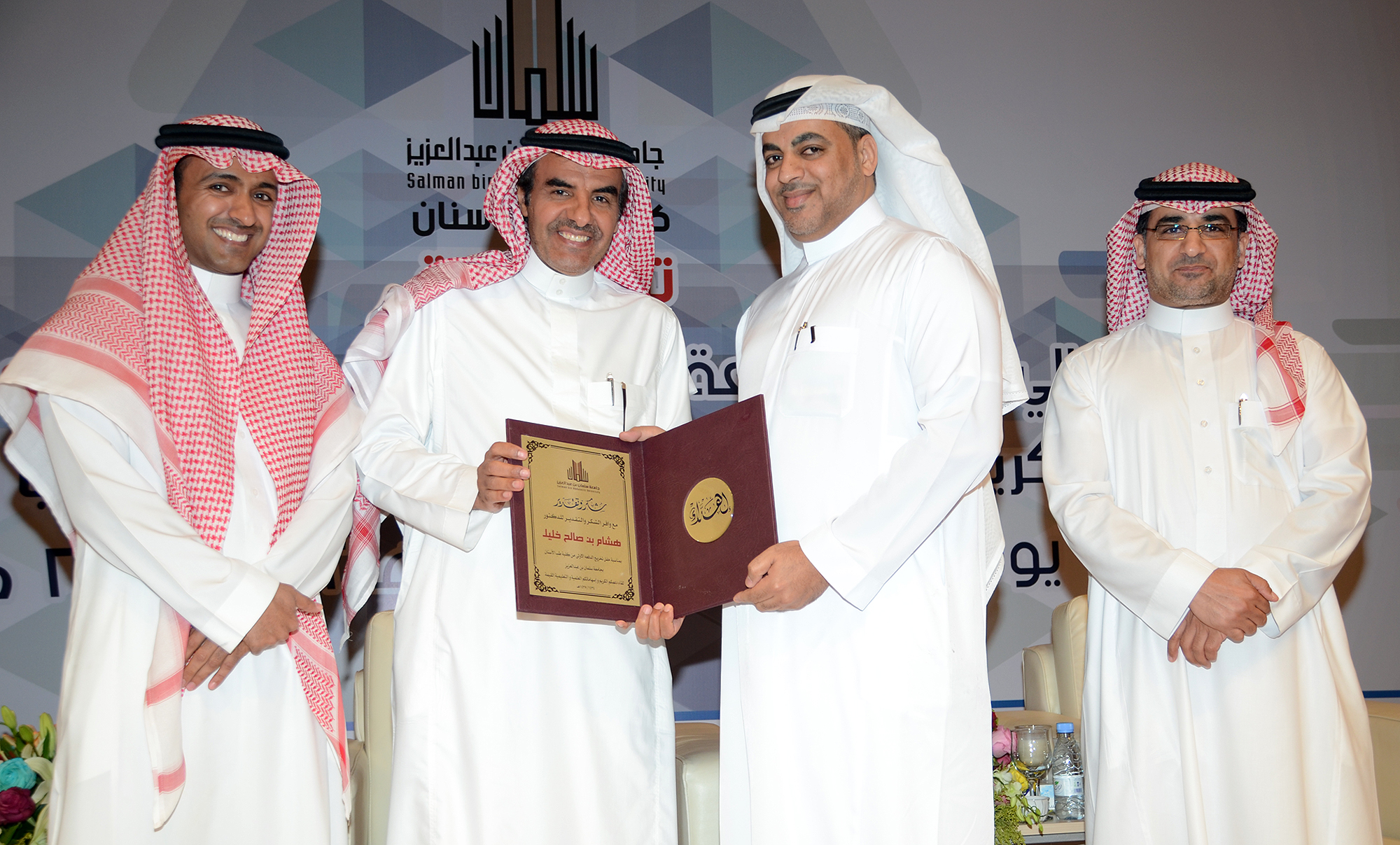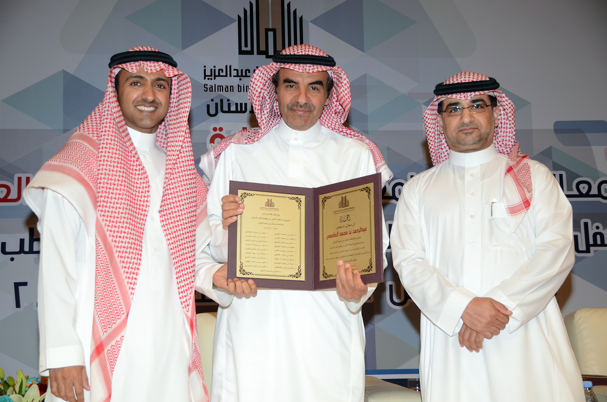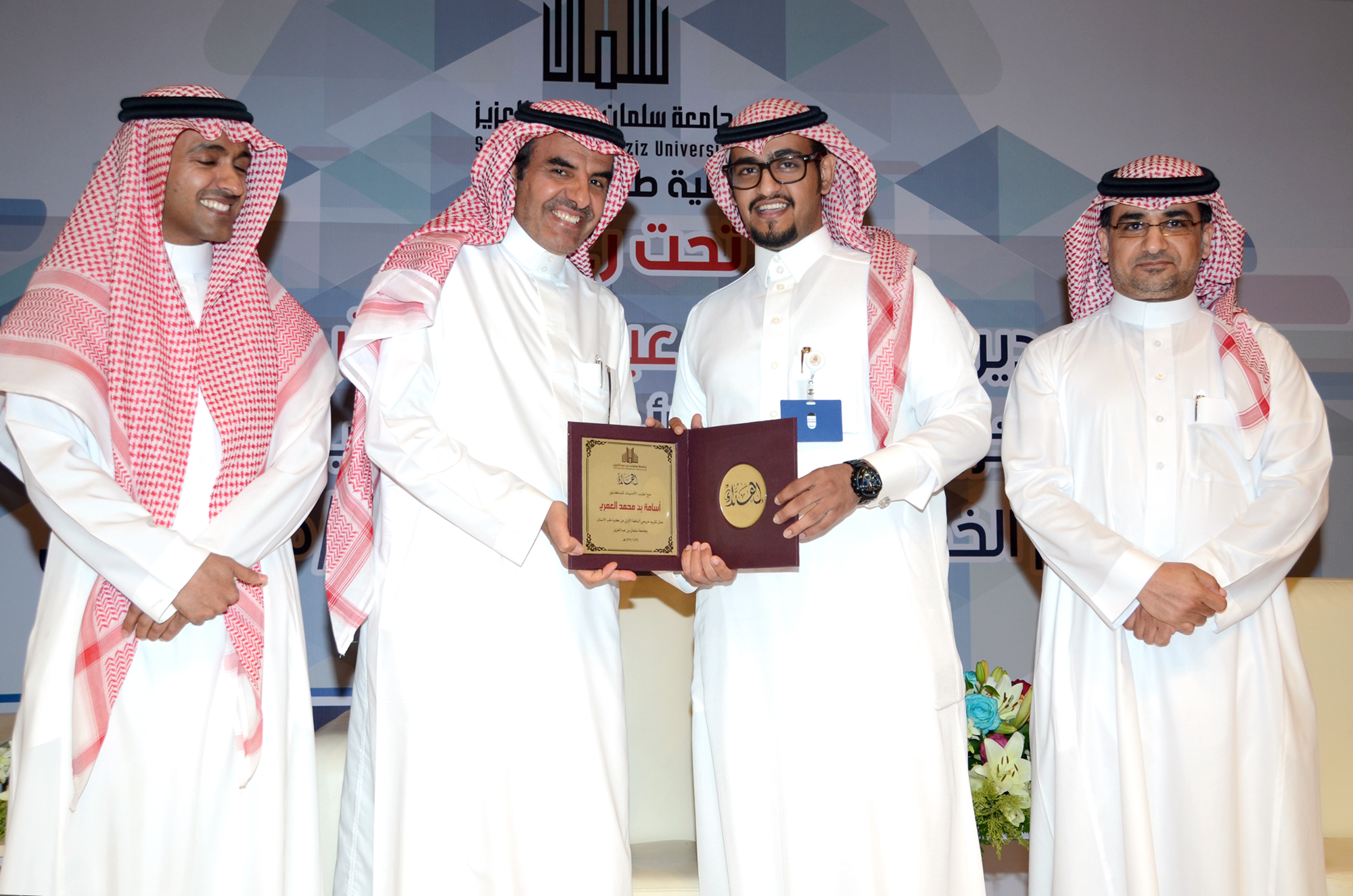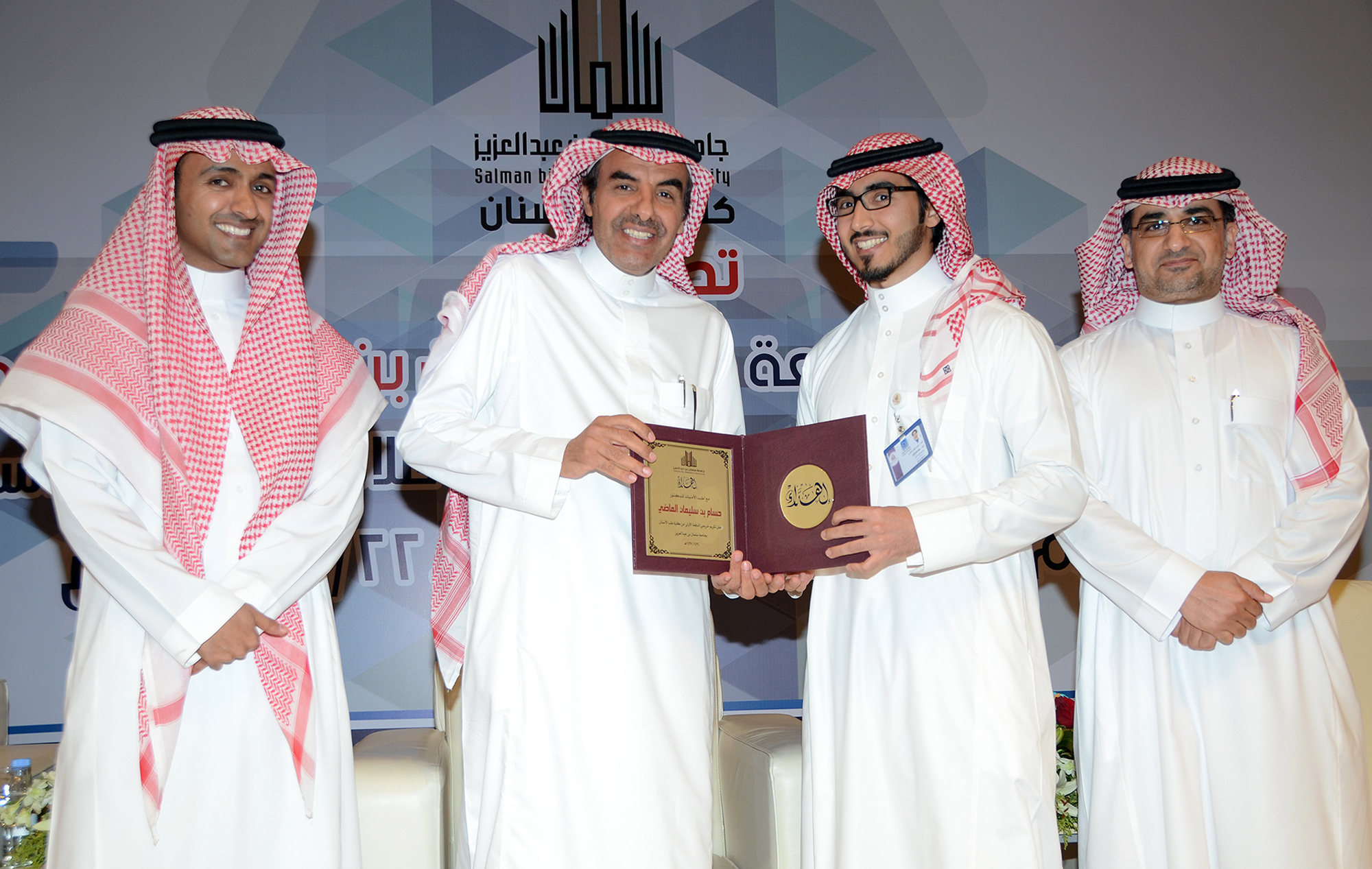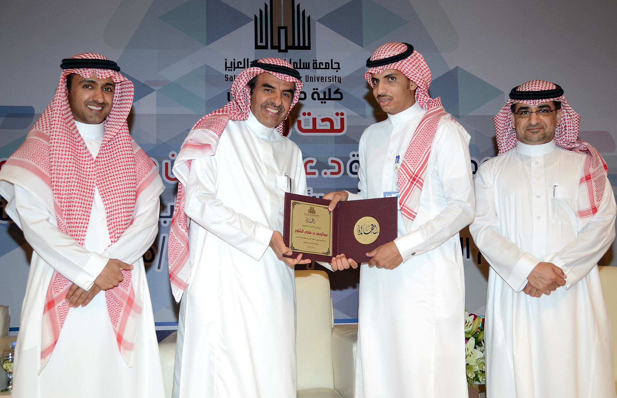 إدارة العلاقات العامة والإعلام رعى معالي مدير جامعة سلمان بن عبد العزيز الدكتور عبد الرحمن بن محمد العاصمي حفل تكريم خريجي الدفعة الأولى من طلاب كلية طب الأسنان، وحضر الحفل وكلاء الجامعة والعمداء وأعضاء هيئة التدريس والطلاب وأولياء أمور الطلاب الخريجين بمسرح المدينة الجامعية بالخرج، وبدأ الحفل بآيات من الذكر الحكيم تلتها كلمة الطلاب الخريجين ثم كلمة لعميد كلية طب الأسنان الدكتور نايف بن دايل بدأها في الترحيب بالضيوف واستعرض مراحل تأسيس الكلية وما يتوفر لدى الكلية من إمكانات كبيرة ساعدت على إيجاد بيئة تعليمية اكاديمية ساعدت على تجويد التعليم , وتزويد الطالب بالقدر الضروري من العلوم والمعارف والمهارات ,وذكر بن دايل أن هذا ما كان ليتم لولا توفيق الله ثم الدعم السخي الذي تتلقاه جميع الجامعات السعودية من حكومة خادم الحرمين - حفظه الله ورعاه – وقال: أننا وبدعم مباشر من معالي مدير الجمعة حرصنا كل الحرص على تجويد مخرجات الكلية من خلال توفير أعضاء هيئة التدريس المتميزين والمعامل المجهزة بتقنية عالية ونحن في هذا اليوم الذي نعده بداية ننطلق من خلالها لإعادة التقييم لعملية تطوير مستمرة لبرنامج البكالوريوس وبرنامج تدريب الامتياز ومن ثم فتح أبواب الدراسات العليا.