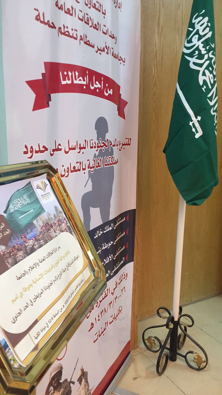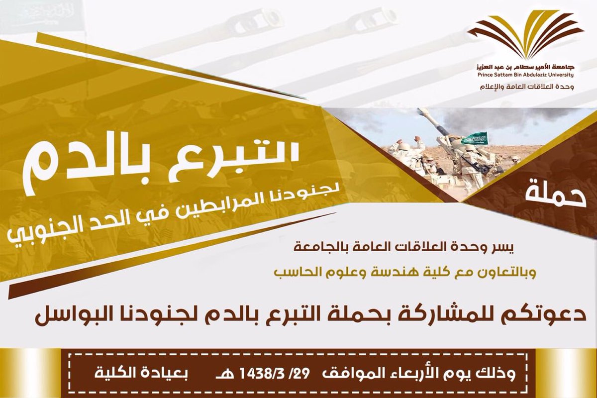وقد شهدت الحملة التي انطلقت فعالياتها الأحد 26 من شهر ربيع الأول 1438هـ إقبالا كبيراً، وحرصاً واضحاً على المشاركة بالتبرع بالدم، من طالبات كليات الجامعة في شتّى فروعها، وأعرب المشرف على الإدارة العامة للعلاقات العامة والإعلام الدكتور عيسى بن خلف الدوسري عن سعادته وسروره بما حققته الحملة من نتائج طيبة، وآثار ملموسة، أكدت ما يُكنه منسوبي جامعة سطام لجنودنا المرابطين في الحد الجنوبي، تقديرا واعتزازا بما يبذلونه في سبيل الدفاع عن بلاد الحرمين الشريفين التي هي معقل الإسلام، وبلده الكبير.