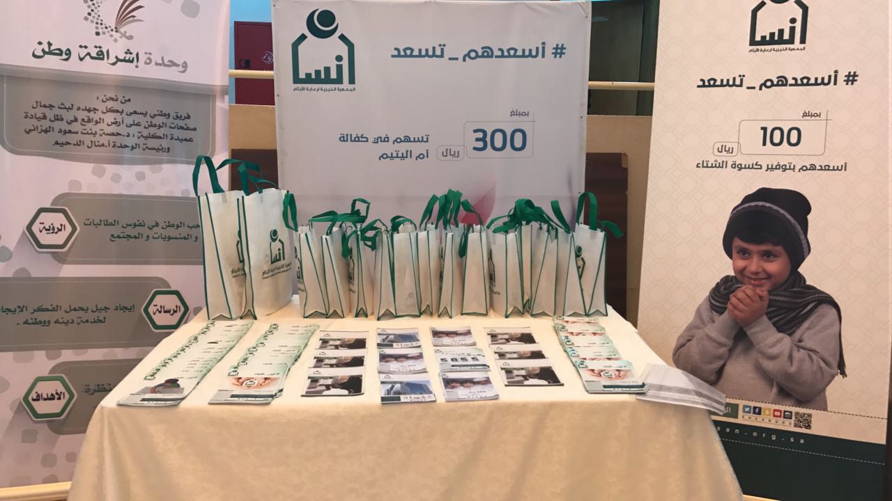 أطلقت جمعية إنسان لرعاية الأيتام بحوطة بني تميم (حملة كفالة ١٠٠ أم يتيم) يوم الخميس 22 /5 / 1439 هـ، حيث تنطلق الحملة من جامعة سطام بن عبد العزيز ممثلة في كلية العلوم والدراسات الإنسانية بحوطة بني تميم دشن برنامج الحملة مدير جمعية إنسان فرع حوطة بني تميم الأستاذ محمد العوين وبقيادة عميدة الكلية الدكتورة حصة بنت سعود الهزاني. هدفت الحملة إلى التخفيف من معاناة أم الأيتام وفتح الباب لأهل الخير والإحسان للمتاجرة مع الله تعالى. نفذت الحملة عدة أركان تعريفية ببرنامج الكفالة وتكاليفها في أنحاء الكلية من إشراف الأستاذات مها الصويتي مسئولة البرامج والعلاقات بالجمعية،والأستاذه شيخة العون مسئولة الكفالات.كما قام المشرفات بجولات في مكاتب وقاعات الكلية للتعريف بتفاصيل الحملة والحث على المشاركة. وقد لاقت أركان الحملة اقبالاً كبيراً من الطالبات حيث شارك عدد كبير منهم في برنامج الكفالة ، كما رحبت عميدة الكلية بأعضاء الحملة ومشرفاتها وأشادت بالجهود المقدمة وحثت الجميع على المبادرة وبسط يد العون والمساعدة ولو بالقليل.