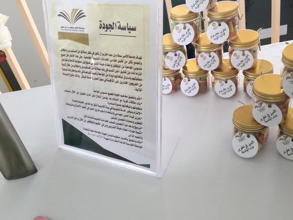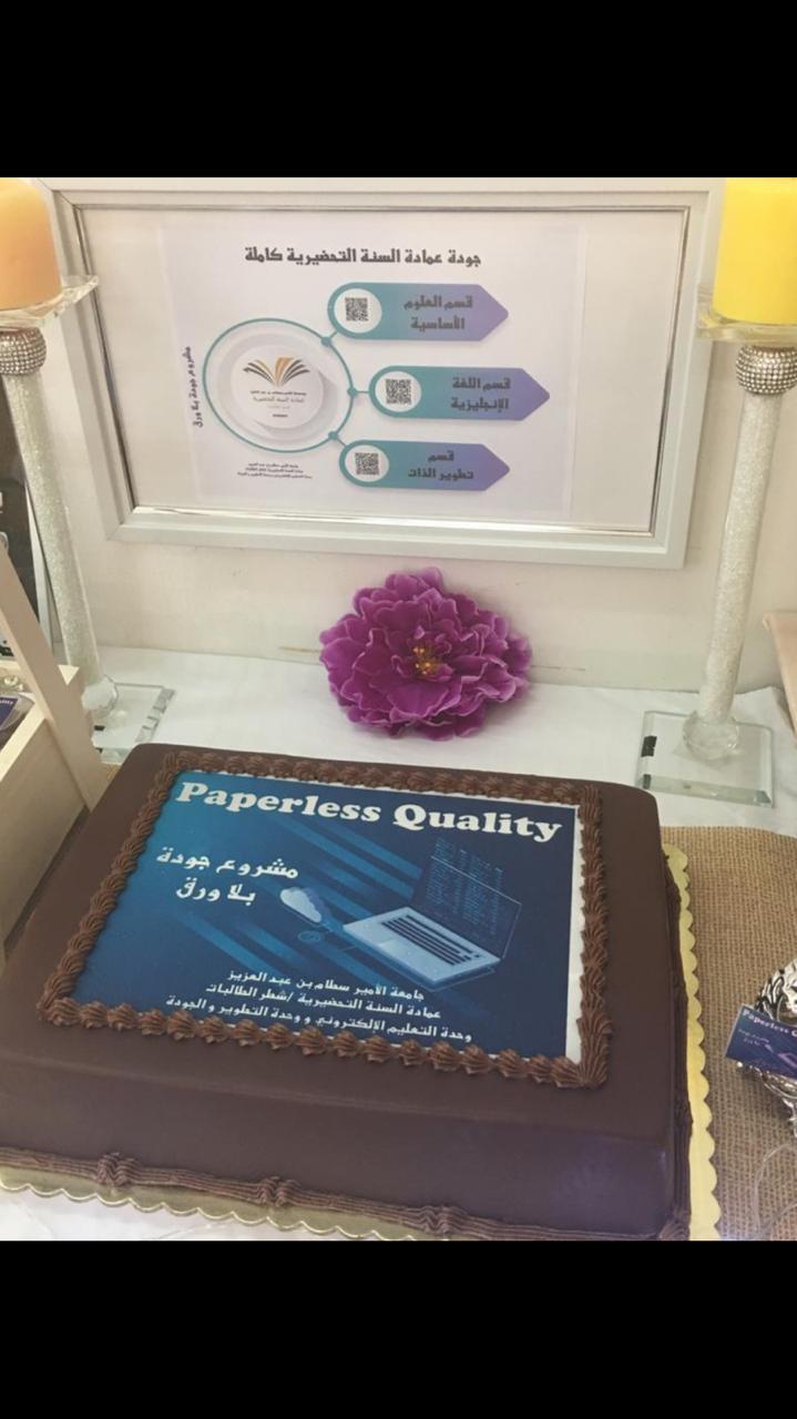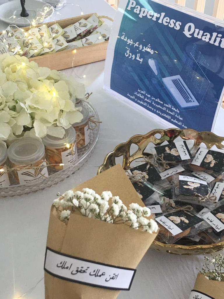 نظمت عمادة السنة التحضيرية شطر الطالبات بجامعة الأمير سطام بن عبدالعزيز فعالية جودة بلا ورق paperless Quality وذلك يوم الخميس الموافق 7/ 3/ 1440هـ وأقامت معرض مصاحب له، حيث تم افتتاحه المعرض بكلمة من وكيلة العمادة الدكتورة أمل الشمراني وذلك بمناسبة بدء مرحلة جديدة لمواكبة تطورات العالم في أحدث وسائل التعليم الإلكتروني والجودة العالمية تحت إشراف وحدة التطوير والجودة ووحدة التعليم الإلكتروني بالعمادة وتضمنت الفعالية معرض مصاحب يحتوي على 6 أركان:( ركن عرض فكرة مشروع جودة بلا ورق باستخدام الكود, ركن سفيرات الجودة , ركن أهمية الجودة في التعليم العالي , ركن الجودة والتوثيق, ركن جودة بلا ورق صديق للبيئة, ركن قهوتنا جودتها عالية) .حيث تم عرض فكرة الأركان السابقة للحضور. وحضر الفعالية عدد من أعضاء هيئة التدريس والإداريات من جميع الأقسام.