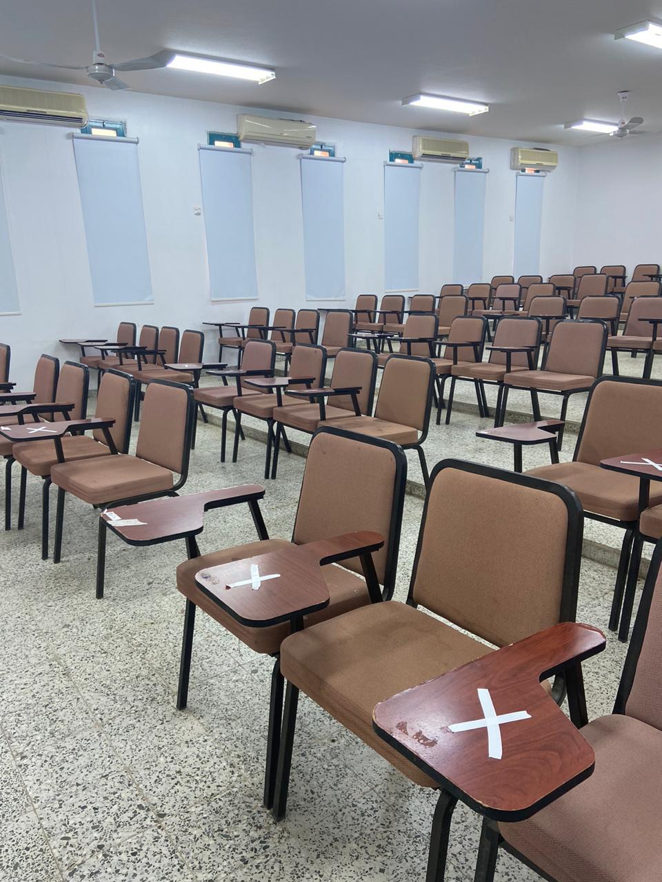وتابعت الوكيلة طرق تطبيق الإجراءات الاحترازية في ظل جائحة كورونا ، كما وقفت على سير أعمال الامتحانات وطريقة توزيع الطالبات وانتظامهم في مقاعدهم وانصرافهم .