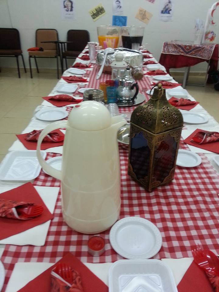 وفي لمسة وفاء للطالبات اللائي اشتركن في معظم الفاعليات الخاصة بالقسم تكريما لهن وتشجيعا لغيرهن من الطالبات قدمت مشرفة النشاط الطلابي بعض الهدايا الرمزية لهنّ، ثم دعت الجميع للساحة لمشاهدة الأركان الخاصة بالطالبات وقد شاركت خريجات القسم ممن يعملن بالكلية بركن خاص أقامته وهو خاص بأجواء رمضان ومشروباته وأكلاته كما زينت جدران القاعة بصور الأدباء العرب والشعراء وصور فنية مرسومة بالخط العربي لتوضح مدى إبداع الخط العربي وقد لاقت جميع الأركان إعجاب الحضور.