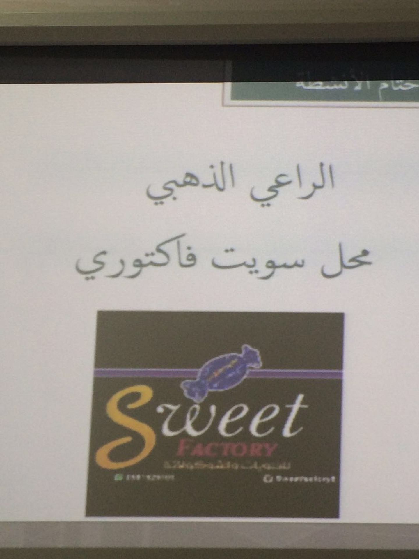 بعد ذلك تم تكريم رعاة أنشطة الكلية من خارج الجامعة وتقديم شهادات الشكر نظير دعمهم للأنشطة الطلابية وهم مطعم و كوفي دار بدرية- محل سويت فاكتوري(الراعي الذهبي)- مستوصفات التعاون الأهلية (الراعي الفضي)- متجر توليب- محل تولين للهدايا- متجر قصة شوكولاتة ..
