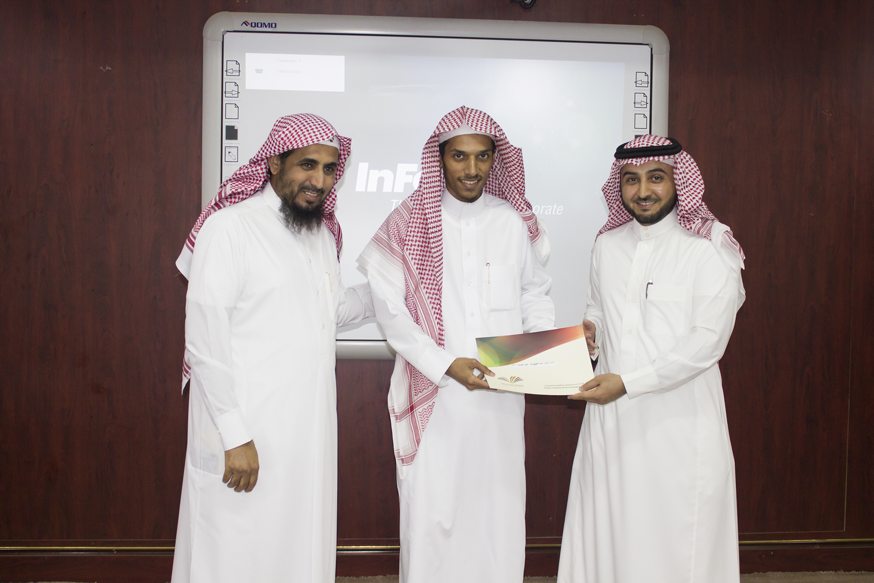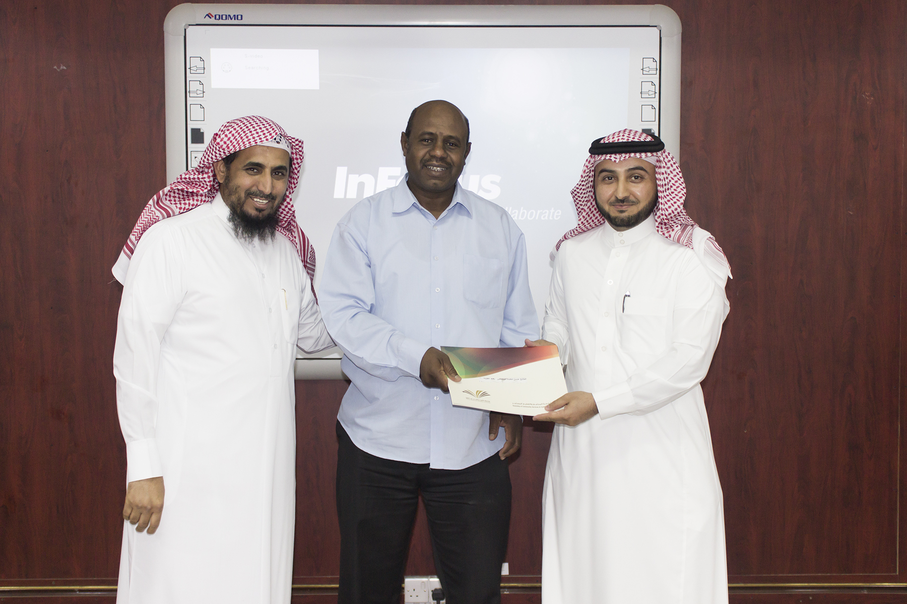 في ختام البرنامج قدم عميد خدمة المجتمع الدكتور خالد بن عبدالله الغملاس شهادات الحضور للمتدربين .