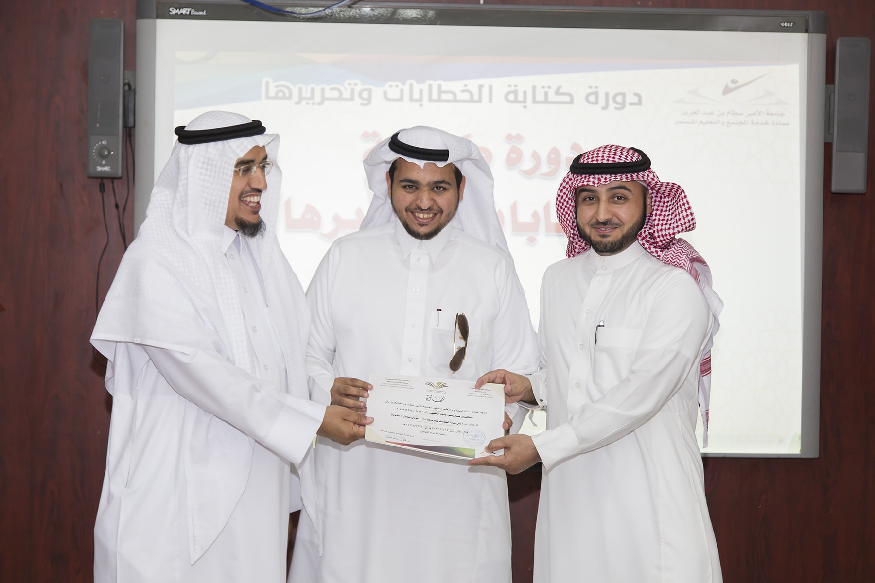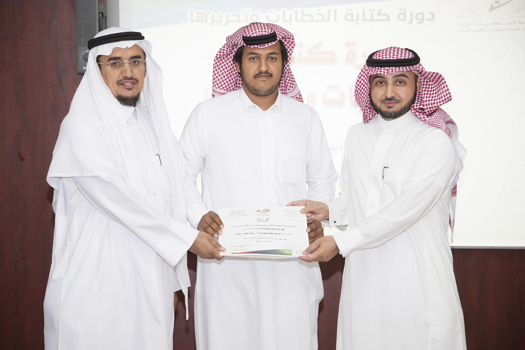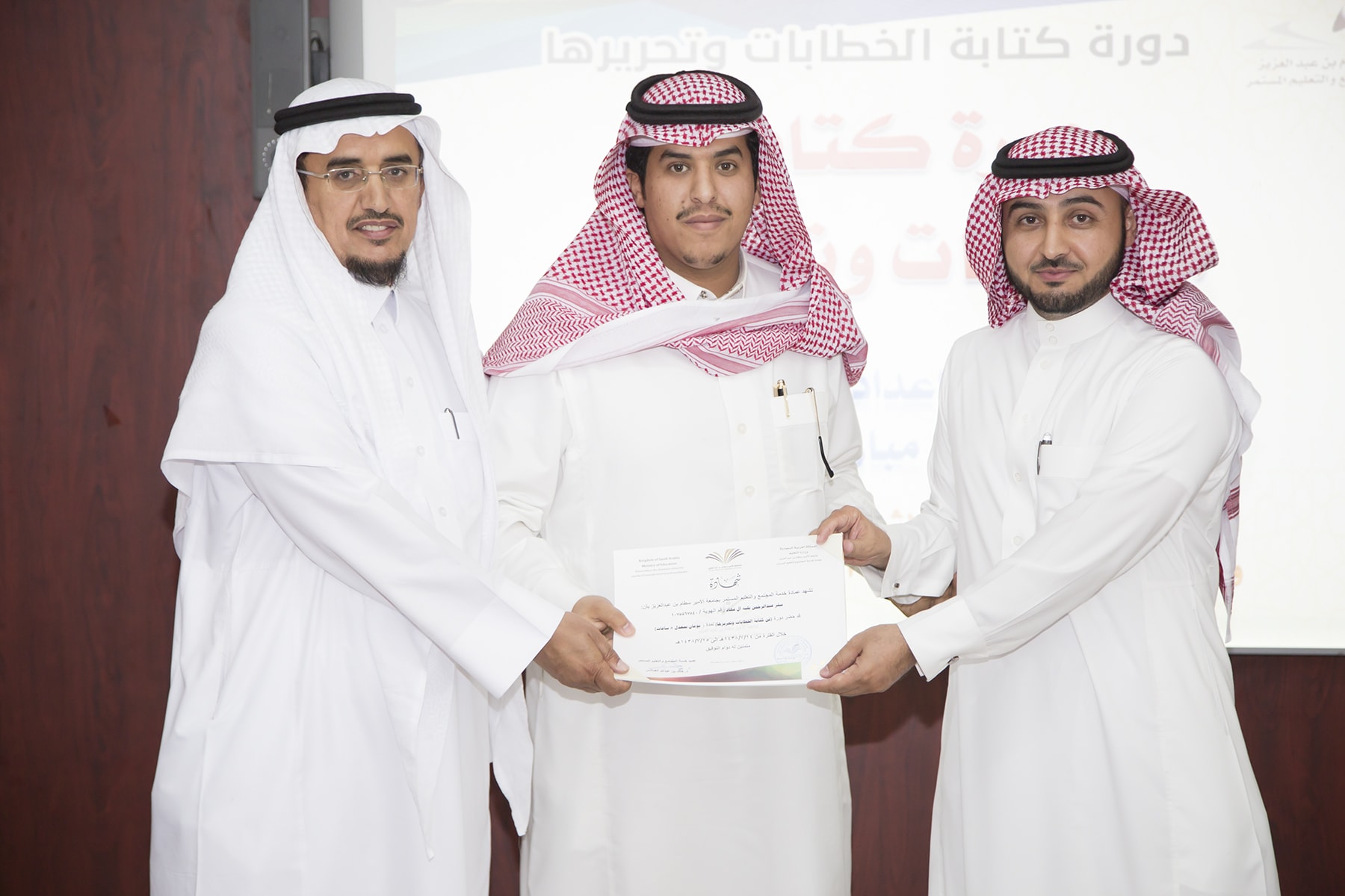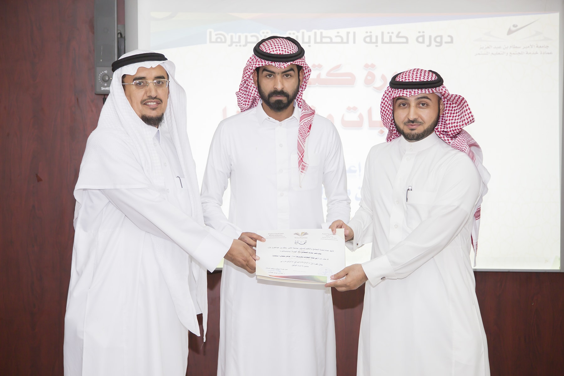 اختتم اليوم الأربعاء 15/7/1438هـ البرنامج التدريبي (فنّ كتابة الخطابات وتحريرها)، والذي امتدّ لمدة يومين بواقع (8) ساعات تدريبيّة، في قاعة التميّز بعمادة خدمة المجتمع والتعليم المستمر.