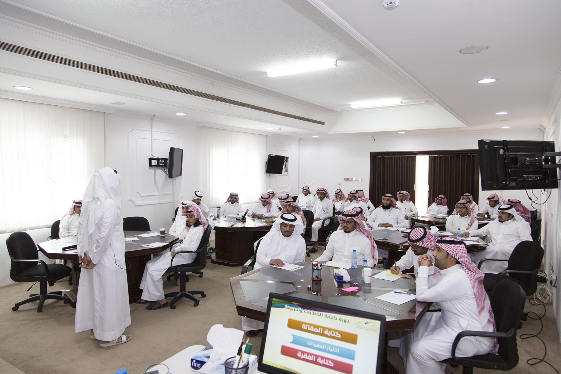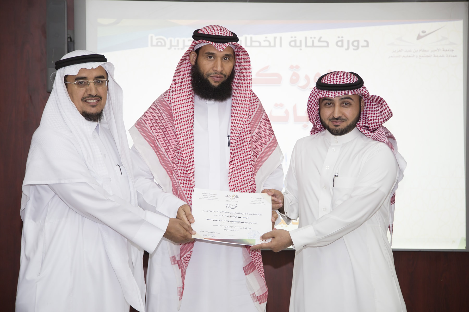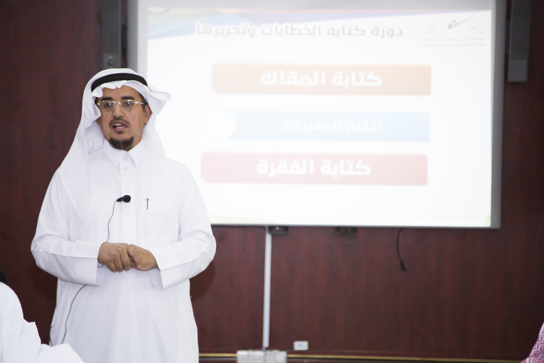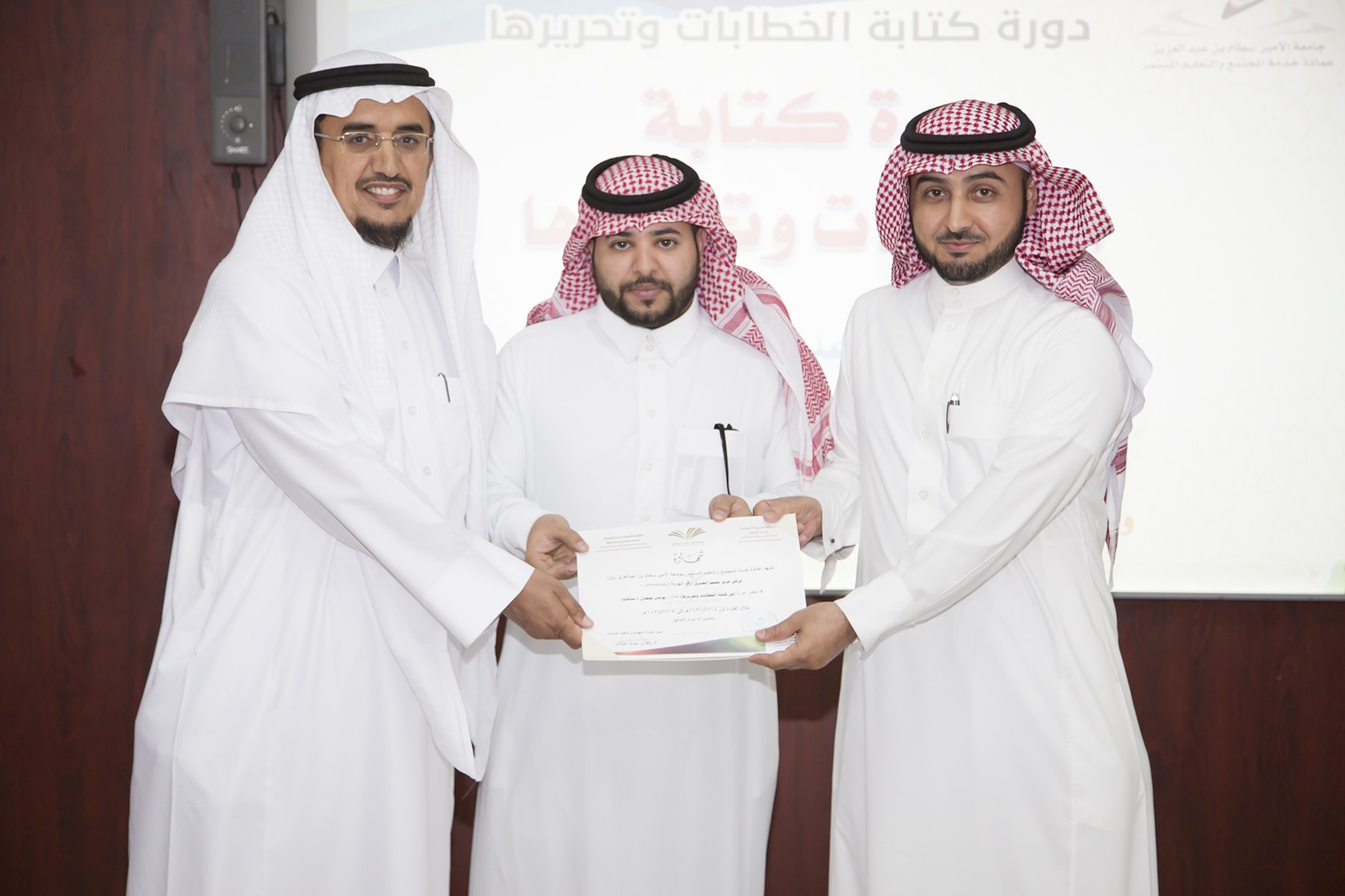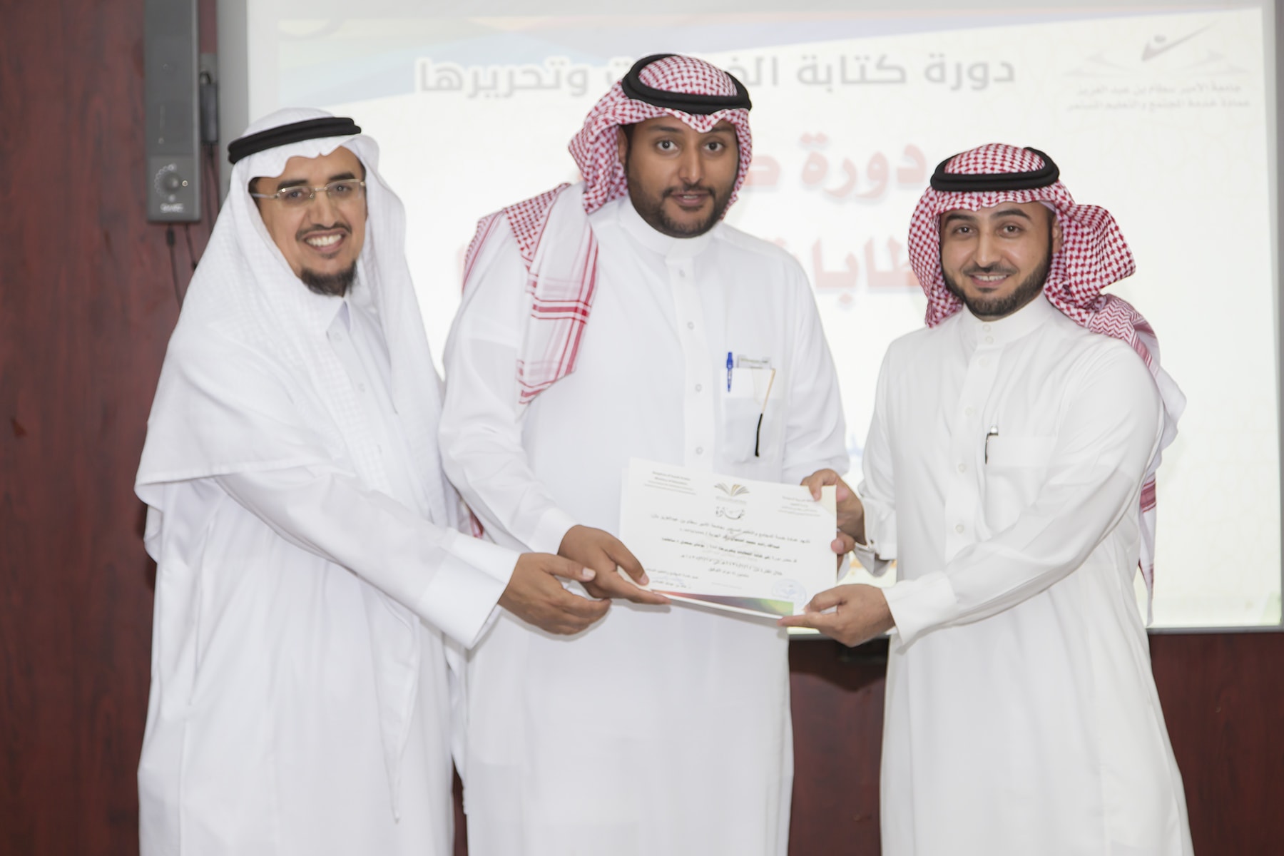 اختتم اليوم الأربعاء 15/7/1438هـ البرنامج التدريبي (فنّ كتابة الخطابات وتحريرها)، والذي امتدّ لمدة يومين بواقع (8) ساعات تدريبيّة، في قاعة التميّز بعمادة خدمة المجتمع والتعليم المستمر.
