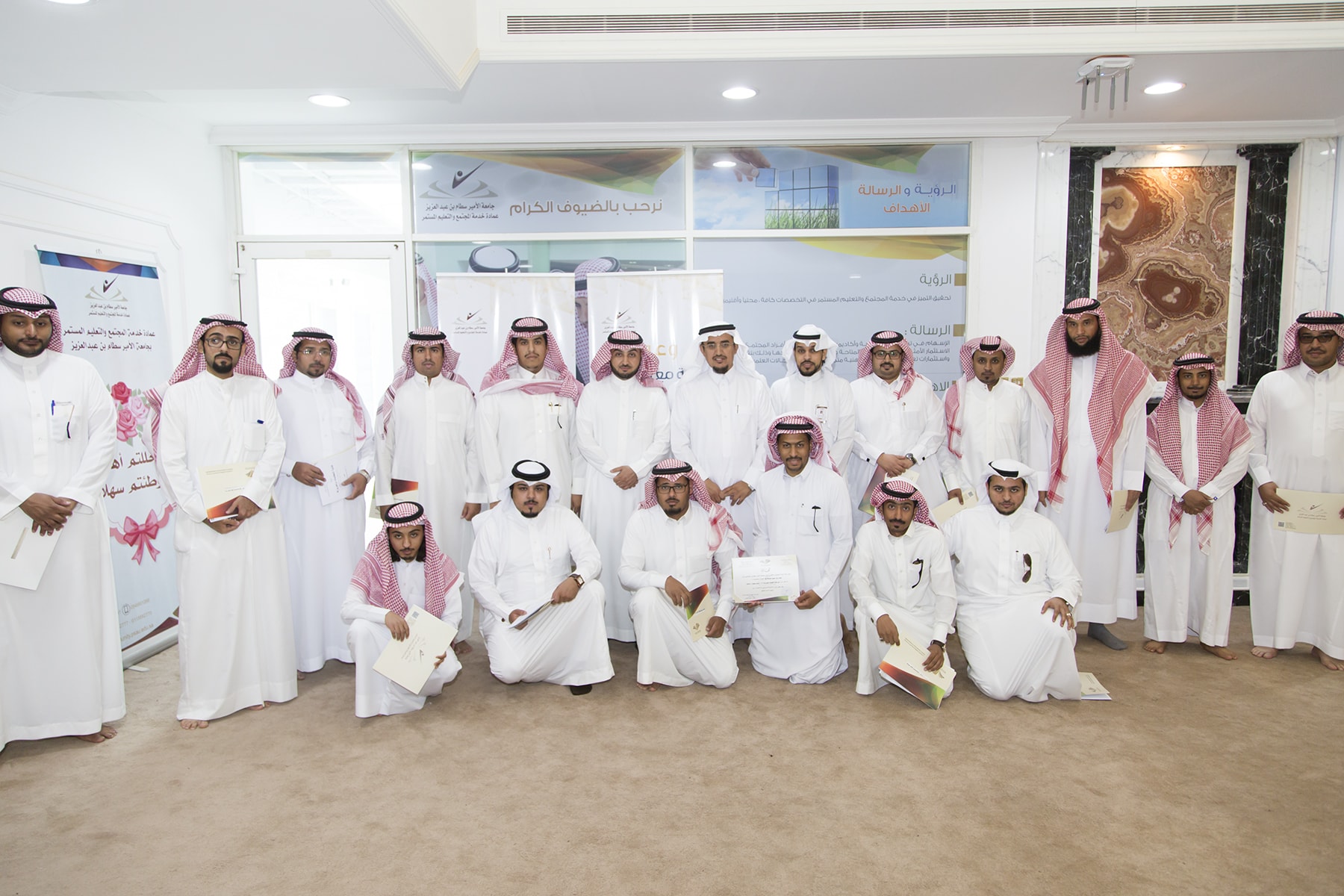 من جانبه أكّد الدكتور خالد الغملاس عميد عمادة خدمة المجتمع والتعليم المستمر أنّ أبواب العمادة والجامعة مفتوحة للراغبين في التطوير الإداري والشخصي وتفعيل هدف الجامعة الثالث خدمة المجتمع بكل الفئات.