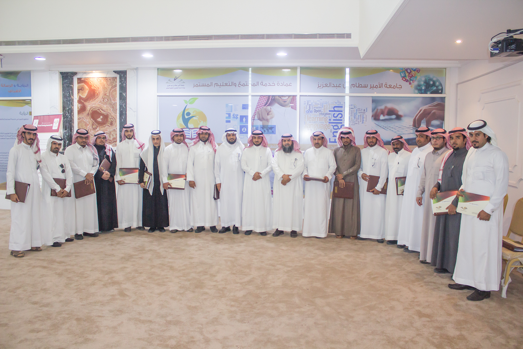 رعى ختام البرنامج عميد خدمة المجتمع و التعليم المستمر الدكتور خالد بن عبدالله الغملاس وسلم الشهادات على المتدربين .