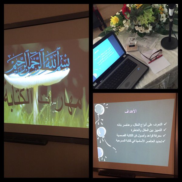 أما يوم الأحد الموافق1437/5/5هـ فقد تم تنظيم دورة تدريبية بالتعاون مع نادي الموهبة عن ( تنمية مهارات الكتابة ( النثر – الشعر – المقال )) إعداد وتقديم د. آمنة رماضنة أستاذ مساعد بقسم اللغة العربية بقاعة الخنساء الساعة التاسعة صباحاً. حيث تهدف الدورة إلى : -