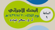 وفي يوم الاثنين الموافق 1437/5/6هـ تم عقد دورة تدريبية عن ( مهارة كتابة البحث العلمي ) إعداد وتقديم د.منى طه أستاذ مساعد بقسم الدراسات الإسلامية وعلوم القرآن بقاعة الخنساء الساعة التاسعة ، وقد تضمنت الدورة ( معرفة معنى البحث العلمي -معرفة أهمية البحث العلمي - مصادر الحصول علي مشكلة البحث - اختيار مشكلة البحث - صياغة مشكلة البحث - كتابة خطة البحث - المعالجات للحصول علي النتائج ) .