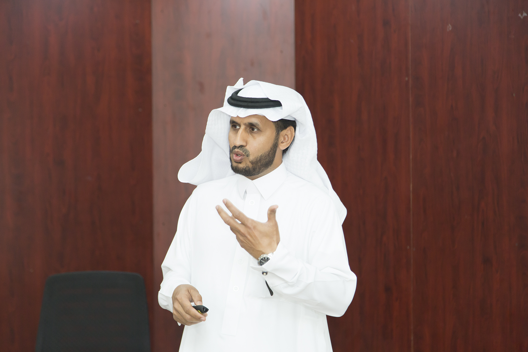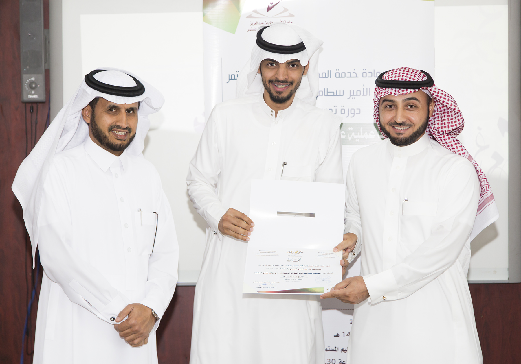 كما قدم شكره لفريق العمل في العمادة بقيادة الوكيل الدكتور علي الربيعان وإدارة التدريب وإدارة العلاقات و الإعلام على جهودهم في نجاح هذا البرنامج .