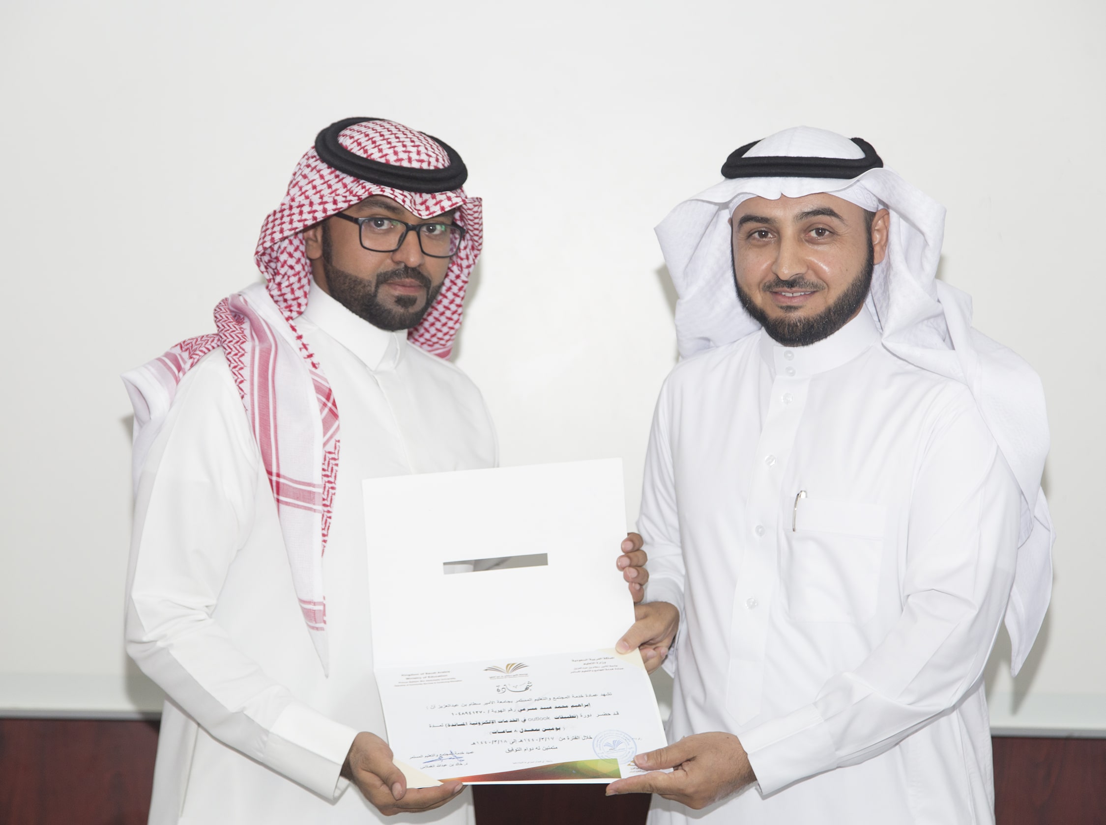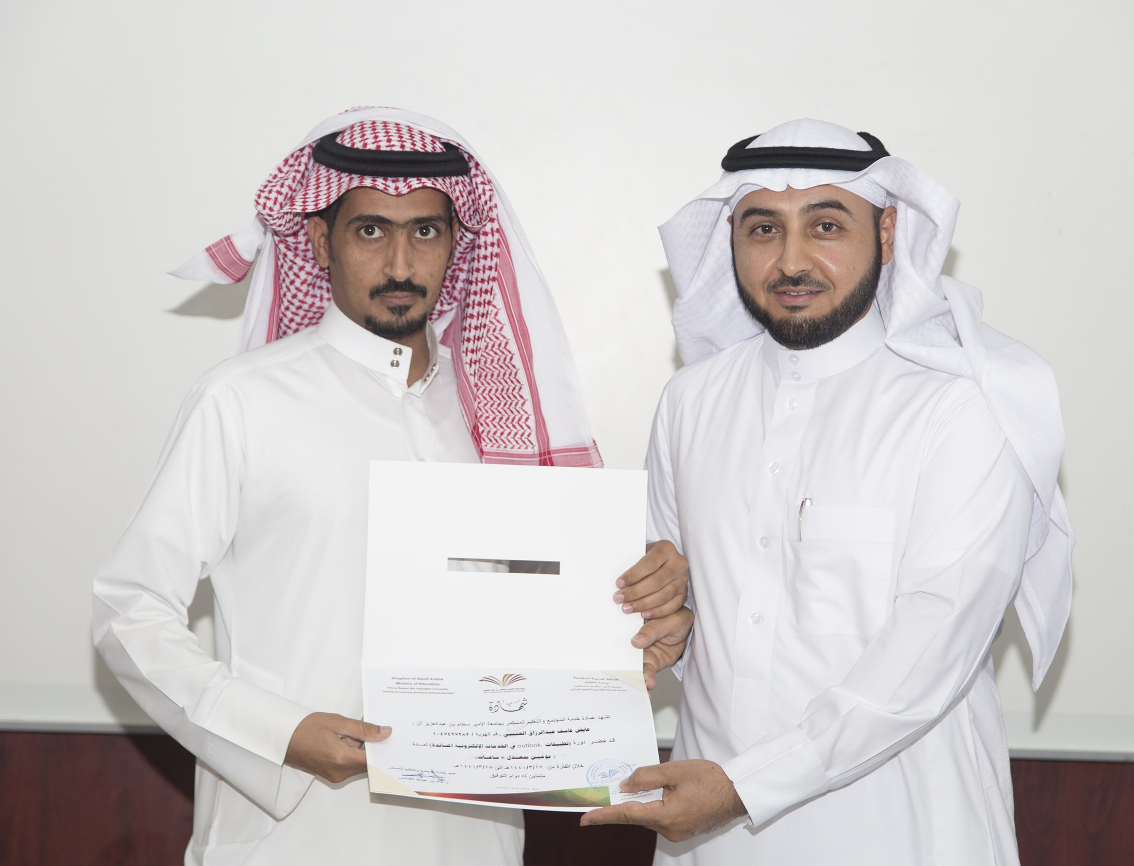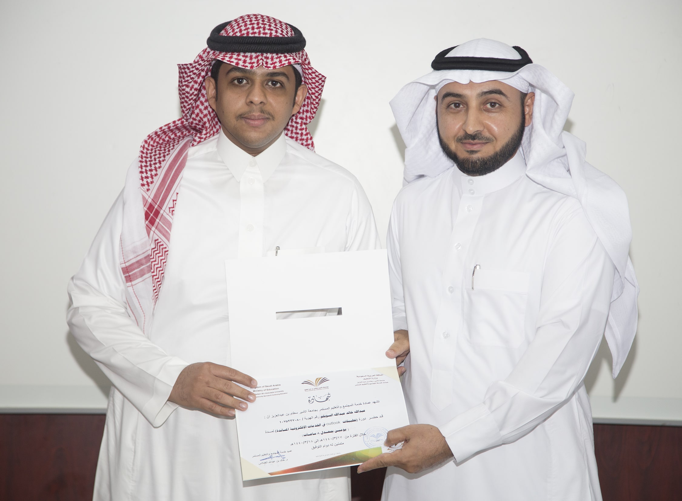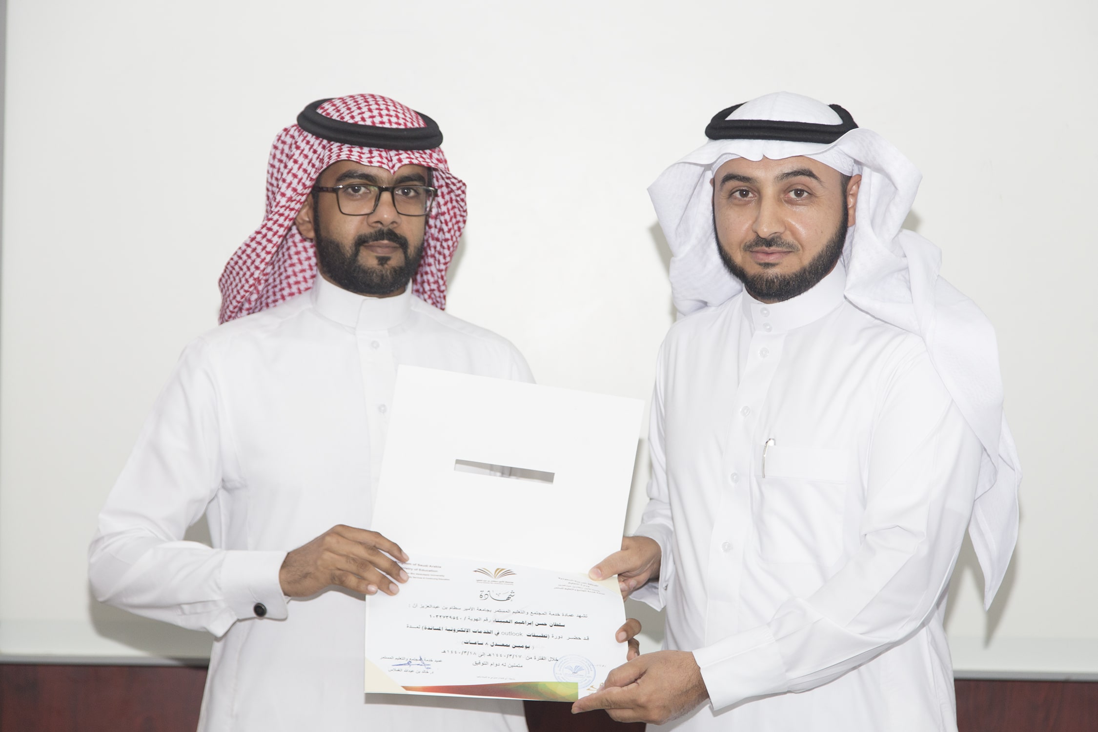 بحضور عميد خدمة المجتمع والتعليم المستمر الدكتور خالد بن عبدالله الغملاس ، اختتم مساء اليوم البرنامج التدريبي : تطبيقات outlook في الخدمات الإلكترونية والذي امتد ليومان وبواقع ٨ ساعات تدريبية تركزت على الجانب العملي في معمل الحاسب الآلي بالعمادة .