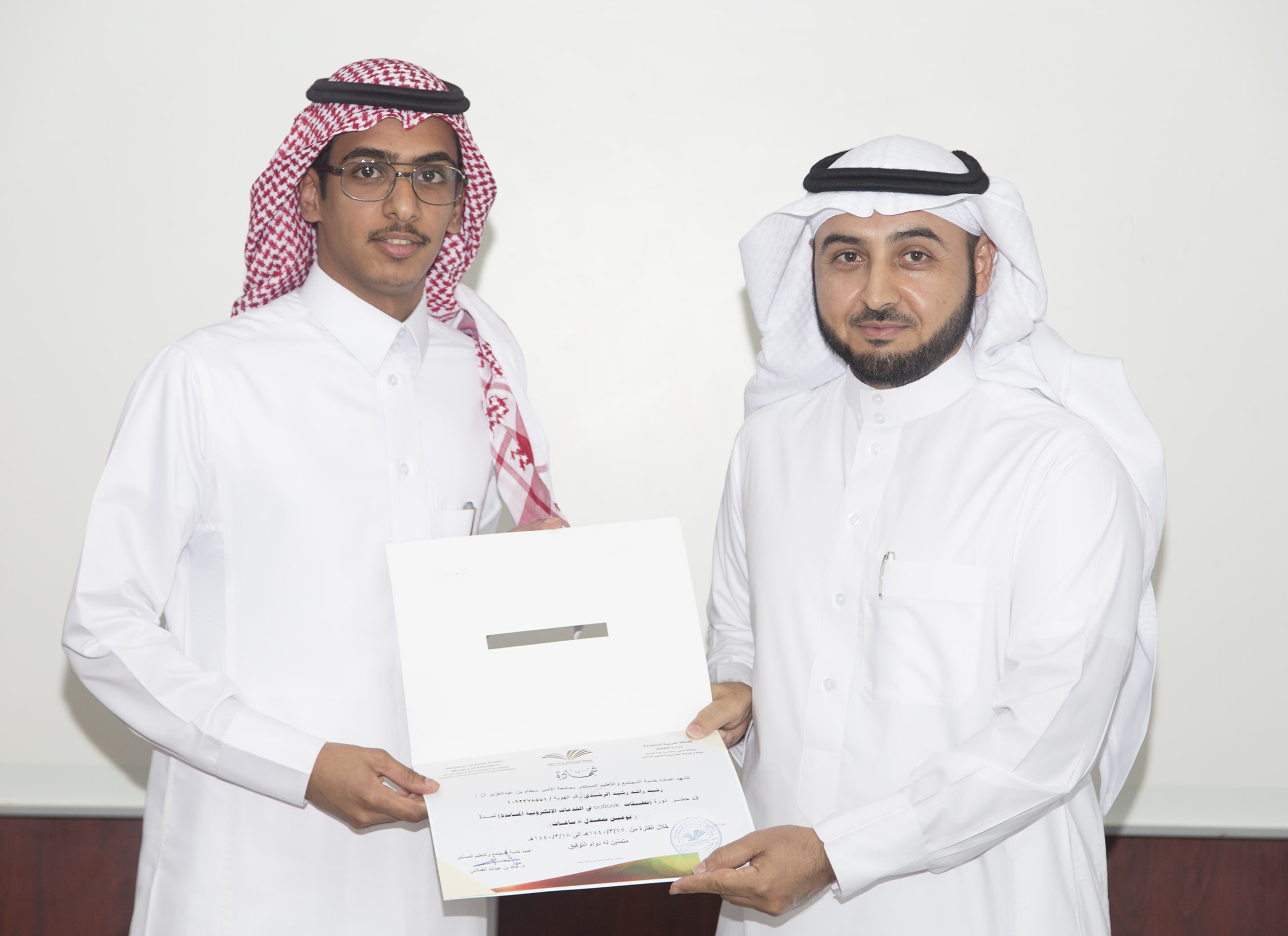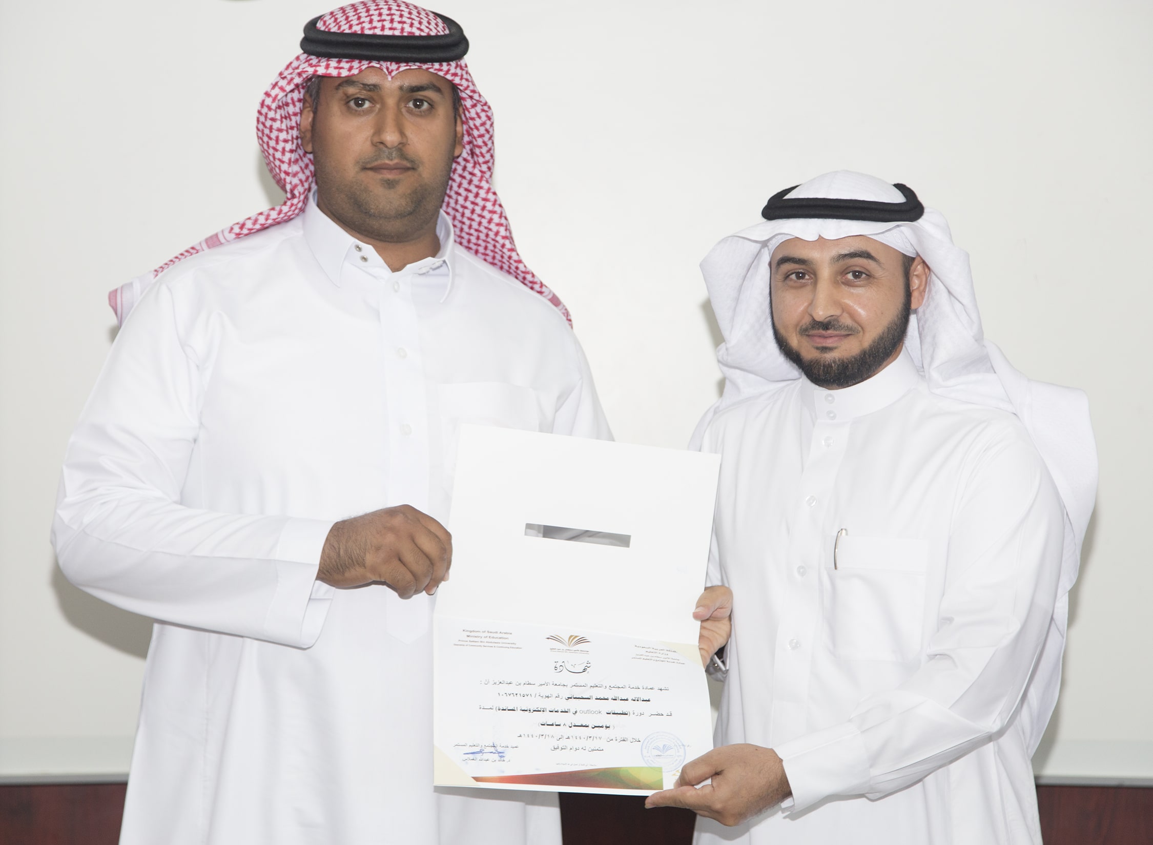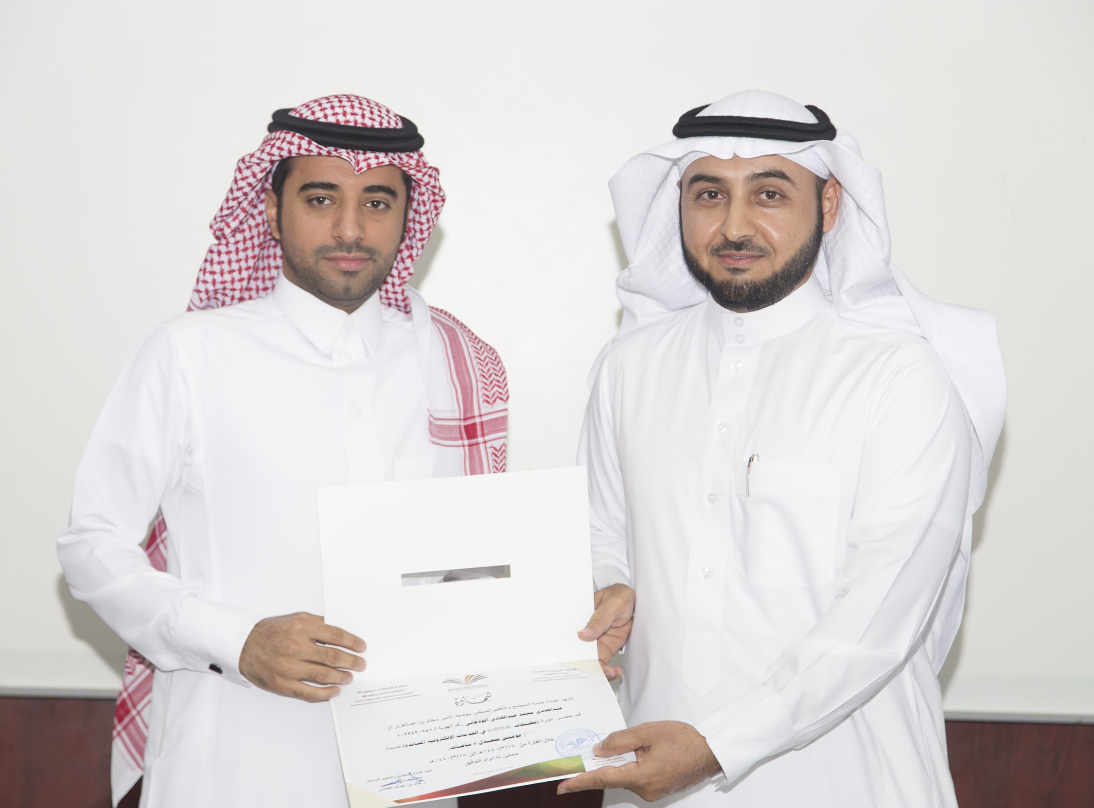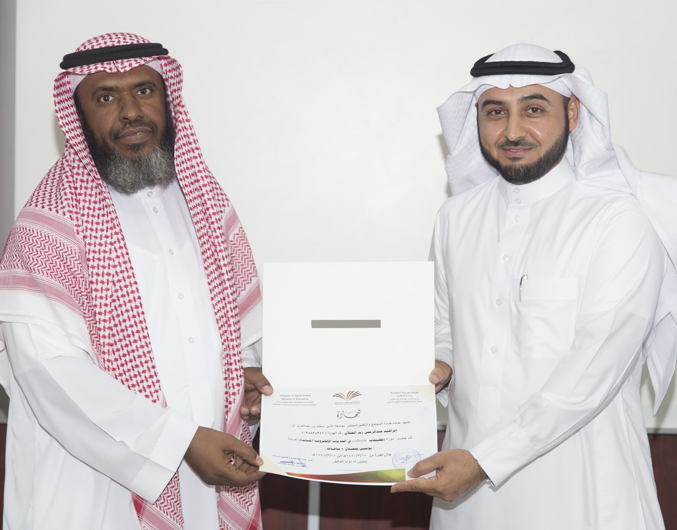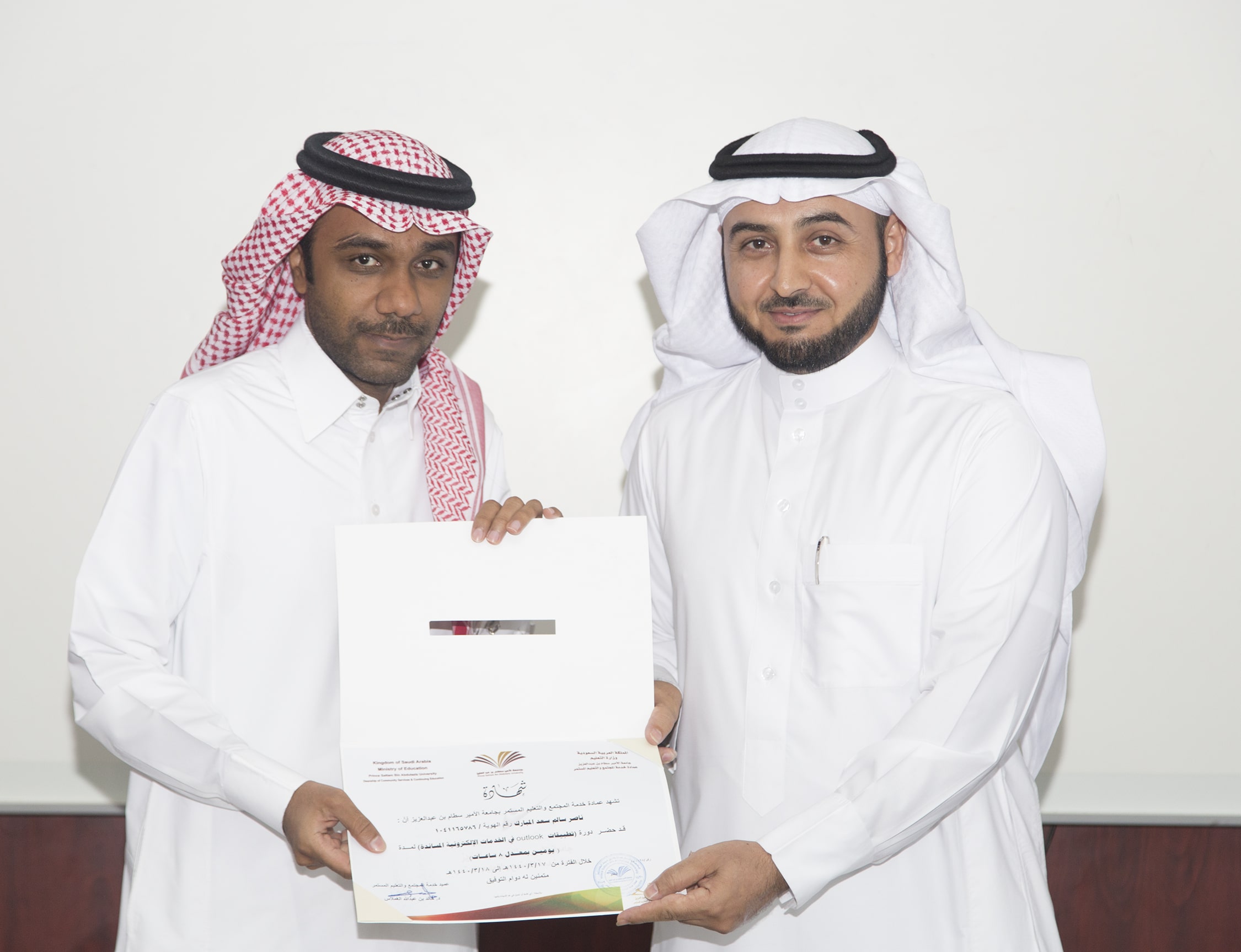 بحضور عميد خدمة المجتمع والتعليم المستمر الدكتور خالد بن عبدالله الغملاس ، اختتم مساء اليوم البرنامج التدريبي : تطبيقات outlook في الخدمات الإلكترونية والذي امتد ليومان وبواقع ٨ ساعات تدريبية تركزت على الجانب العملي في معمل الحاسب الآلي بالعمادة .