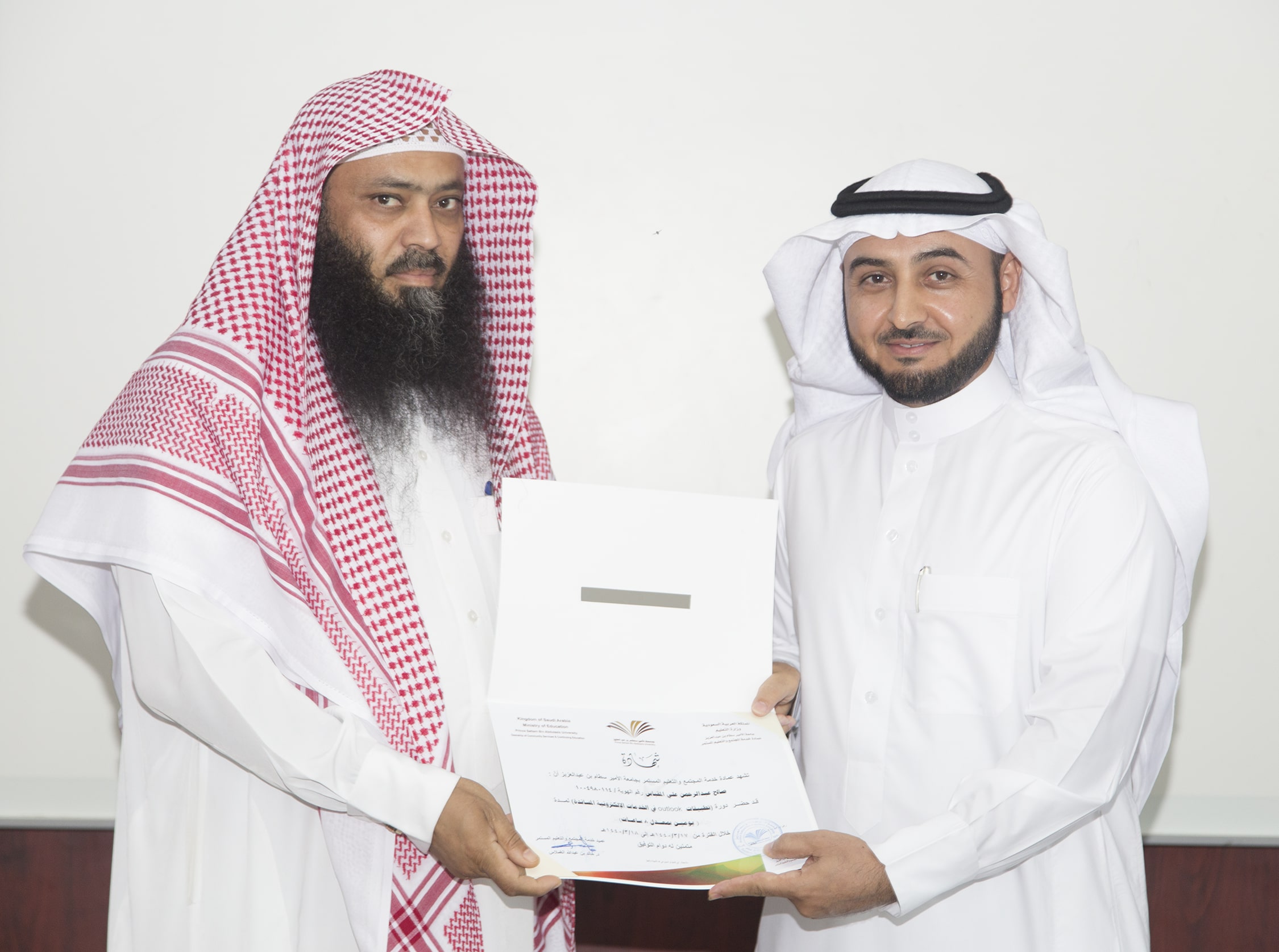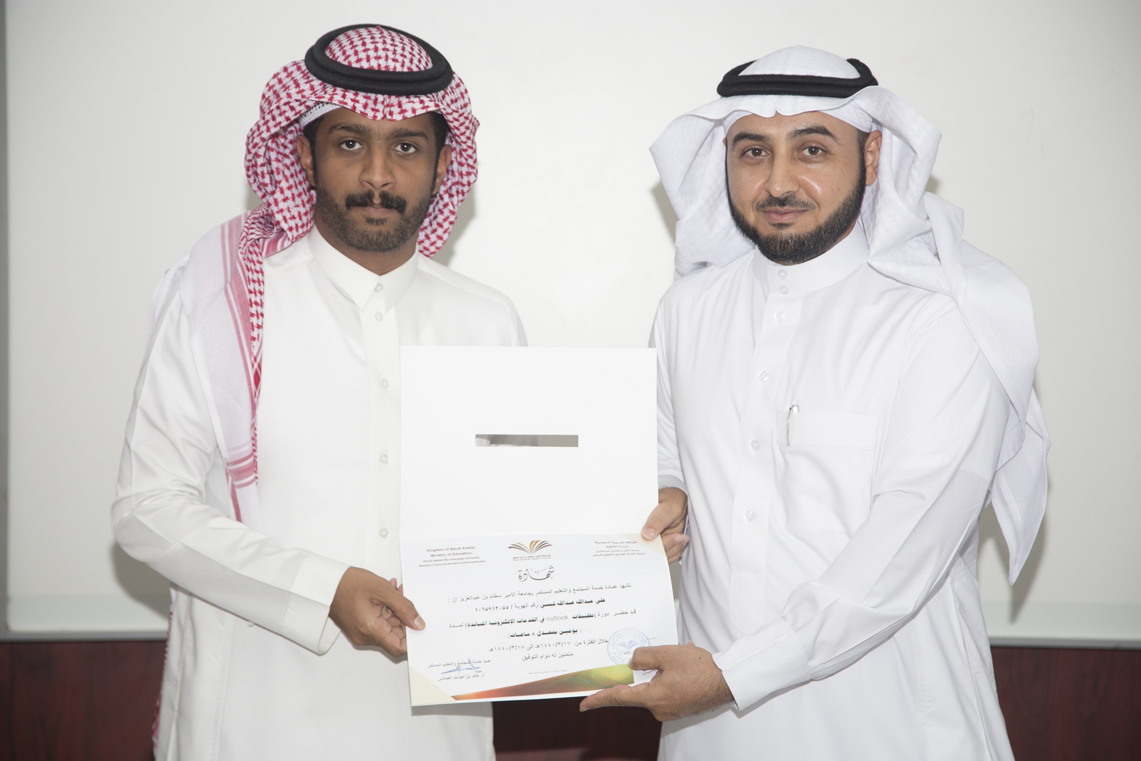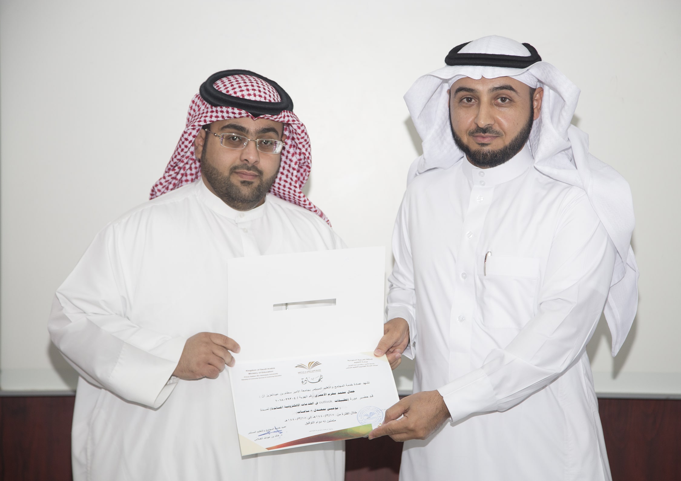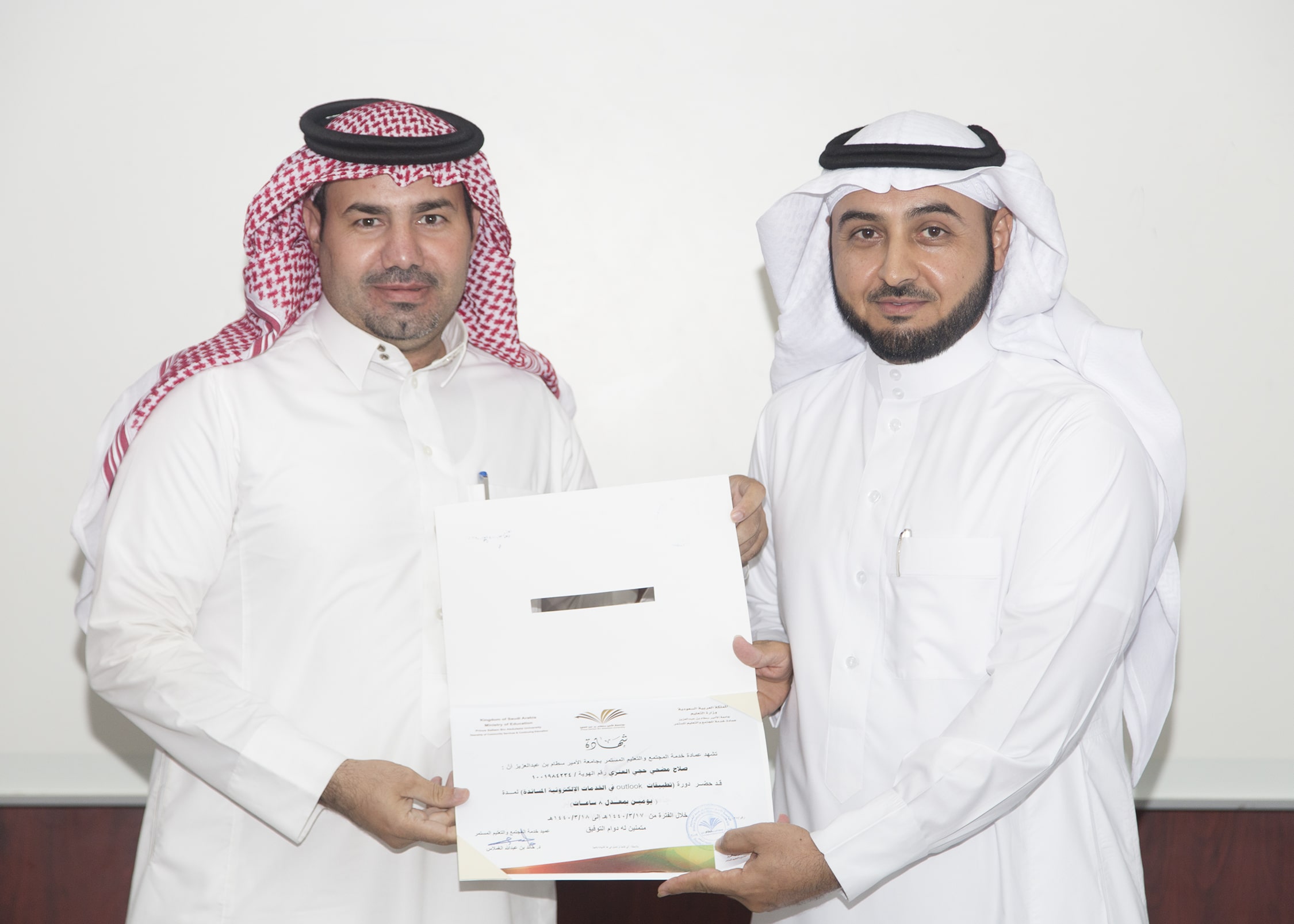 بحضور عميد خدمة المجتمع والتعليم المستمر الدكتور خالد بن عبدالله الغملاس ، اختتم مساء اليوم البرنامج التدريبي : تطبيقات outlook في الخدمات الإلكترونية والذي امتد ليومان وبواقع ٨ ساعات تدريبية تركزت على الجانب العملي في معمل الحاسب الآلي بالعمادة .