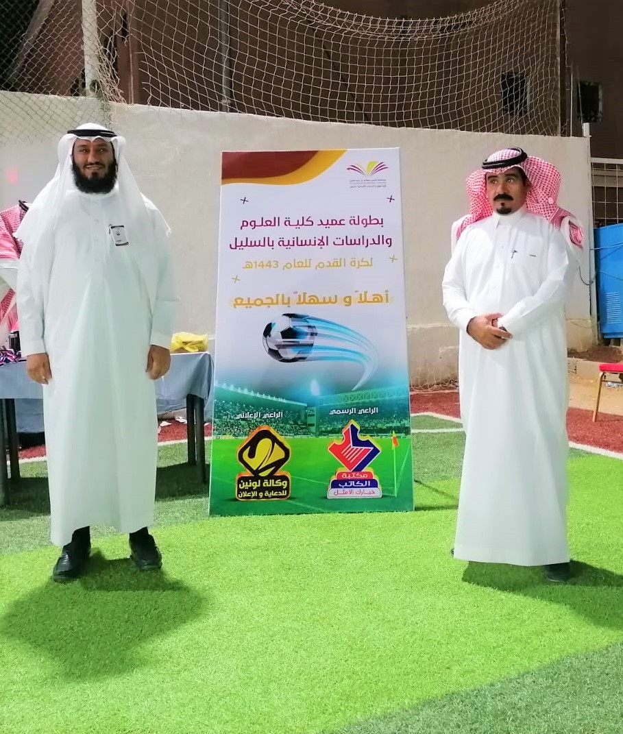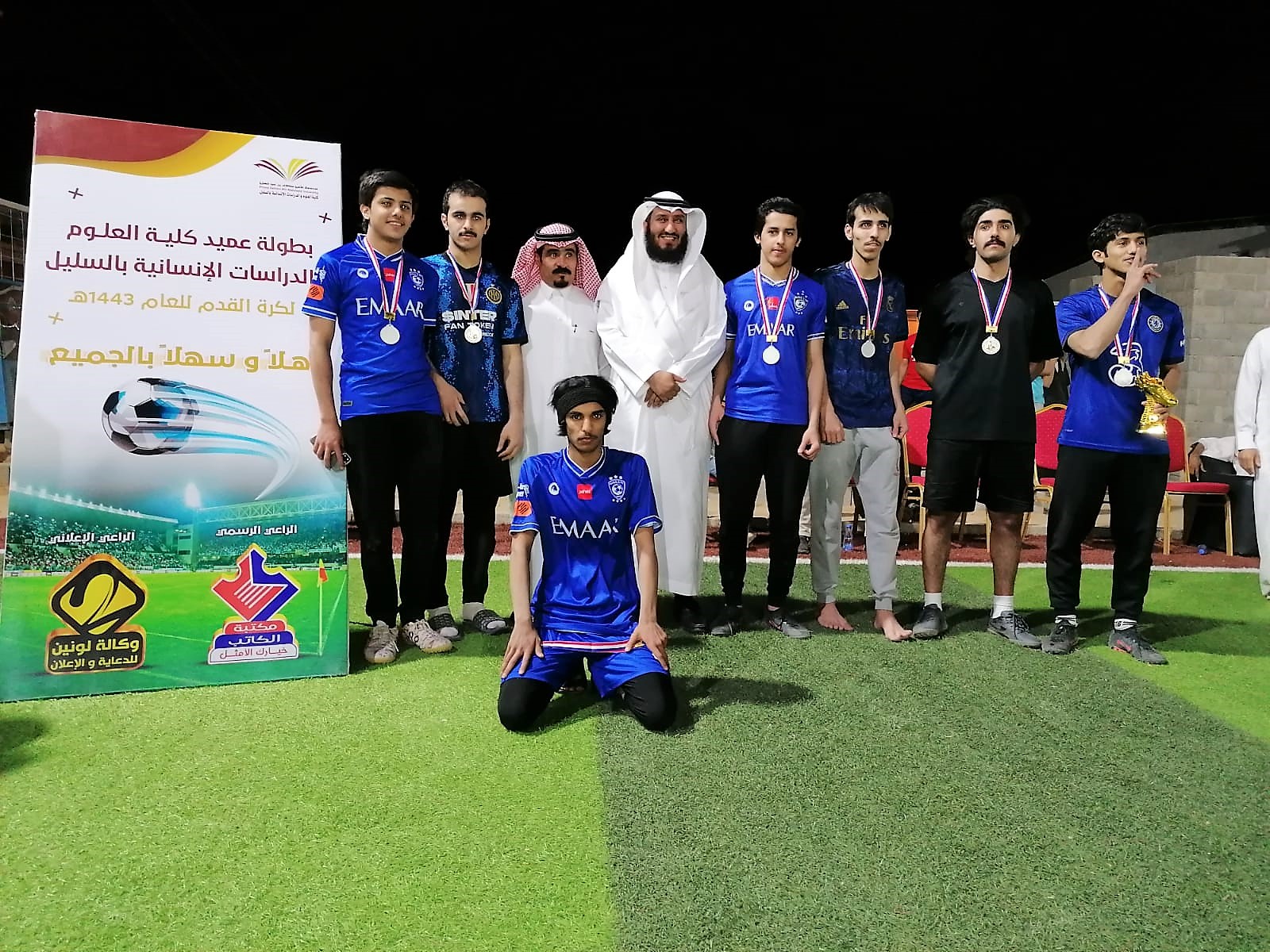 في ليلة سادتها الروح الرياضية والحماسية أقيمت المباراة النهائية لبطولة سعادة عميد كلية العلوم والدراسات الإنسانية بالسليل؛ وقد شرف اللقاء بحضور سعادة العميد الدكتور فيصل السبيعي ورؤساء الأقسام العلمية ولفيف من منسوبي الكلية.