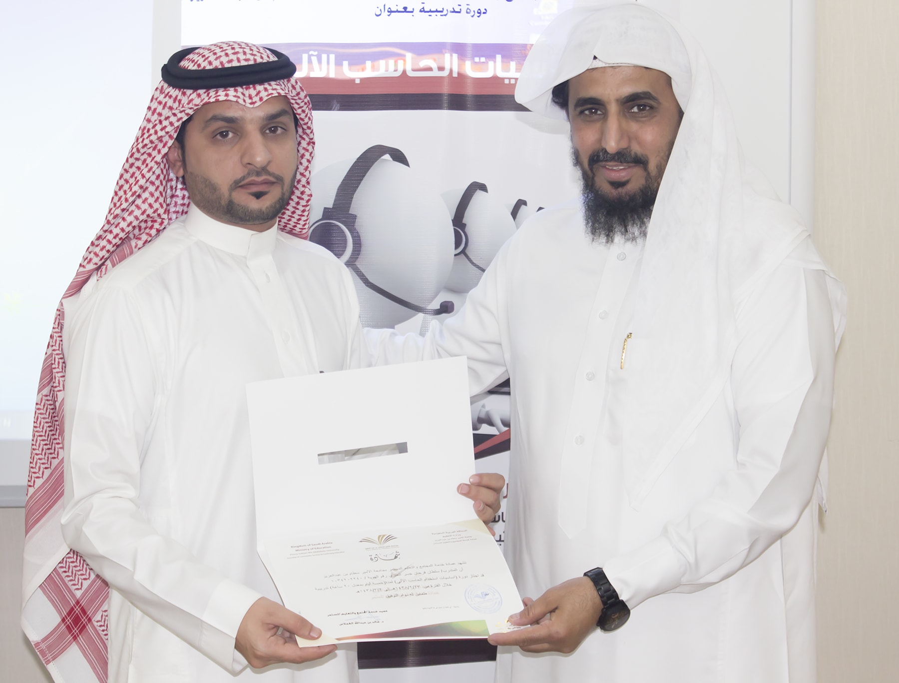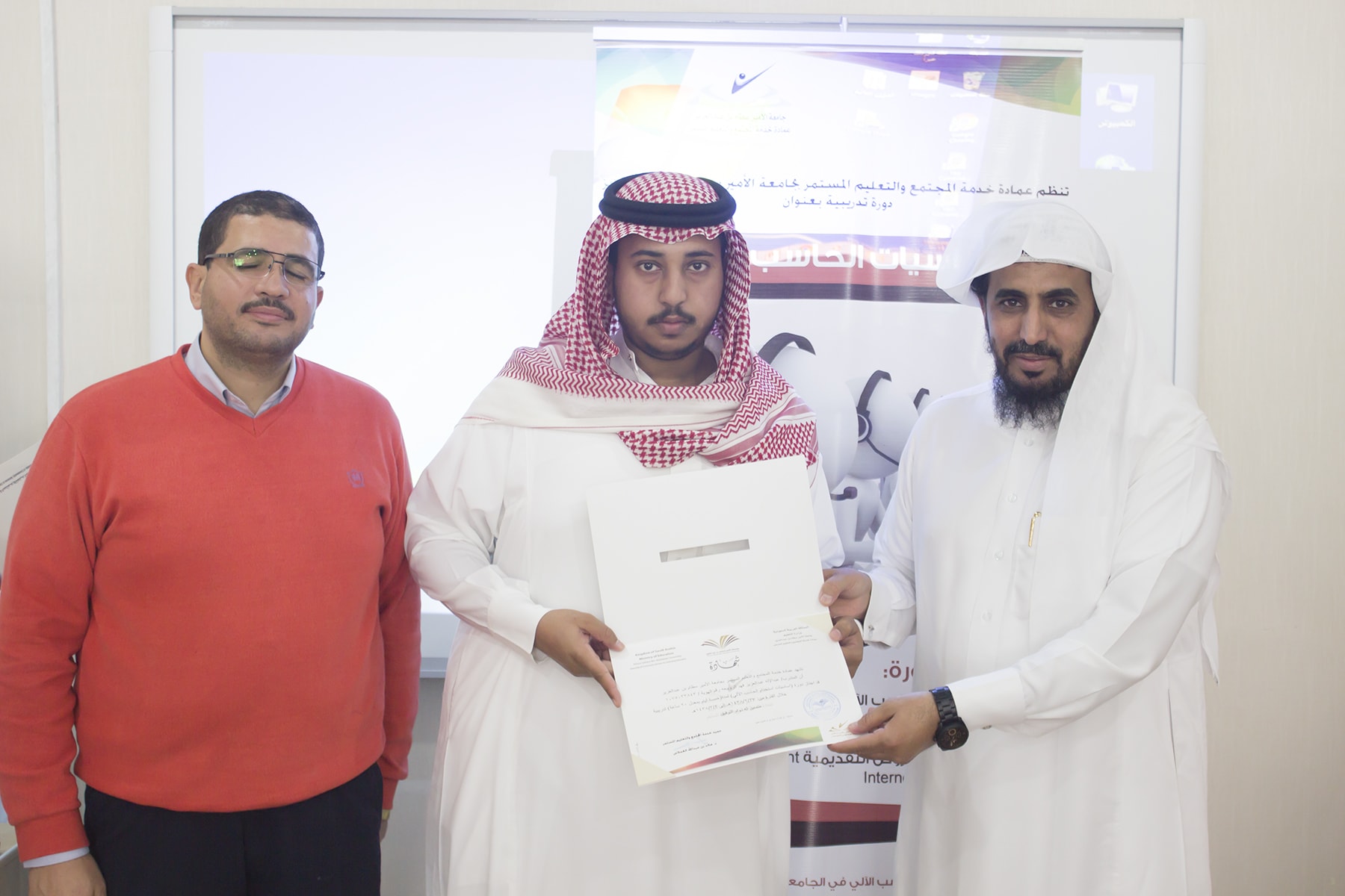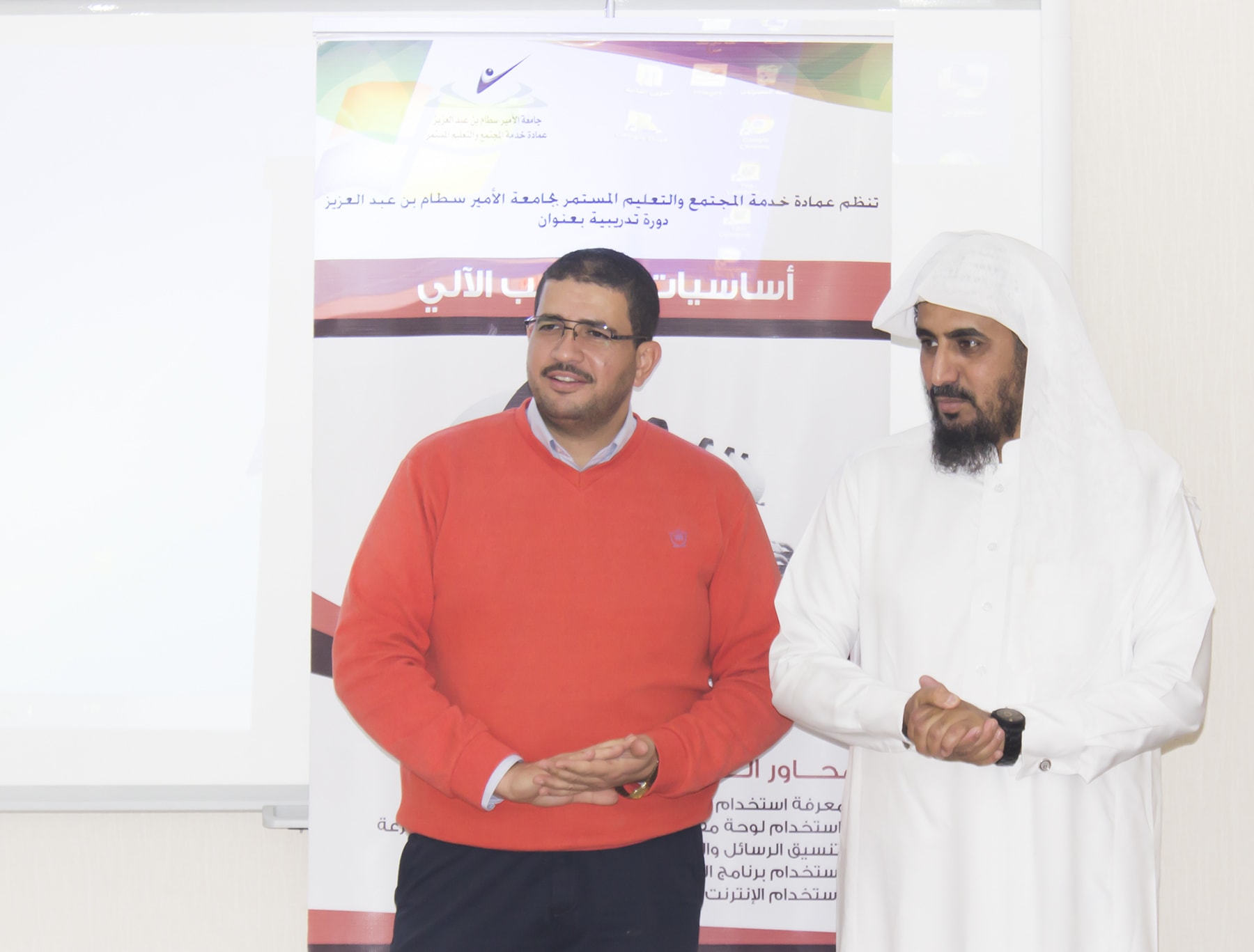 اختتم ظهر الخميس الموافق ٢/٣/١٤٣٨ البرنامج التدريبي : أساسيات الحاسب الآلي ، والذي أقيم في معمل الحاسب الآلي بالعمادة .