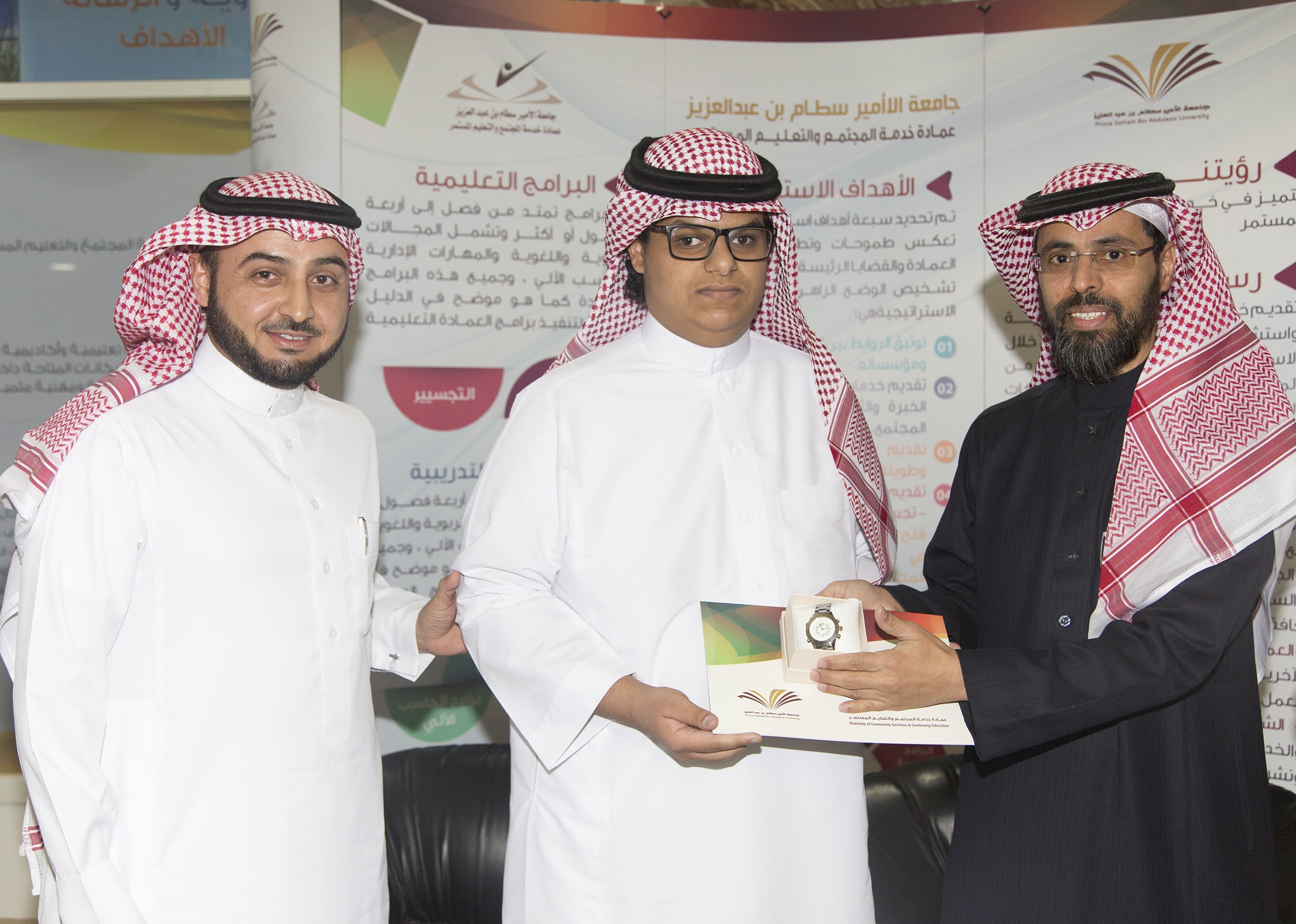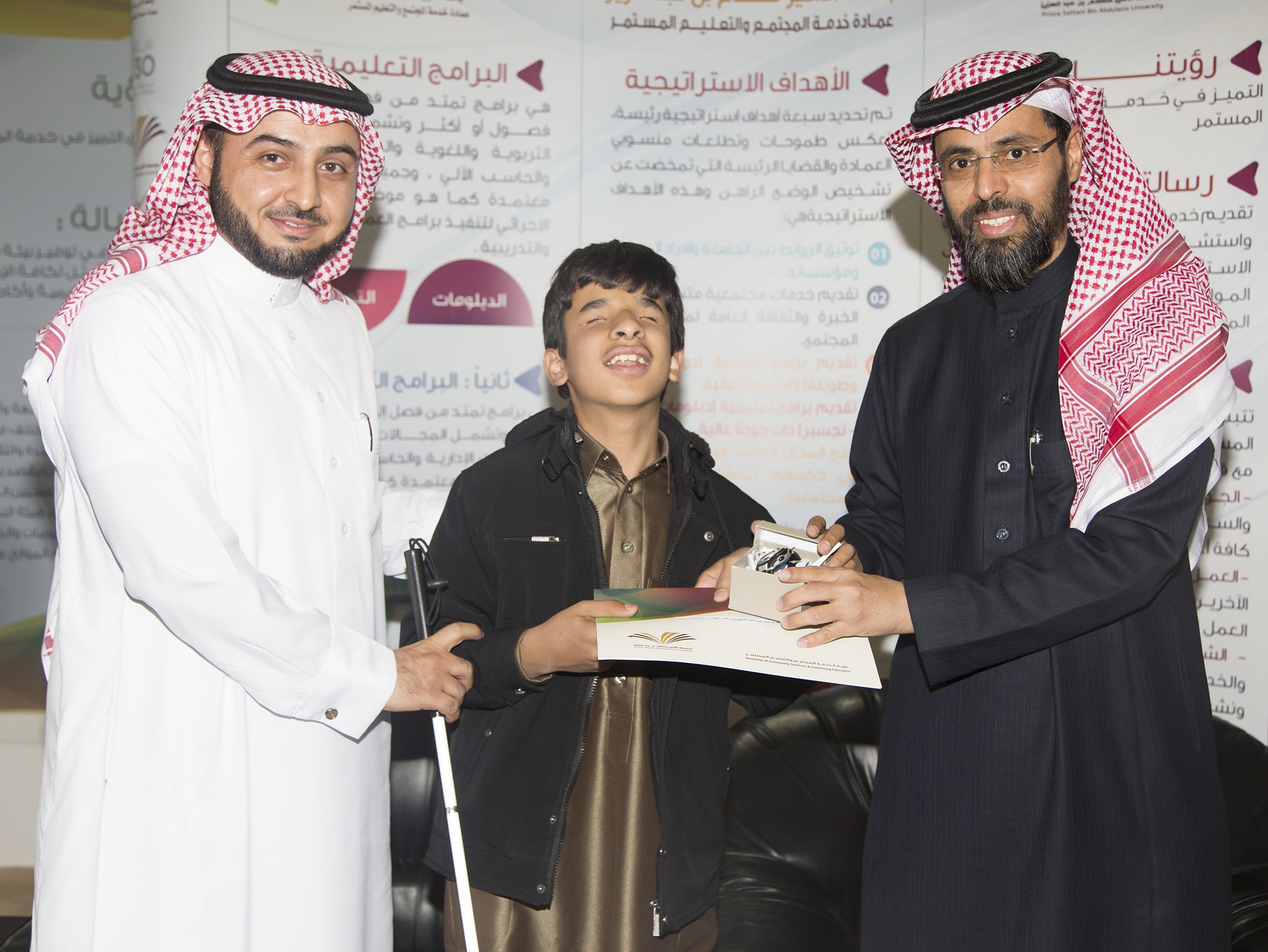 وفي نهاية البرنامج قدمت العمادة للمتدربين شهاداة الدورة وهدايا عبارة عن ساعات بلغة برايل تساعد المكفوفين لمعرفة الوقت ، واقيمت بعد ذلك احتفالية بهذه المناسبة تشارك فيها المتدربين وفريق العمادة وراعي الختام وكيل الجامعة .