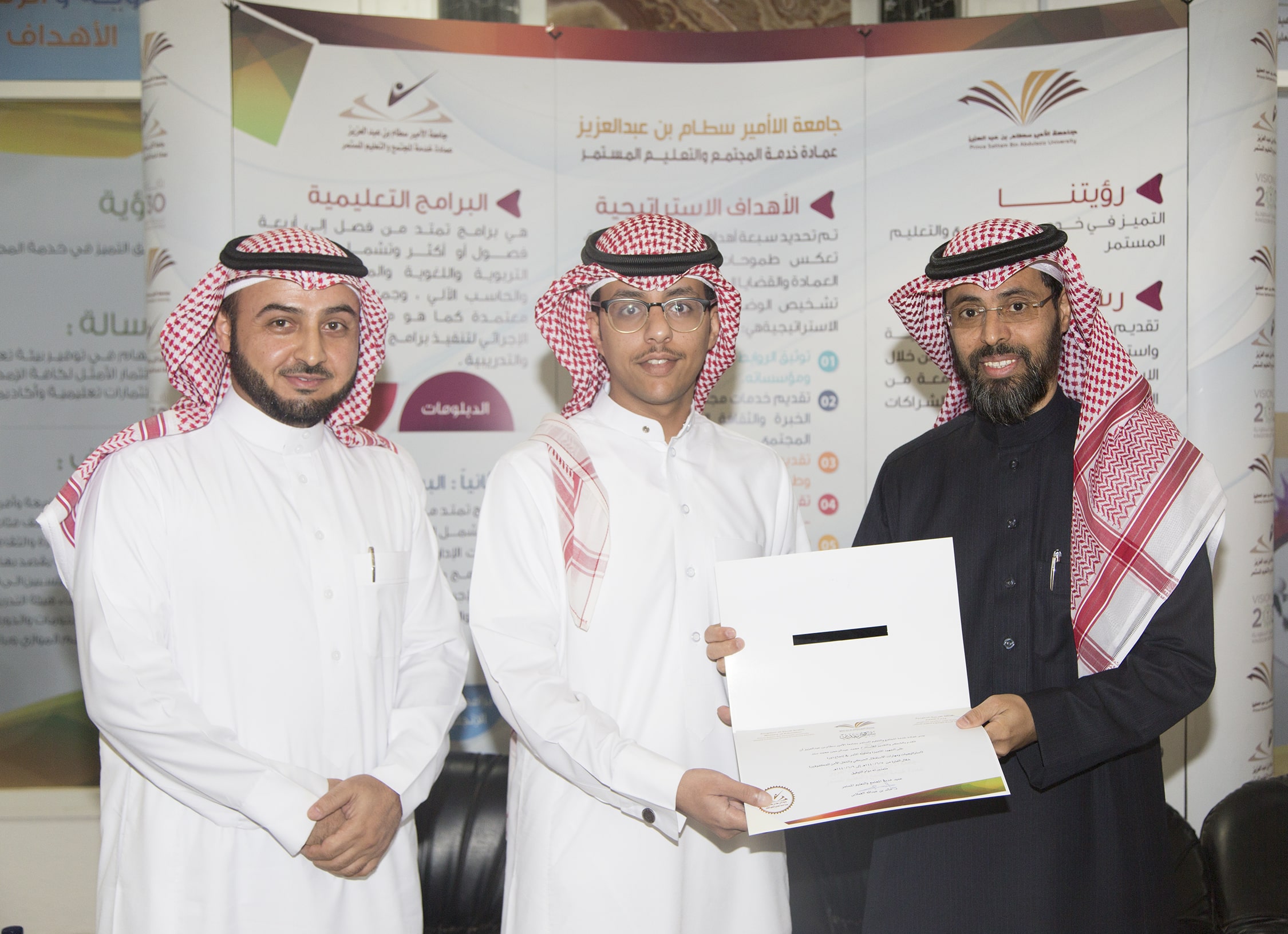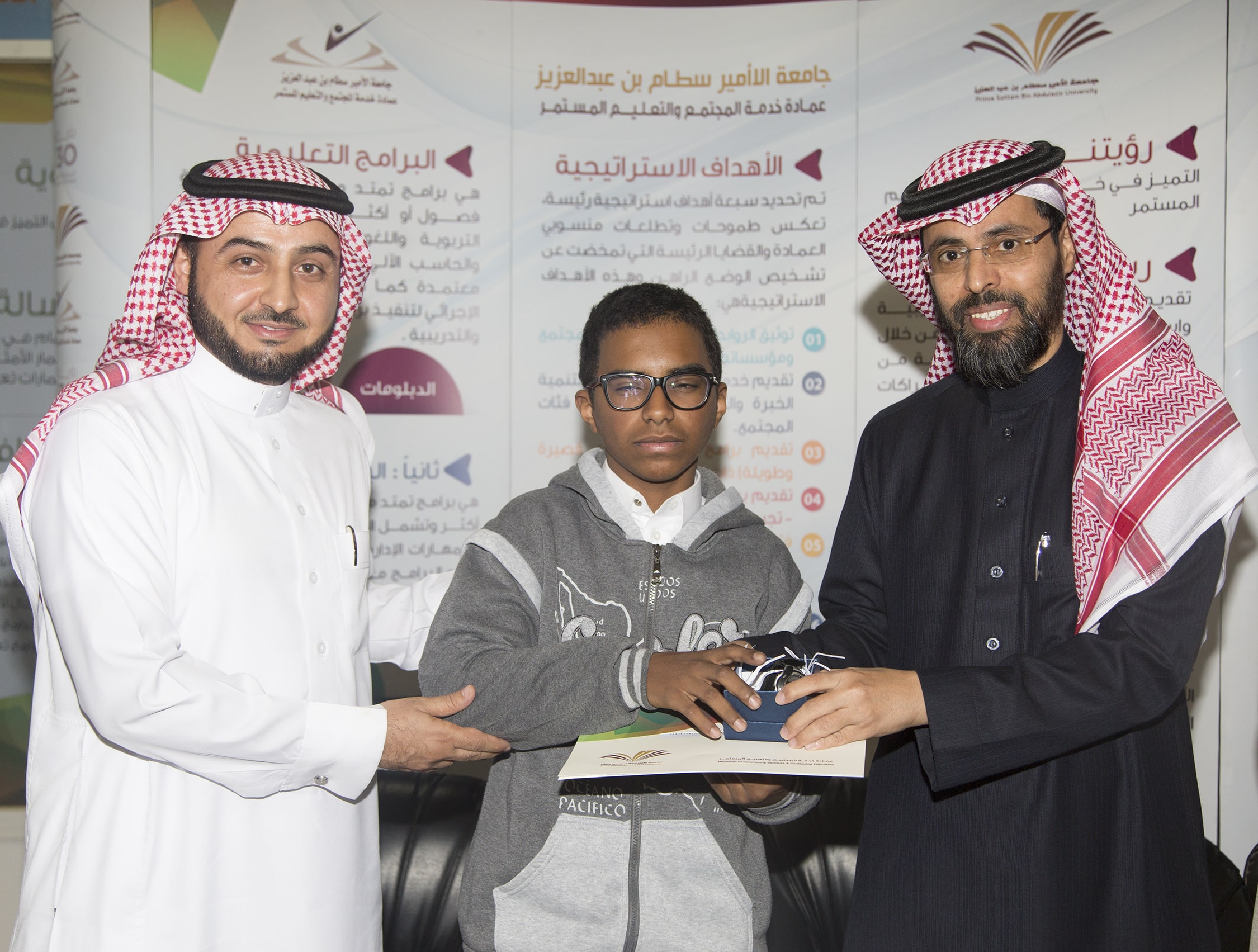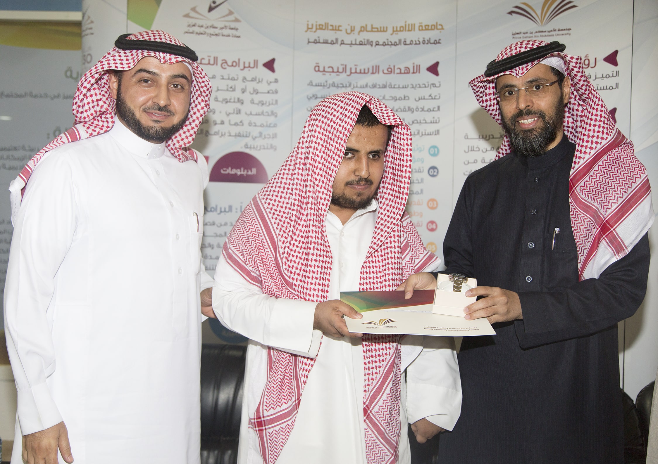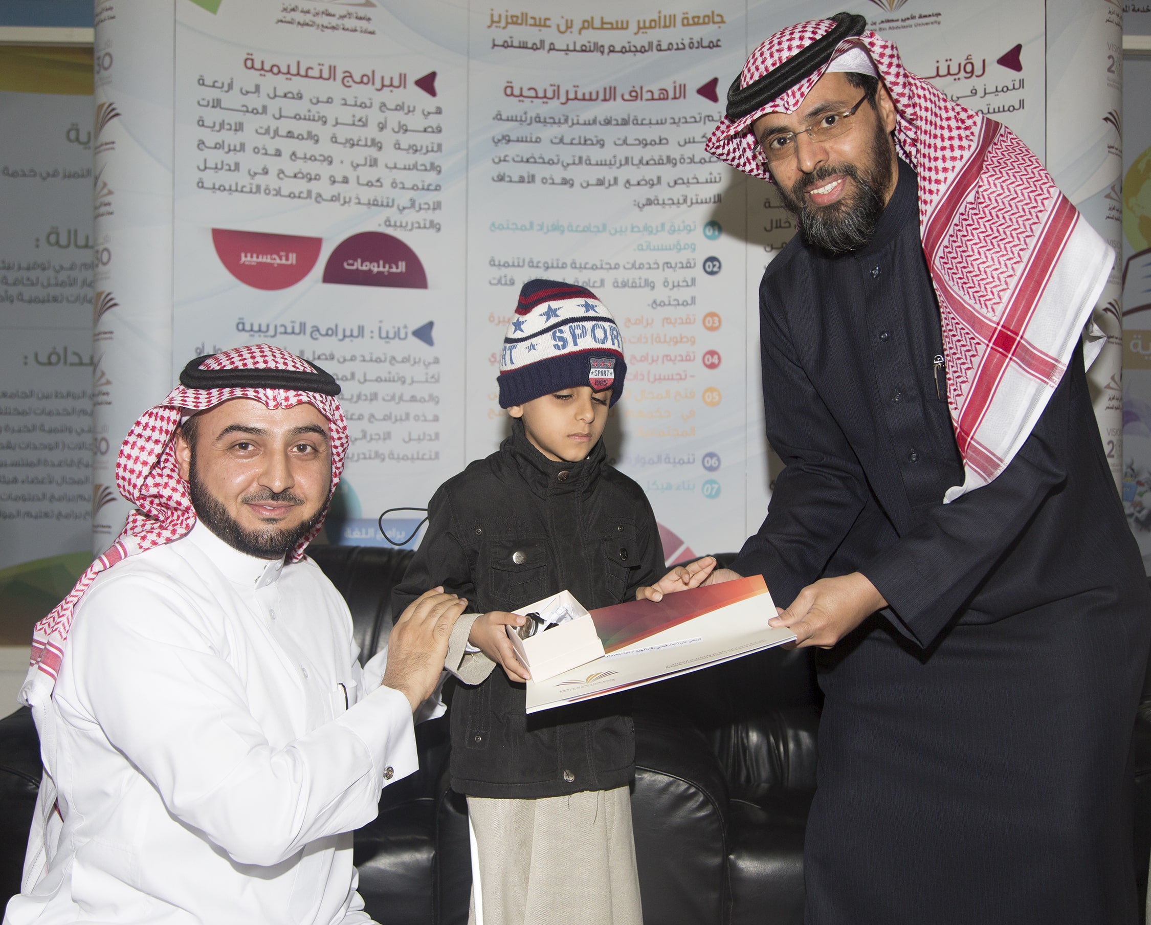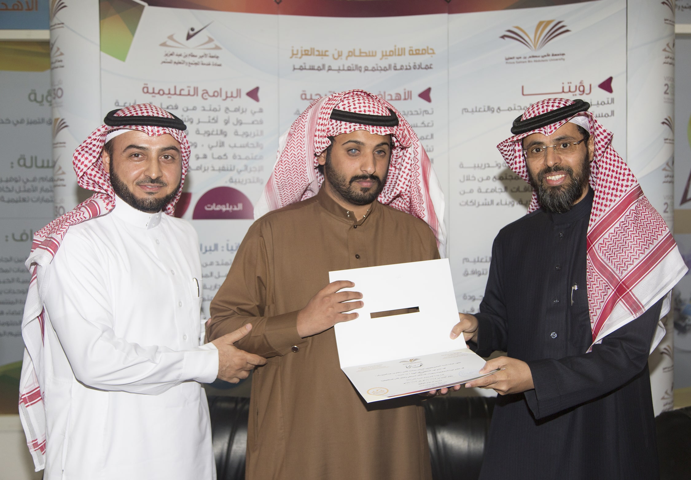 وفي كلمة راعي الحفل الدكتور عبدالله الجمعة اوضح بأن الجامعة ممثلة في عمادة خدمة المجتمع والتعليم المستمر حريصة كل الحرص على تقديم الجودة والنوعية في البرامج المقدمة وأن الهدف الرئيسي هي المهارة المكتسبة من البرنامج ، كما وجه الدكتور الجمعة العمادة على سرعة تقديم دورات في الحاسب الآلي و اللغة الإنجليزية للمكفوفين وإعداد قاعدة بيانات لكافة المتدربين الراغبين في الالتحاق بالدورات التي ستعد مستقبلاً .