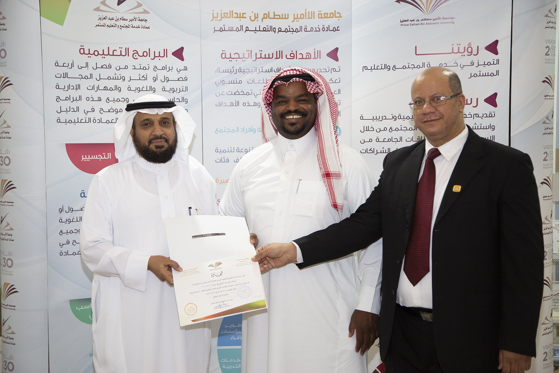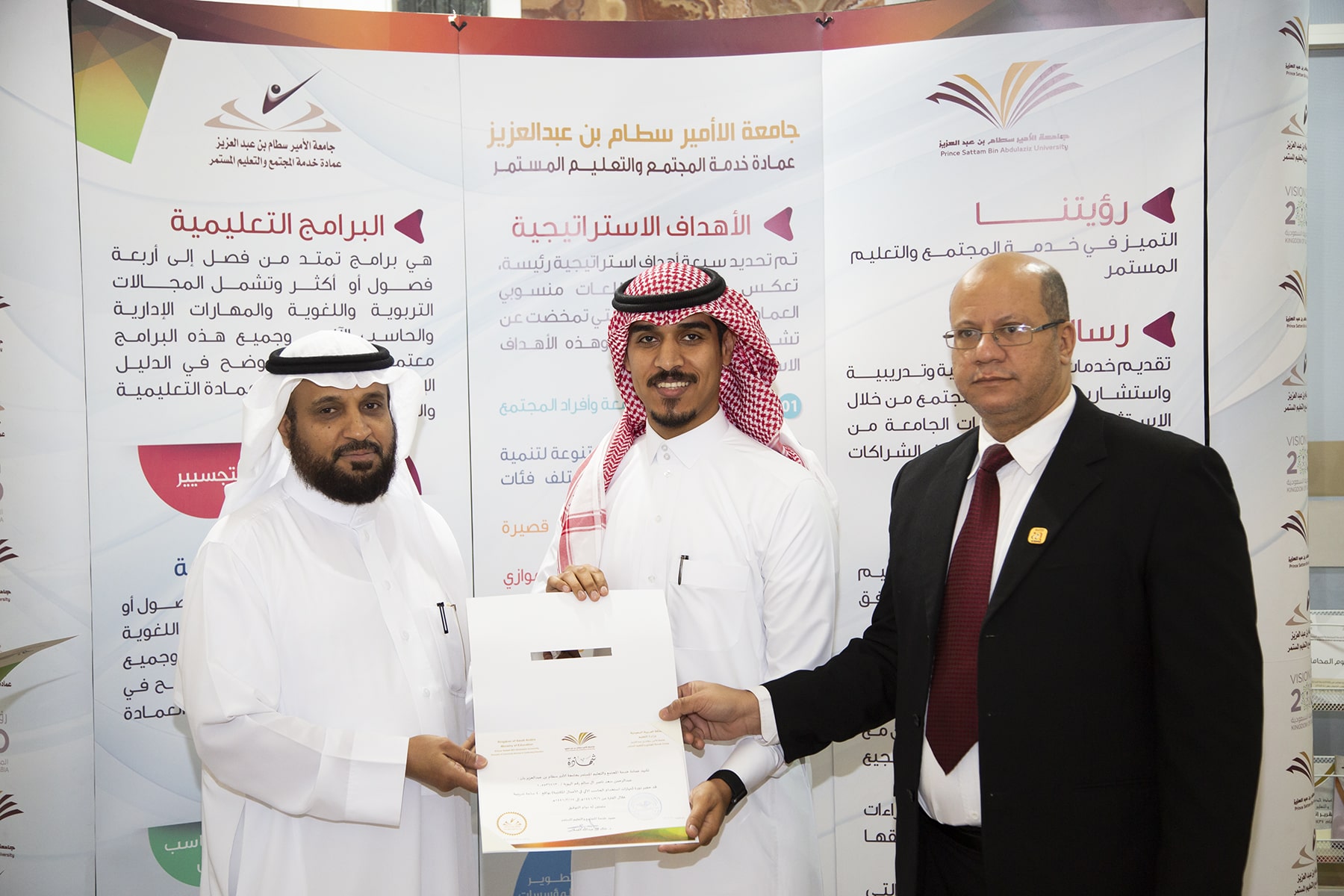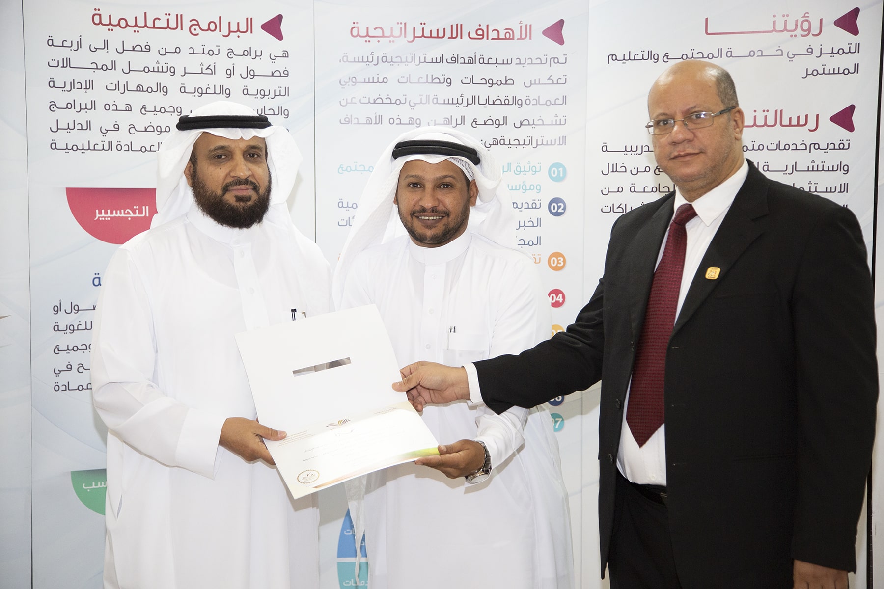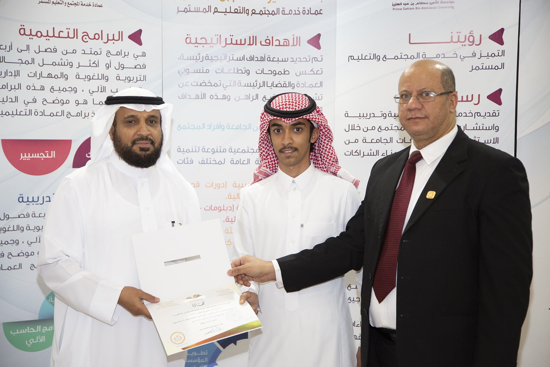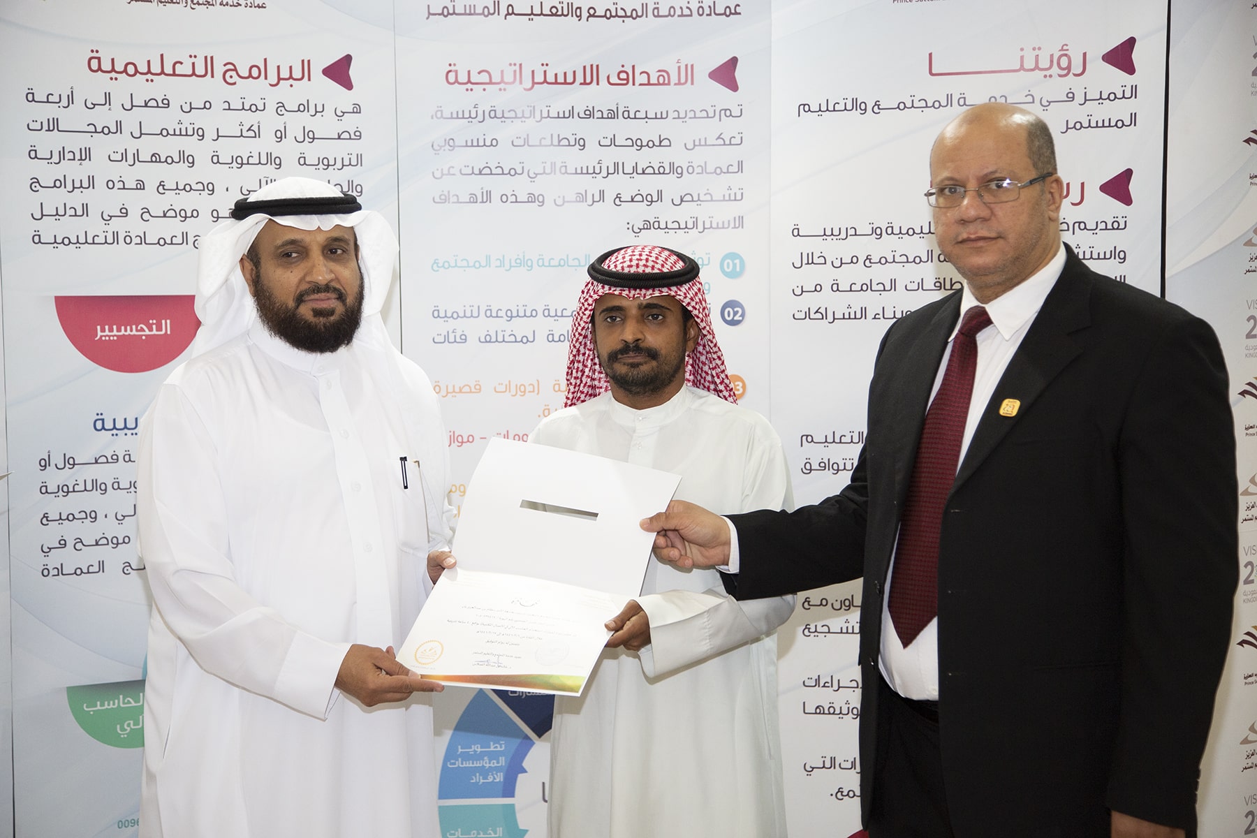 وفي ختام الدورة تسلم المتدربون الشهادات وسلمها نيابة عن عميد العمادة الدكتور خالد الغملاس مدير إدارة العمادة الأستاذ محمد الشميمري .