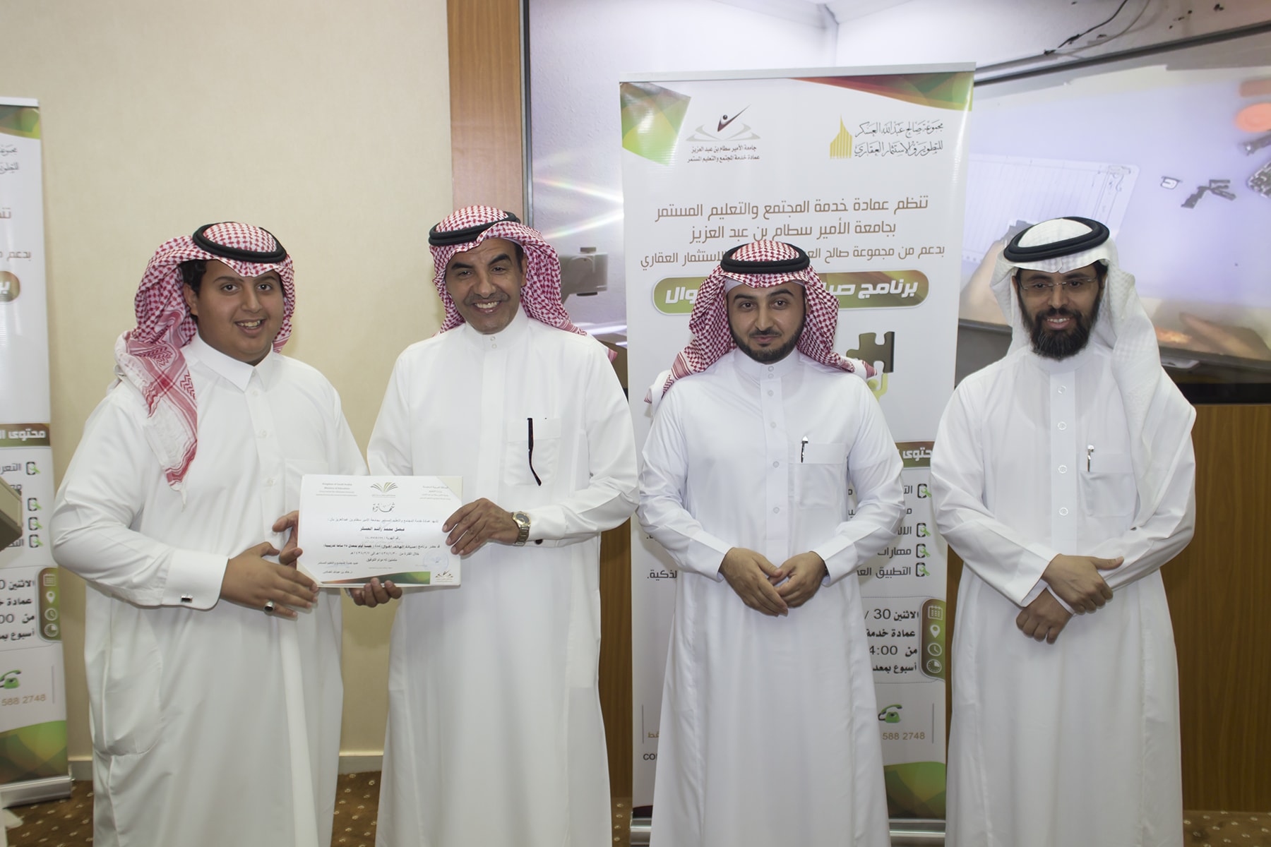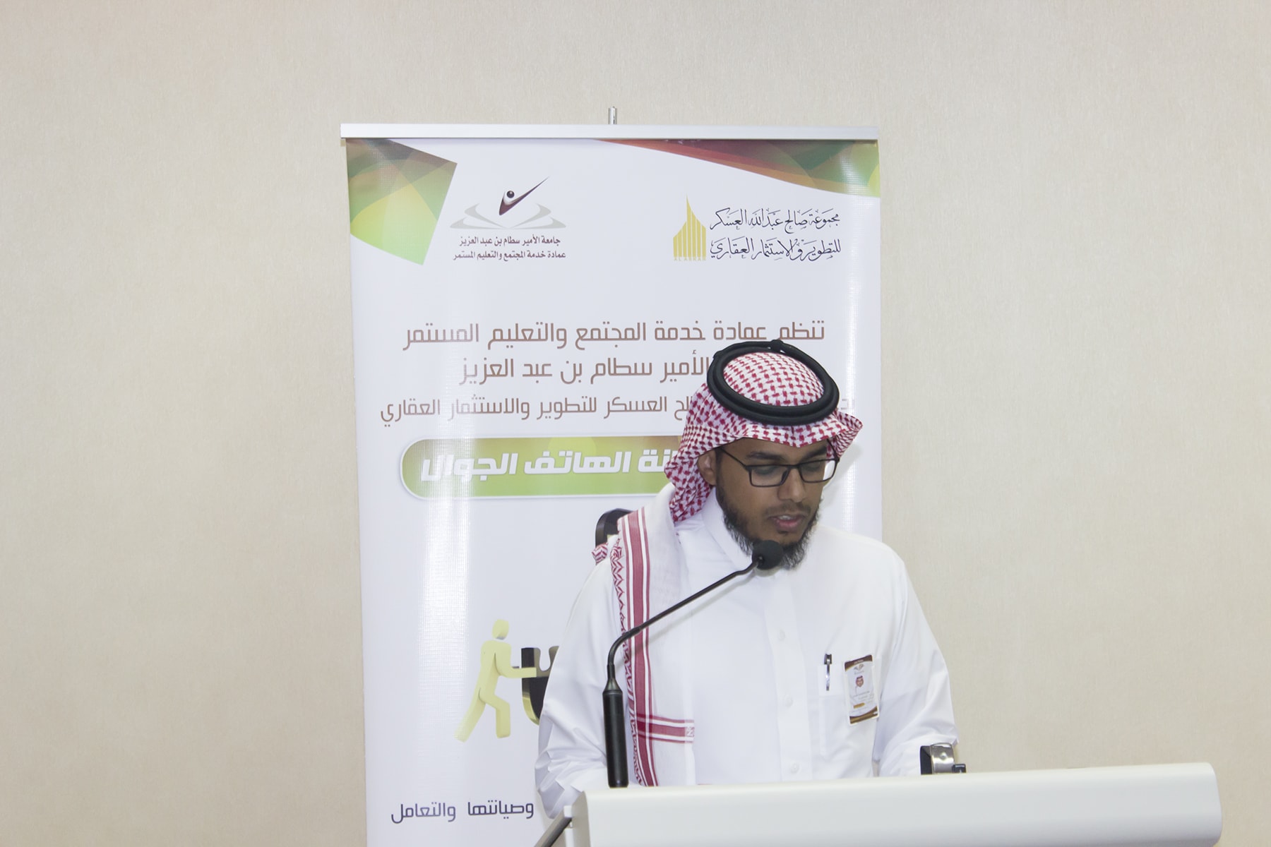 أنهت عمادة خدمة المجتمع و التعليم المستمر بجامعة الأمير سطام بن عبدالعزيز الدورة التدريبية " صيانة الهاتف الجوال " والتي تأتي بتعاون مشترك مابين الجامعة و مجموعة صالح العسكر العقارية , وتنيفذاً للقرار السامي الكريم " بتوطين سوق الجوال " .