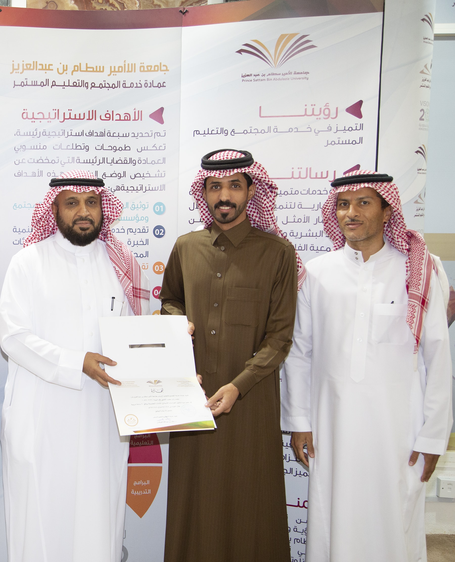 وفي ختام البرنامج تسلم المتدربون شهادات الحضور ، وسلمها مدير إدارة العمادة الأستاذ / محمد بن صالح الشميمري ، نيابة عن عميد العمادة الدكتور خالد بن عبدالله الغملاس .