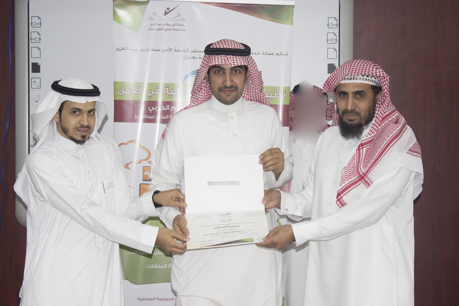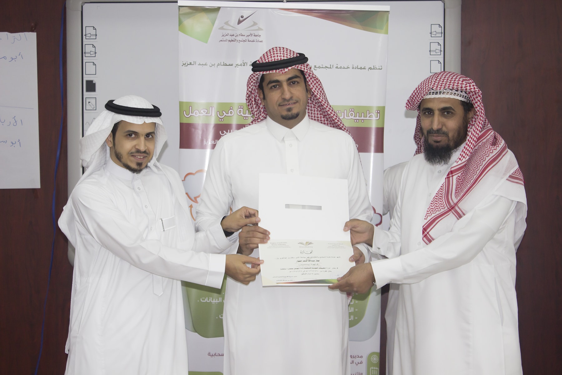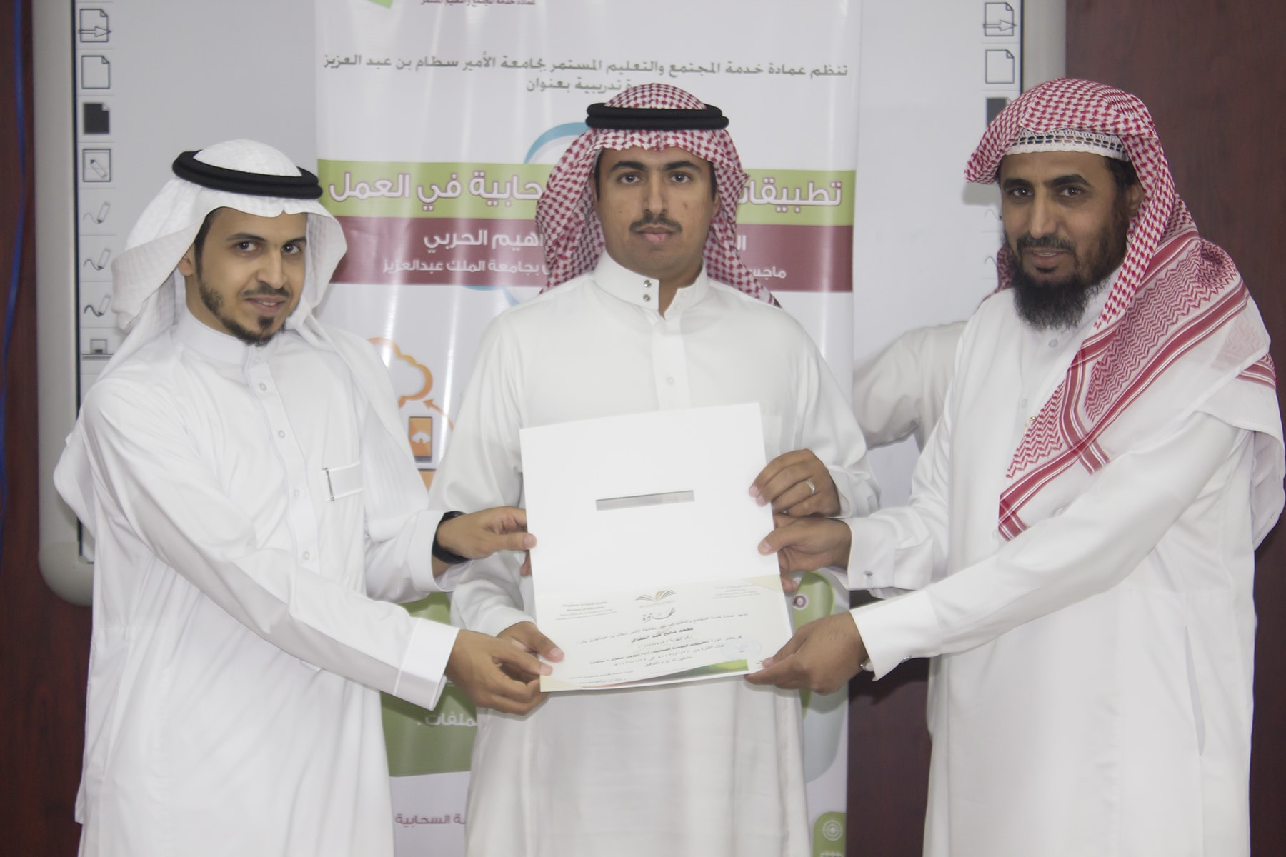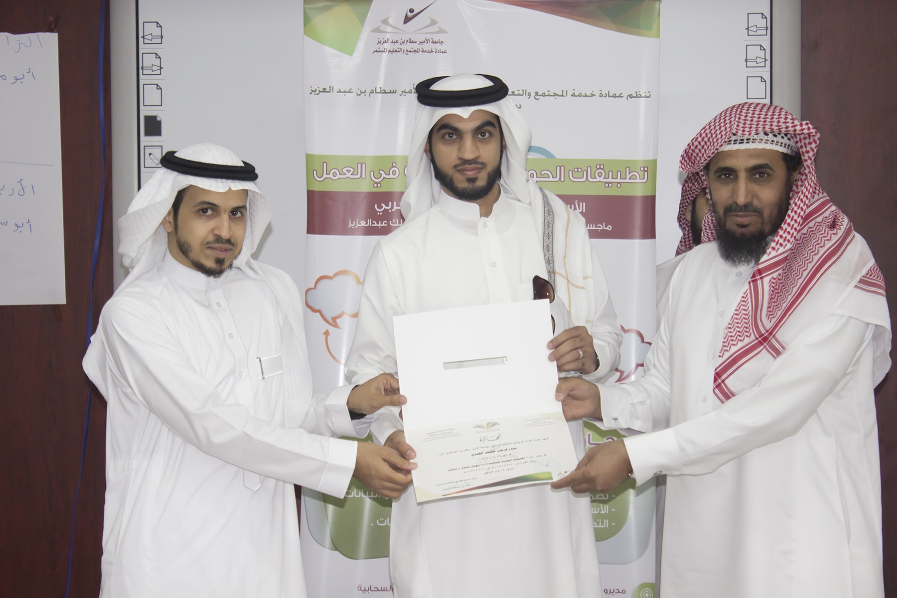 وفي ختام البرنامج قدم وكيل عمادة خدمة المجتمع و التعليم المستمر الدكتور عبدالله السبيعي شهادات الحضور على المتدربين .