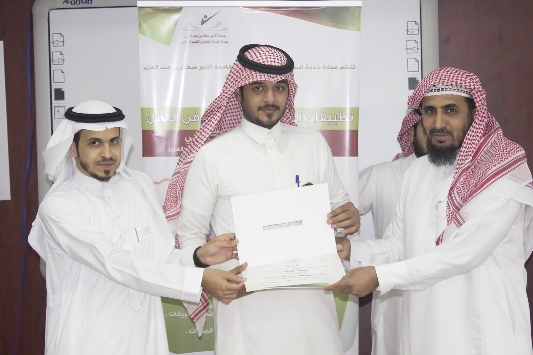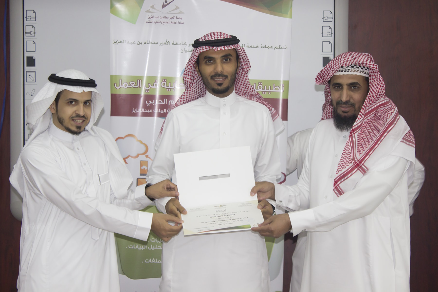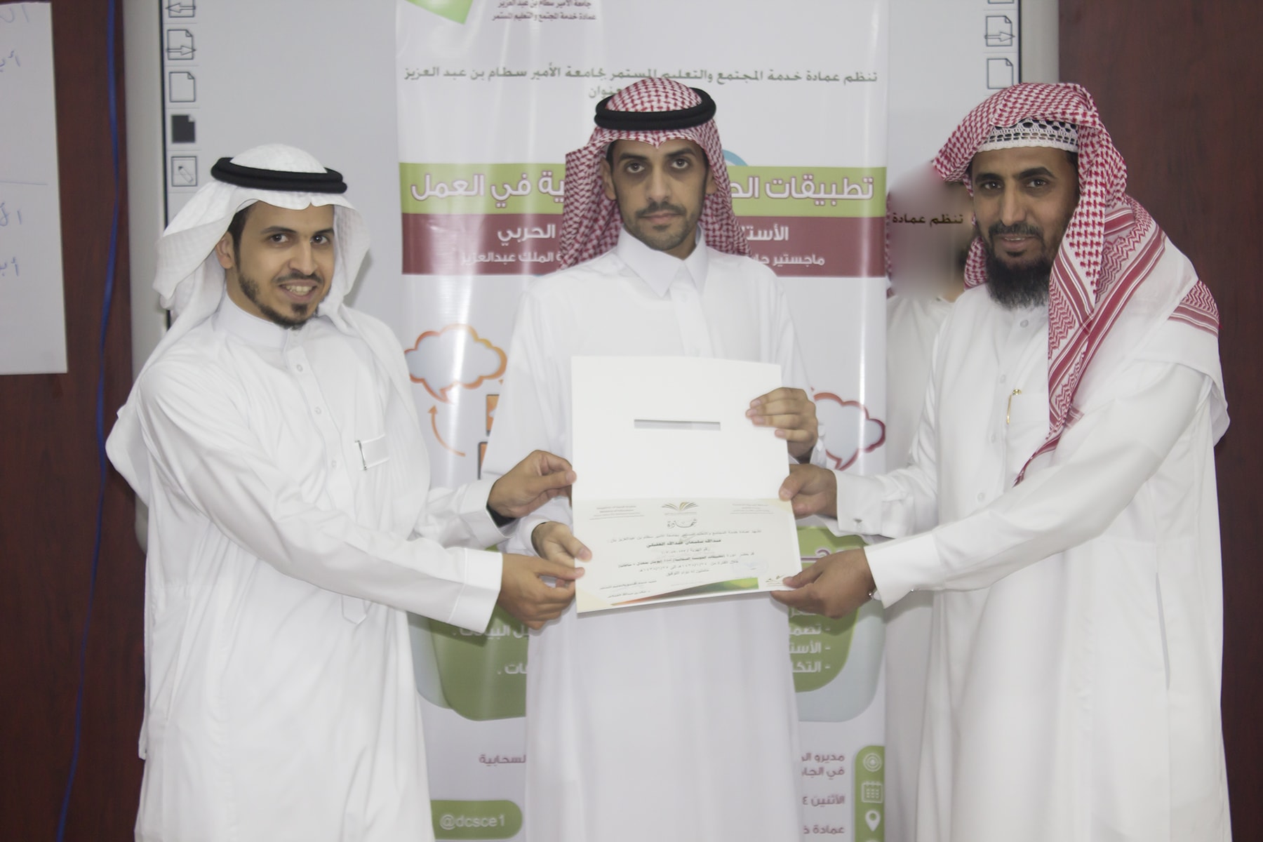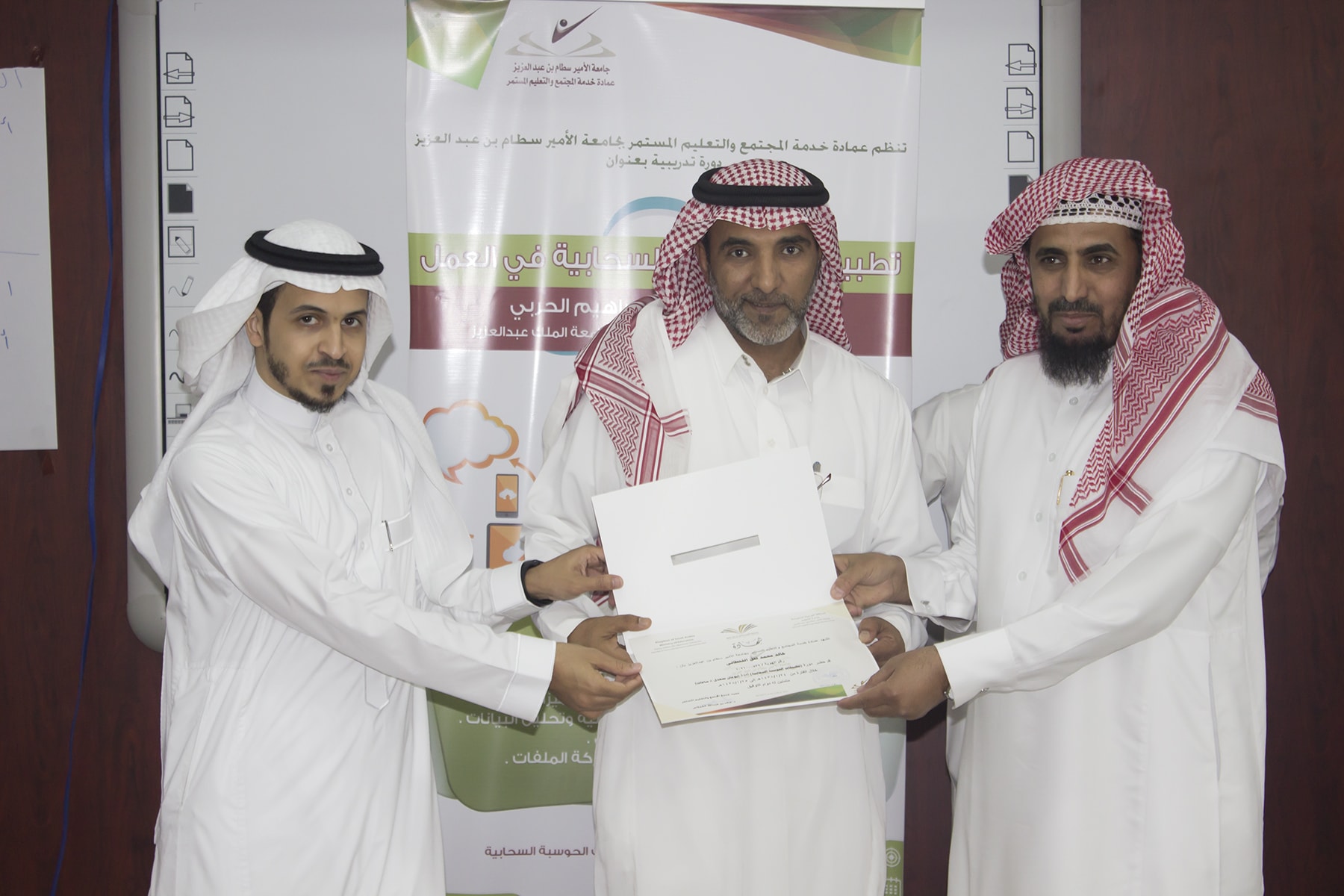 وفي ختام البرنامج قدم وكيل عمادة خدمة المجتمع و التعليم المستمر الدكتور عبدالله السبيعي شهادات الحضور على المتدربين .