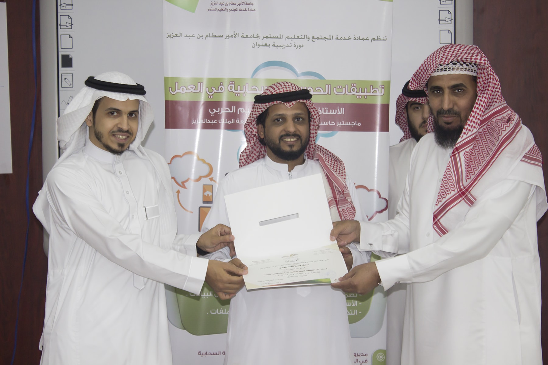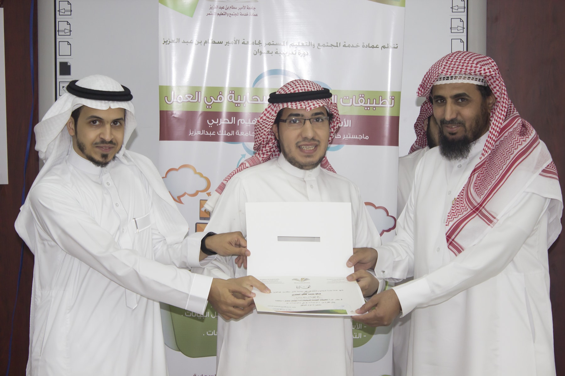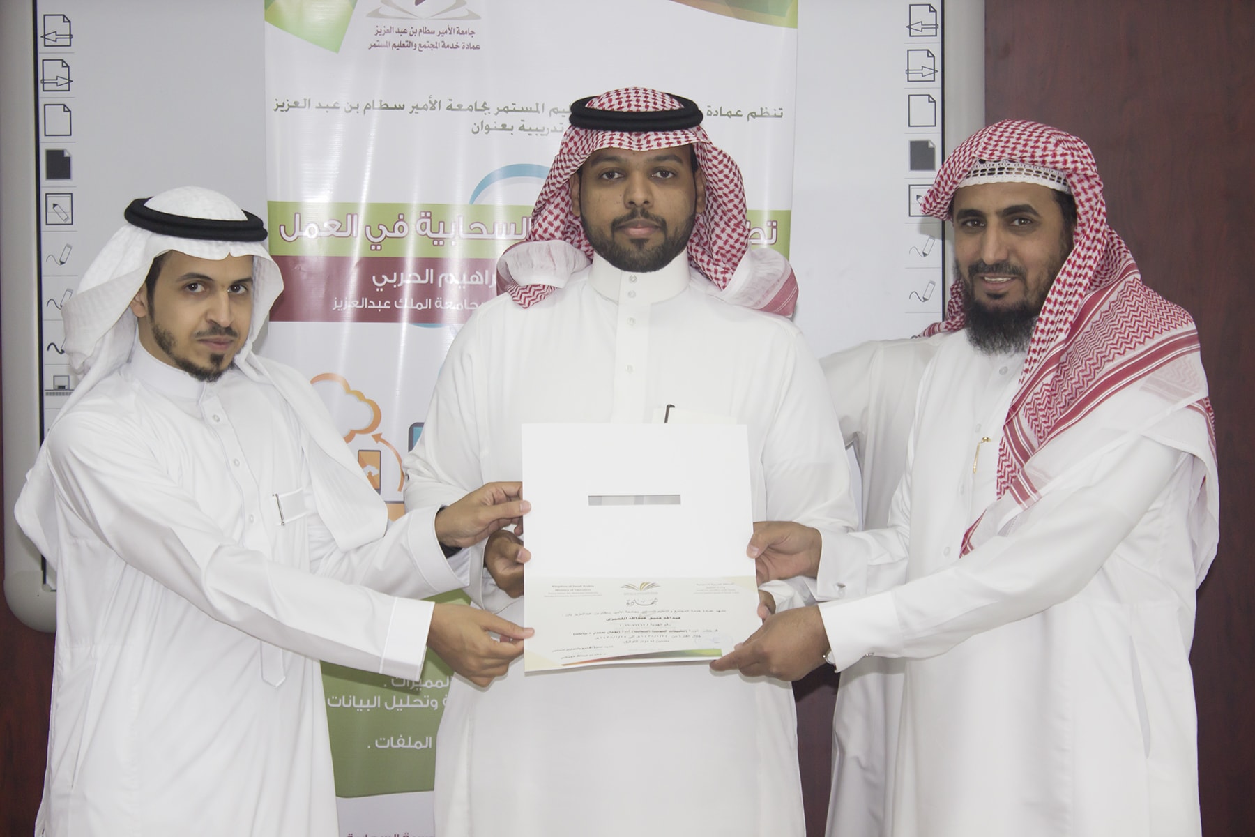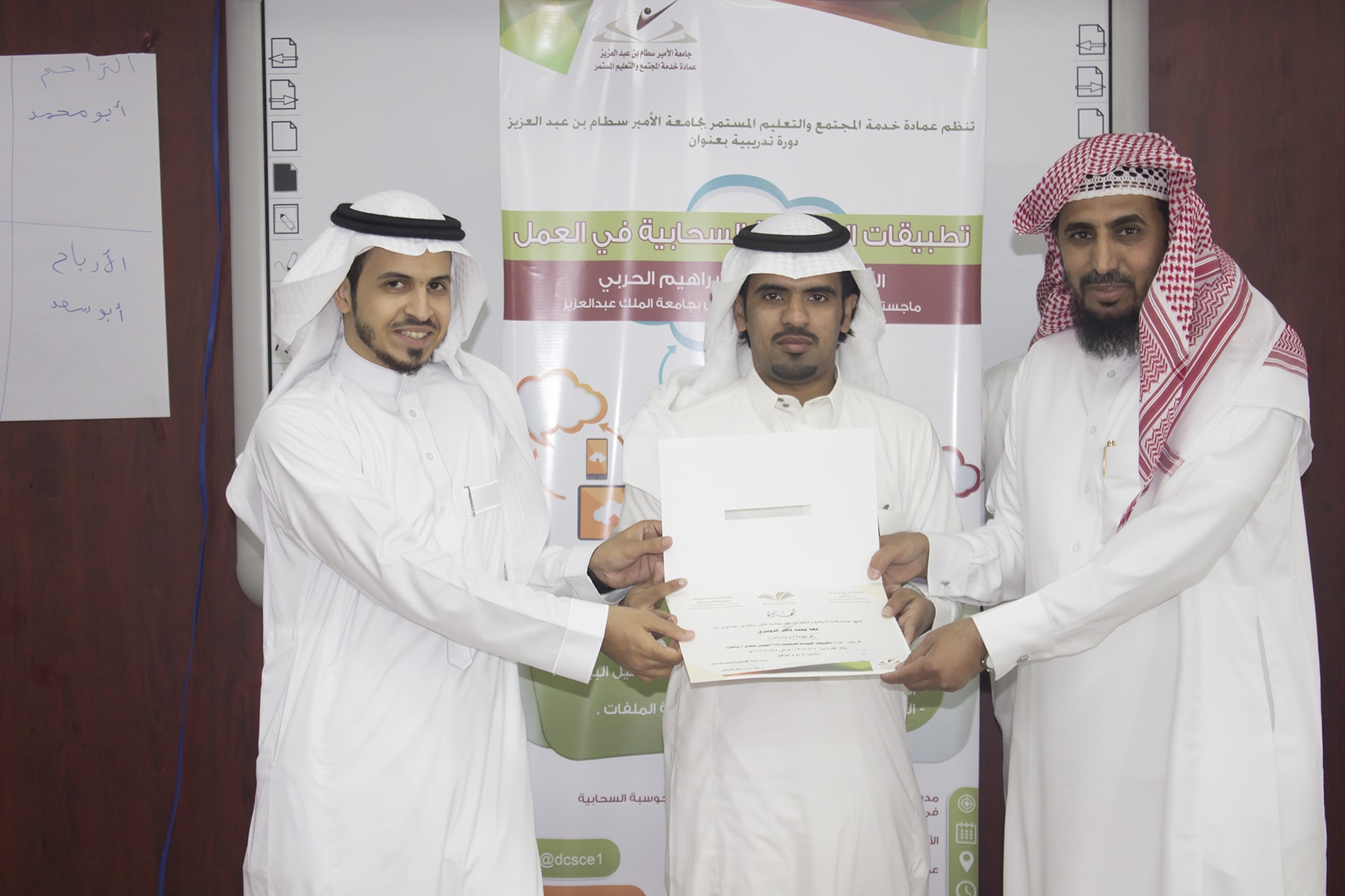 اختتمت ظهر الأربعاء 25/1/1438 هـ دورة تطبيقات الحوسبة السحابية في العمل والتي أقيمت في قاعة التمييز بعمادة خدمة المجتمع و التعليم المستمر بالجامعة .