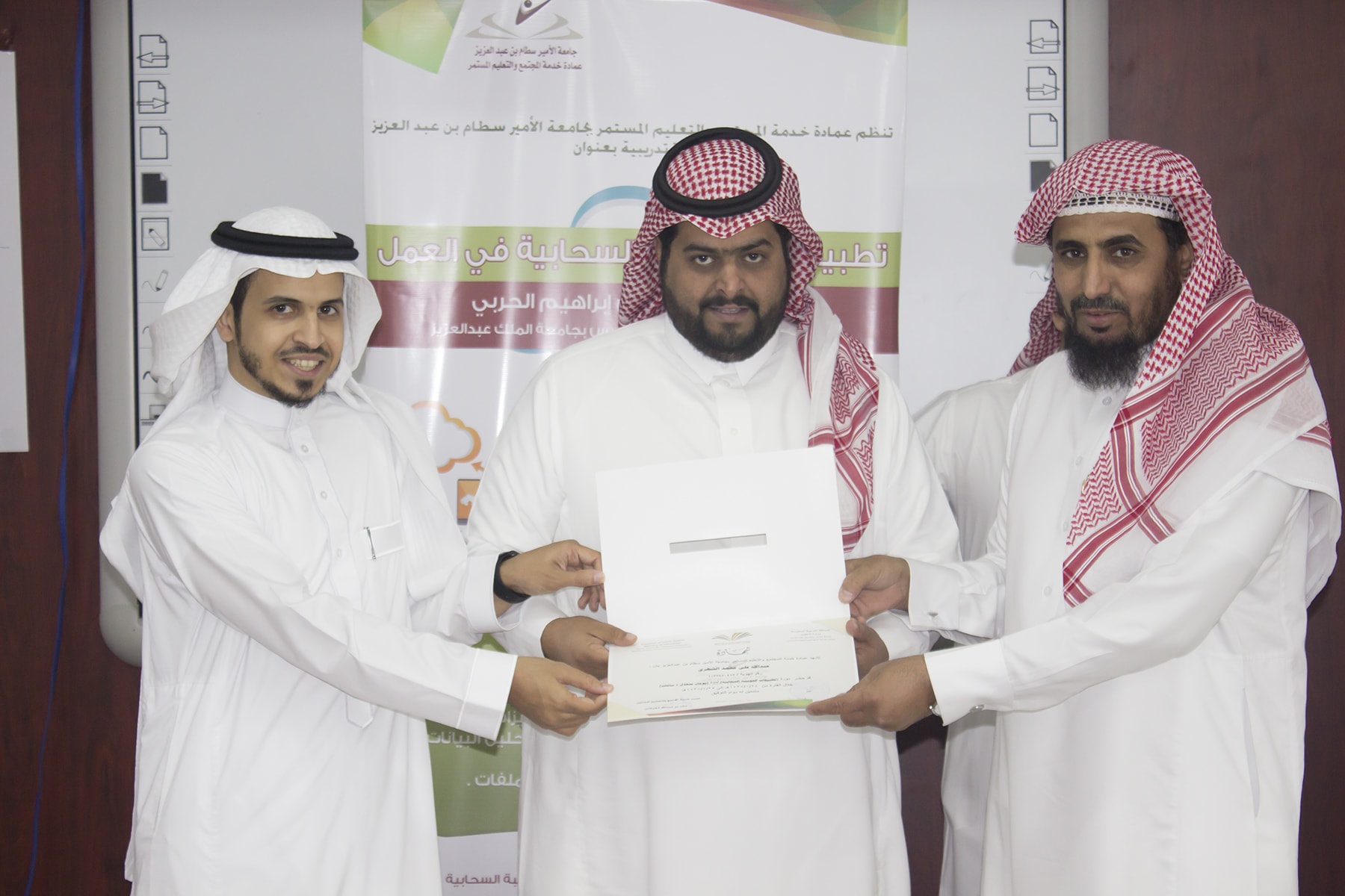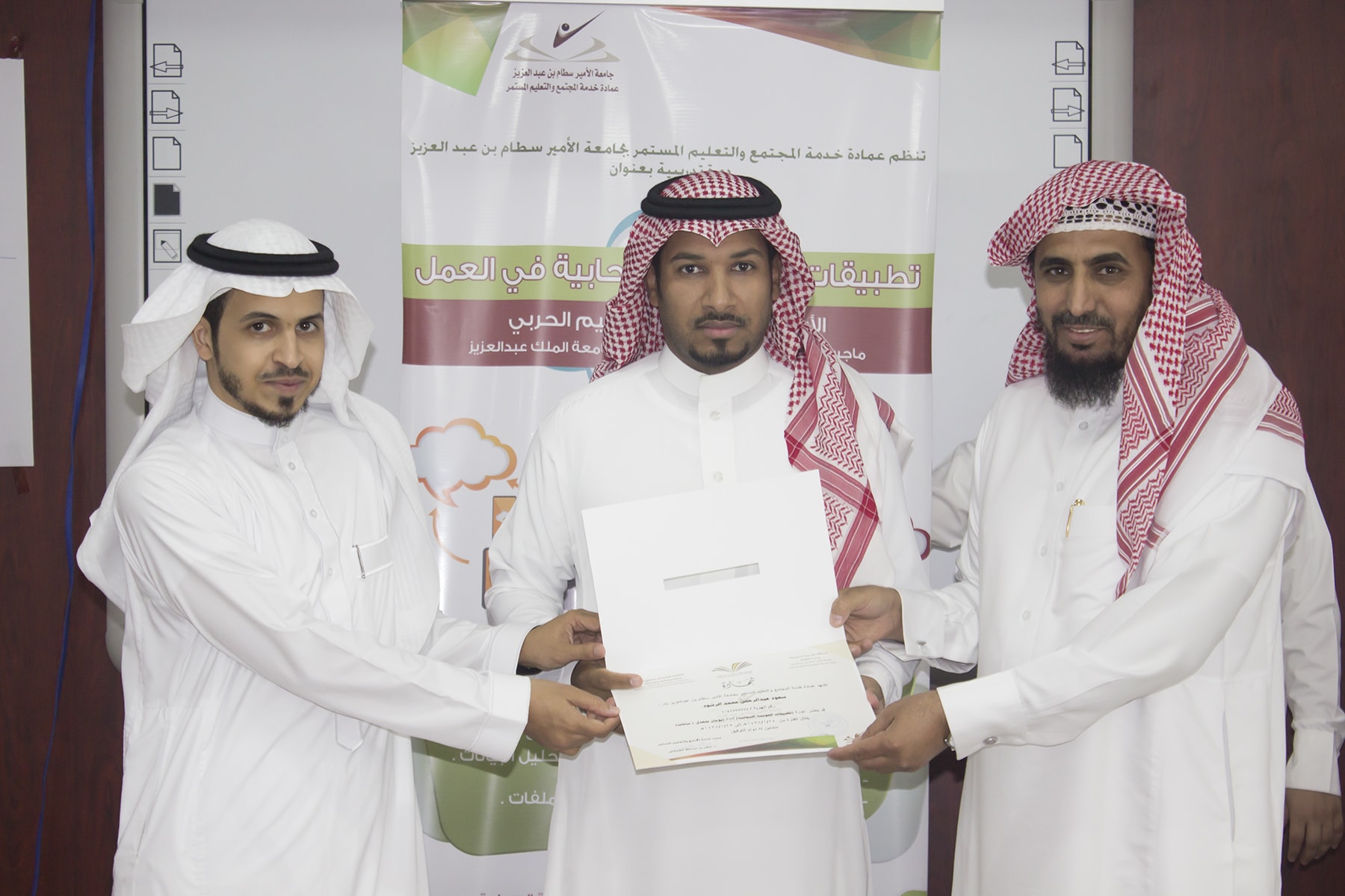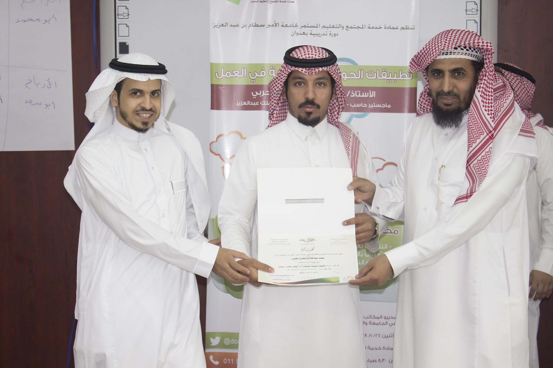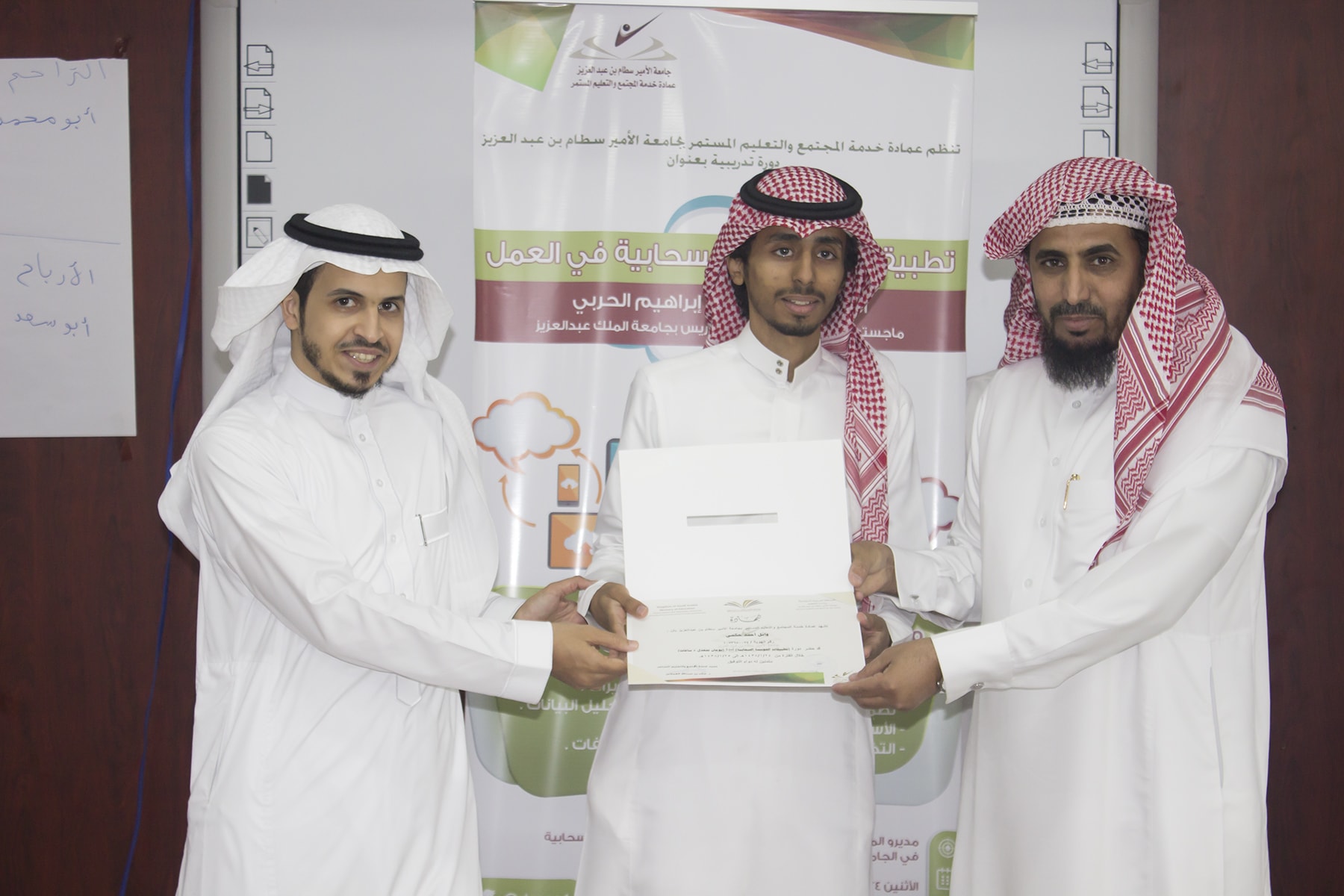اختتمت ظهر الأربعاء 25/1/1438 هـ دورة تطبيقات الحوسبة السحابية في العمل والتي أقيمت في قاعة التمييز بعمادة خدمة المجتمع و التعليم المستمر بالجامعة .