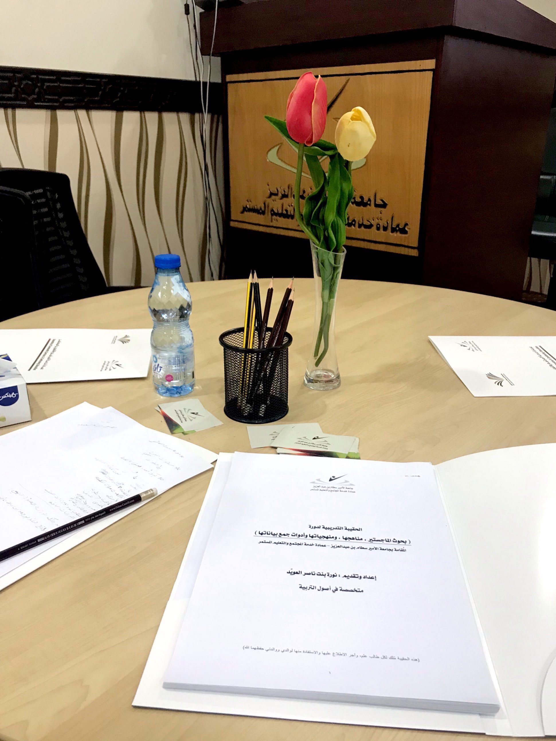 ومن هذا المنطلق نظمت عمادة خدمة المجتمع والتعليم المستمر "الشطر النسائي" بجامعة الأمير سطام دورتي في البحث العلمي بعنوان "بحوث الماجستير "قدمتها الدكتورة: نورة ناصر العويّد أستاذ مساعد في قسم العلوم التربوية بكلية التربية, وذلك صباح يومي الاربعاء والخميس 13/14-3- 1440هـ استهدفت فيها عدد من منسوبات الجامعة والخريجات في قاعة التدريب بمبنى العمادات المساندة
