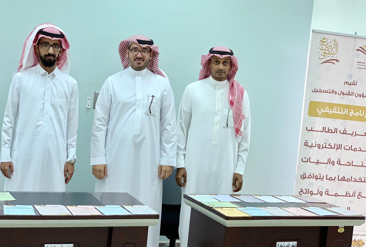 اختتمت يوم أمس الأربعاء الموافق 6/7/1440هـ فعاليات البرنامج التثقيفي لعمادة شؤون القبول والتسجيل، في كليات الجامعة للطلاب والطالبات، حيث قدم كلاً من سعادة وكيل العمادة للشؤون الفنية الدكتور هشام العبدالجبار وسعادة وكيل العمادة للفروع الدكتور ياسر الدوسري و سعادة المشرفة على قسم القبول والتسجيل الأستاذة هدى الجليفي، نبذة تعريفية عن أنشطة البرنامج التثقيفي في كافة كليات الجامعة للطلاب والطالبات.