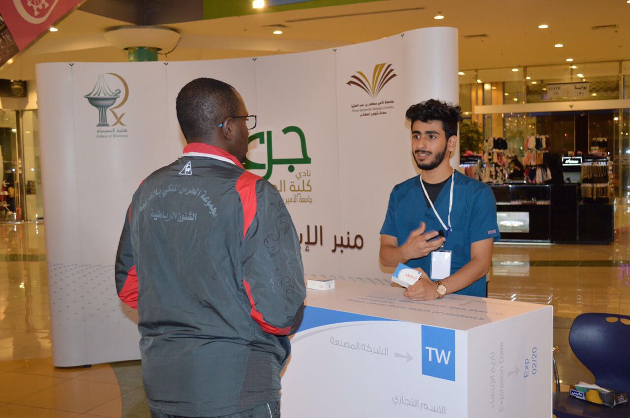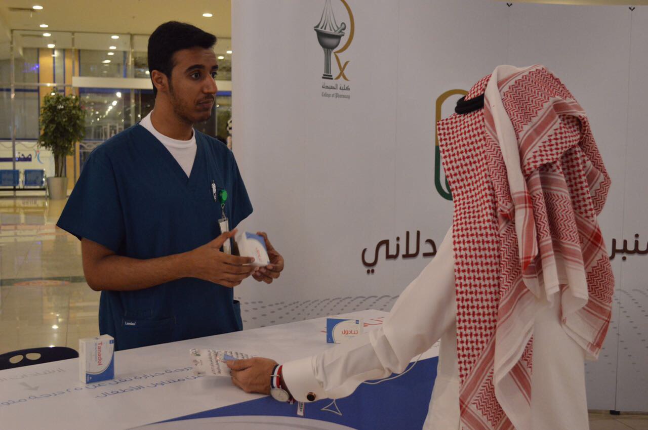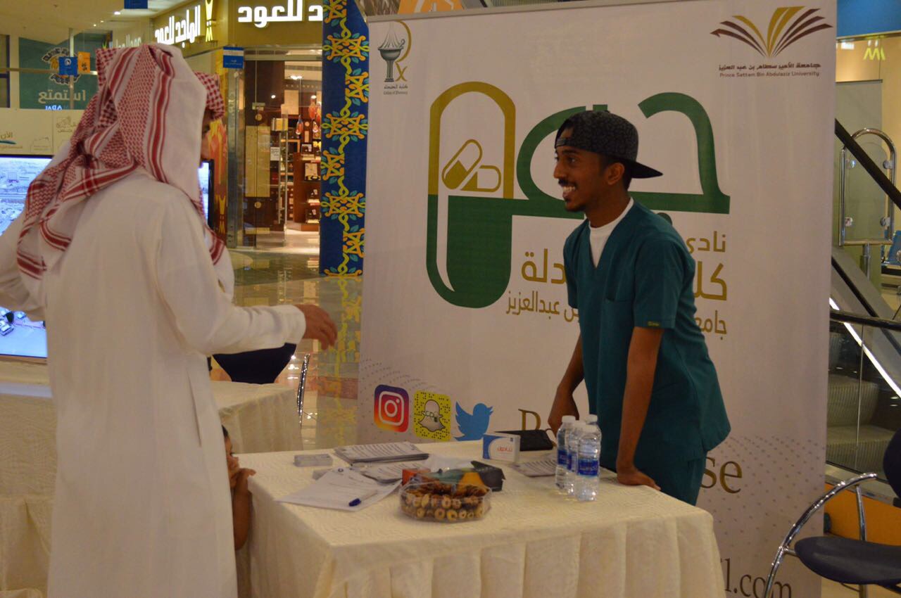 أختتم نادي جرعة بكلية الصيدلة التابع لعمادة شؤون الطلاب يوم الجمعة 21 / 9 / 1438هـ فعاليات حملة "تعرف على دوائك" التي أقامها بالتعاون مع هيئة الغذاء والدواء بمجمع الحديثي مول بمحافظة الخرج خلال يومي الخميس والجمعة 20 - 21 / 9 / 1438هـ .