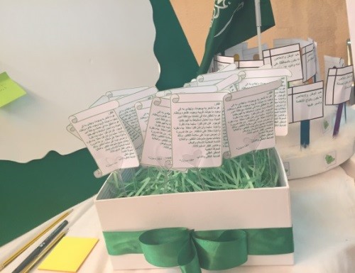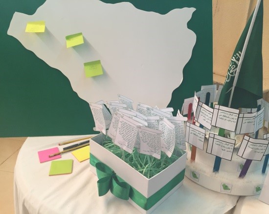حيث قامت الطالبات بعمل ركن في ساحة الكلية واحتوى على: الضيافة – توزيعات متنوعة – لوحة المشاعر – شجرة البصمة، وقد حظيت الفعالية بالحضور والمشاركات الفعالة، حيث شارك عدد من أعضاء هيئة التدريس والإداريات والطالباتبالتعبير عن مشاعرهم تجاه الوطن بعبارات ورسائل جميلة تحمل الروح الوطنية.
