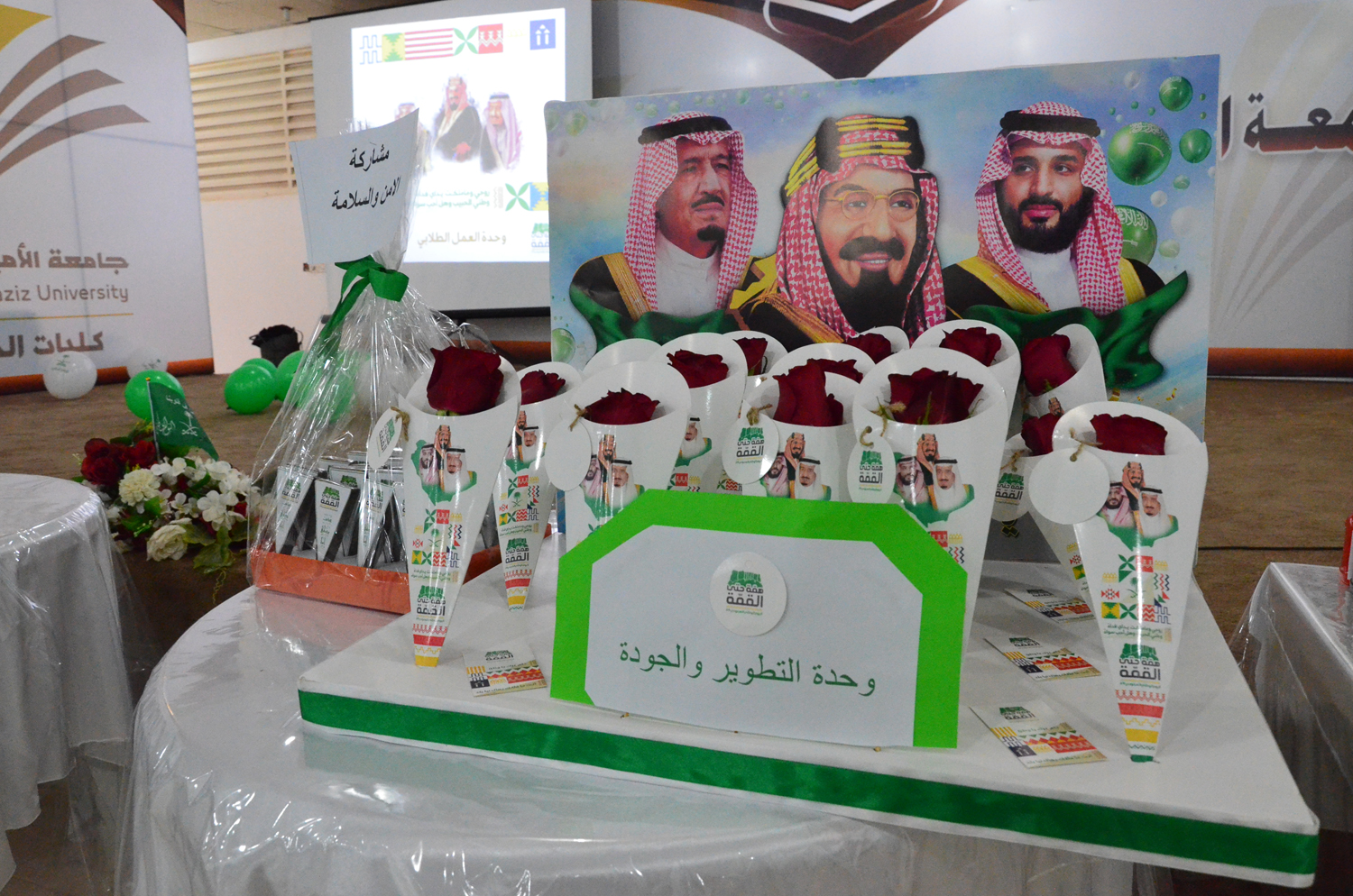 أقامت وحدة العمل الطلابي بكليات الأفلاج ( شطر الطالبات ) يوم الأثنين 1441/2/1هـ الساعة العاشرة صباحاً في المسرح احتفالية اليوم الوطني تحت شعار همة حتى القمة بمشاركة الأقسام الأكاديمية والوحدات الإدارية و استضافة أطفال روضة مكة الأهلية، ابتدأ الحفل بآيات قرآنية ثم ألقت سعادة وكيلة الكليات د.فريدة عقيلي كلمتها بهذه المناسبة، تلا ذلك عدد من الفقرات المميزة، ويهدف الاحتفال إلى تعزيز حب الوطن وغرسه في النفوس والانتماء للدين والولاء للملك والوطن، كما تم ذكر نبذة موسعة عن توحيد المملكة العربية السعودية و معرفة جهود قادتنا للرقي بالوطن، و في الختام تم السحب على جوائز رمزية أعدتها وحدة العمل الطلابي كما تم توزيع شهادات شكر وتقدير للطالبات المشاركات وللروضة المشاركة وتقديم الهدايا للأطفال.