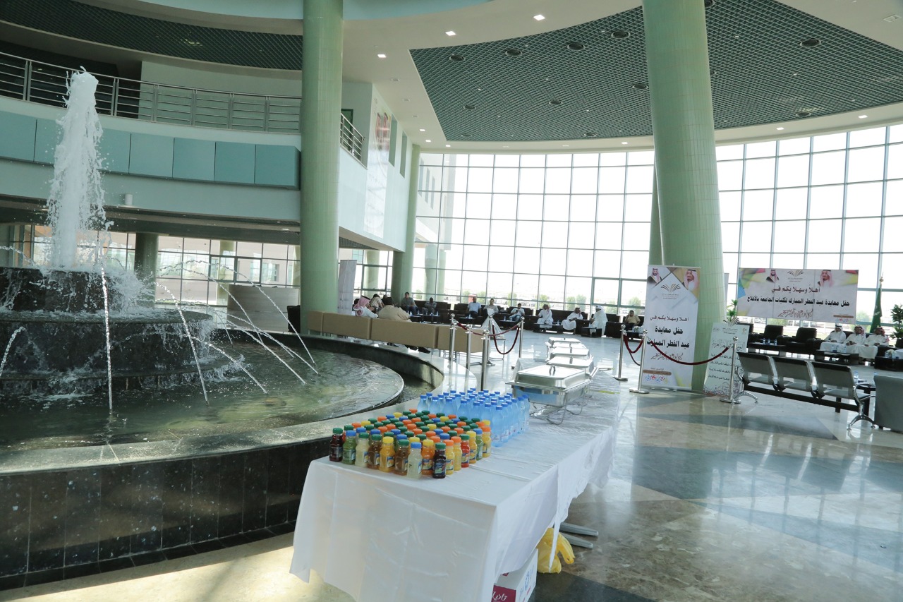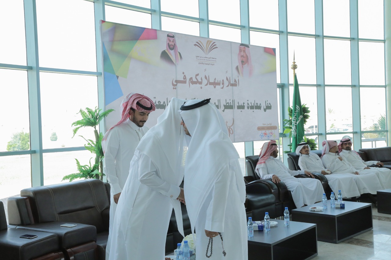 تبادل الجميع التهاني والتبريكات بمناسبة عيد الفطر المبارك خلال الحفل الذي اقيم في بهو كليات الجامعة وسط أجواء تسودها المحبة، كما هنأ السلمي الحضور بعيد الفطر السعيد، سائلاً الله للجميع التوفيق والسداد وانطلاقة عمل جاد شعاره التميز والإبداع .