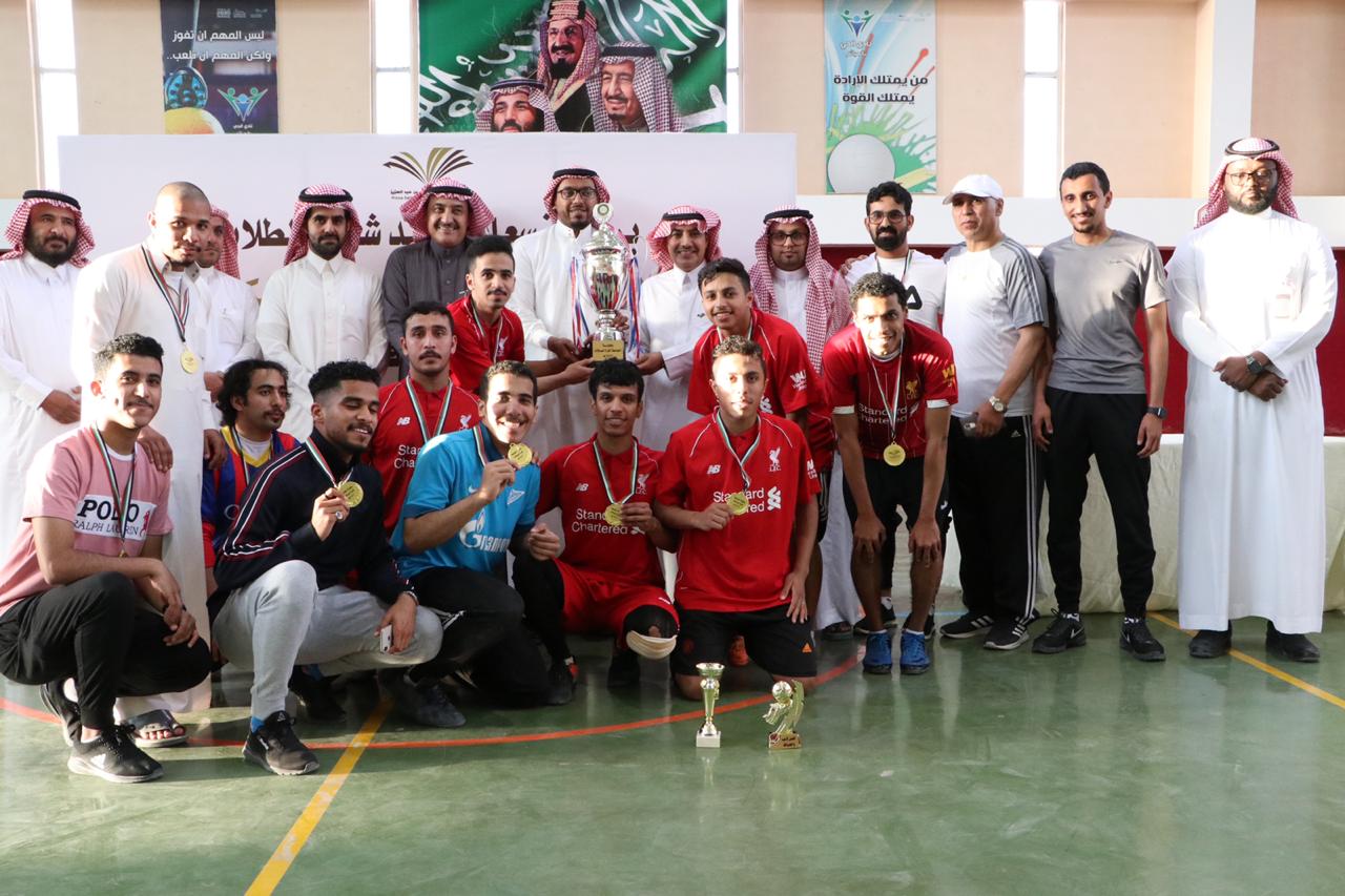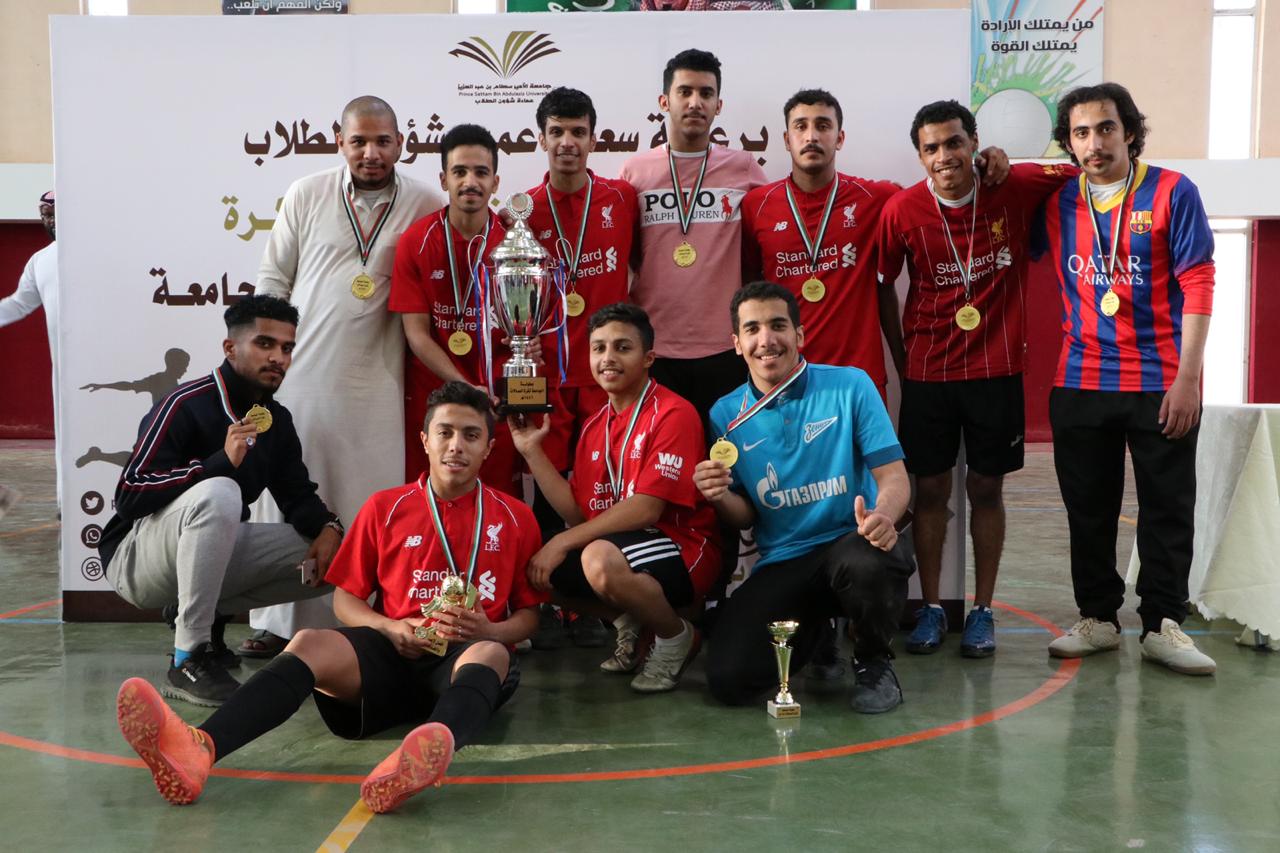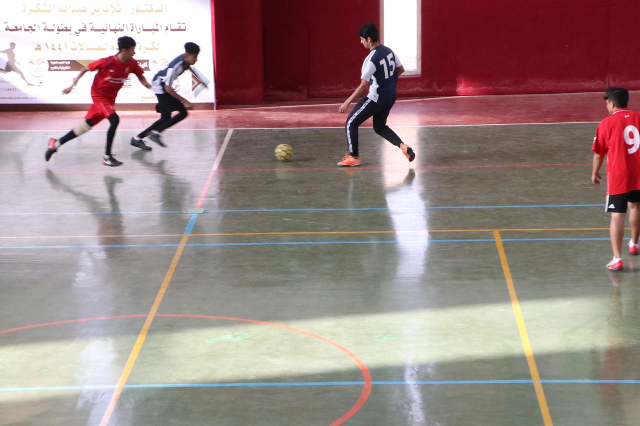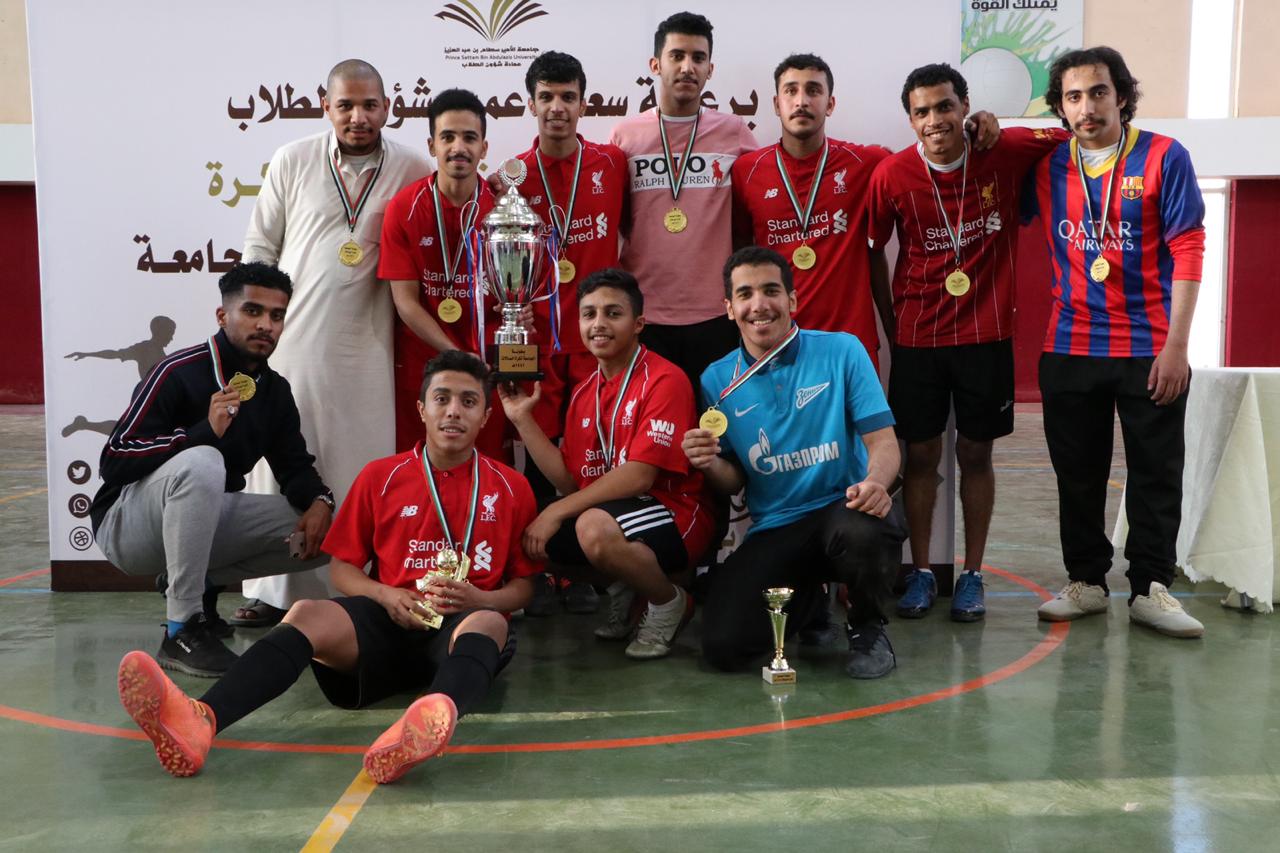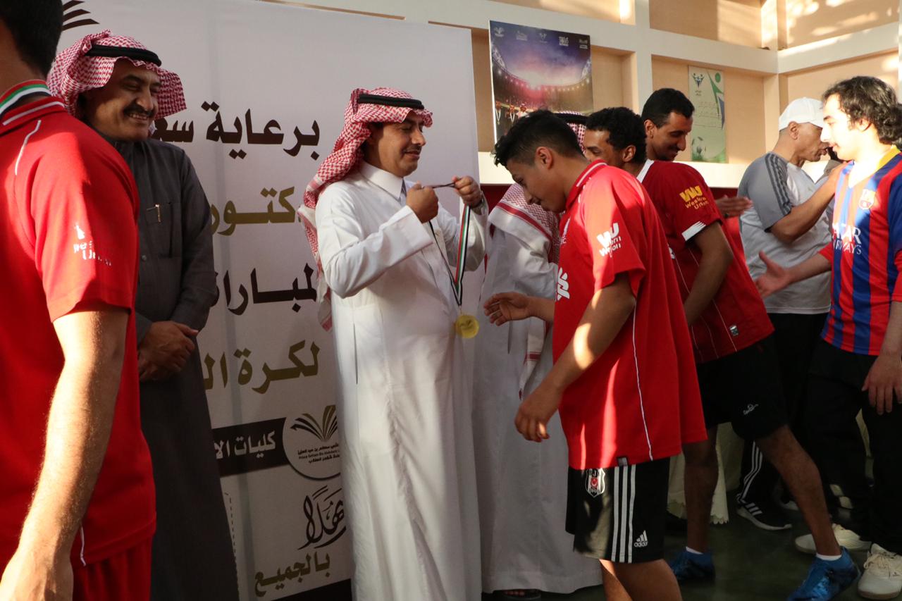 توج عميد شؤون الطلاب الدكتور ثلاب بن عبدالله الشكرة فريق كليات الأفلاج بلقب بطولة الجامعة لكرة القدم للصالات وذلك بعد فوزه على فريق كلية العلوم الطبية التطبيقية بنتيجة 10 - 5, في المباراة النهائية للبطولة التي أقيمت عصر يوم الاثنين 30/ 6 /1441هـ بالصالة الرياضية بثانوية الهياثم.